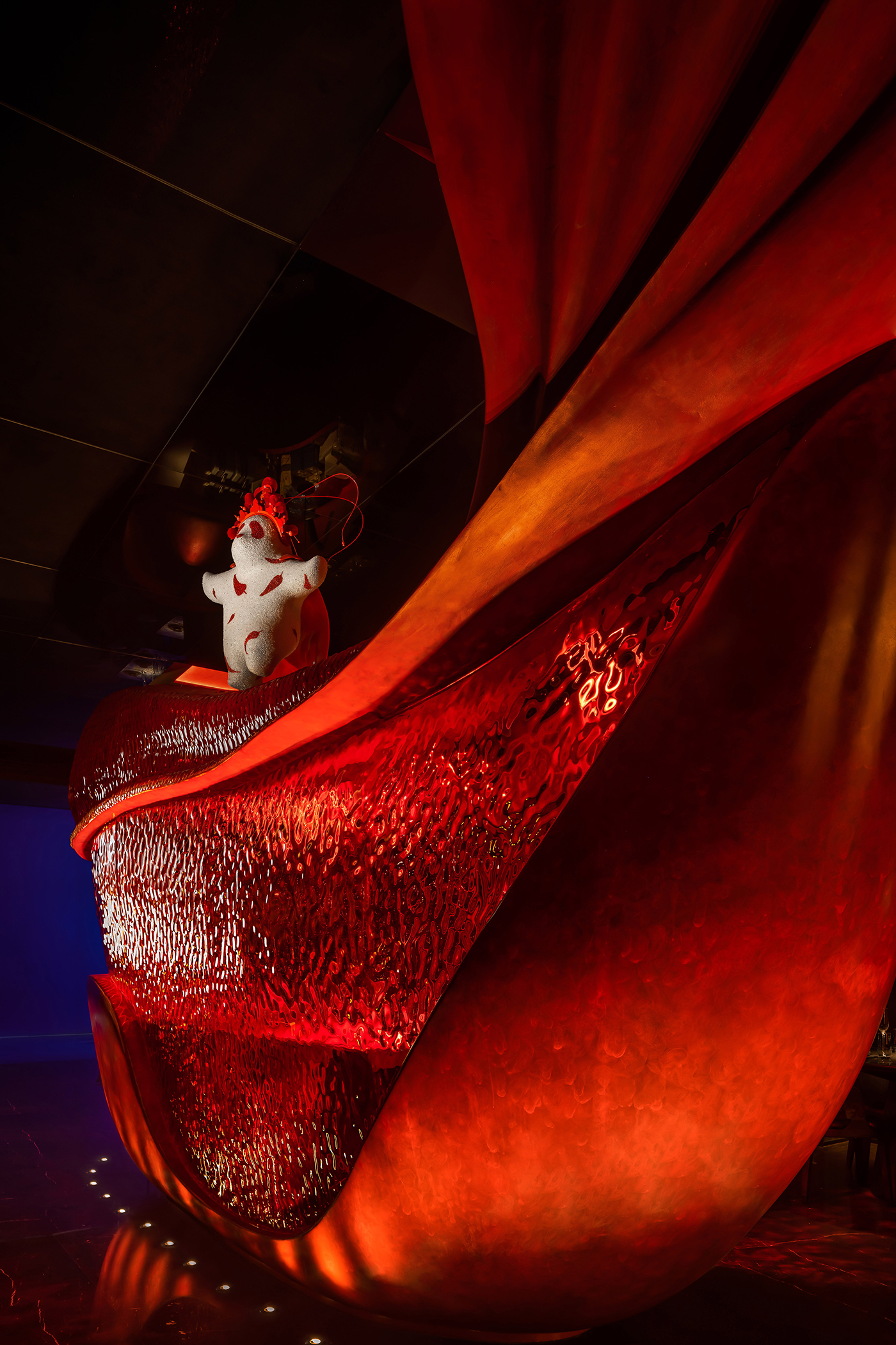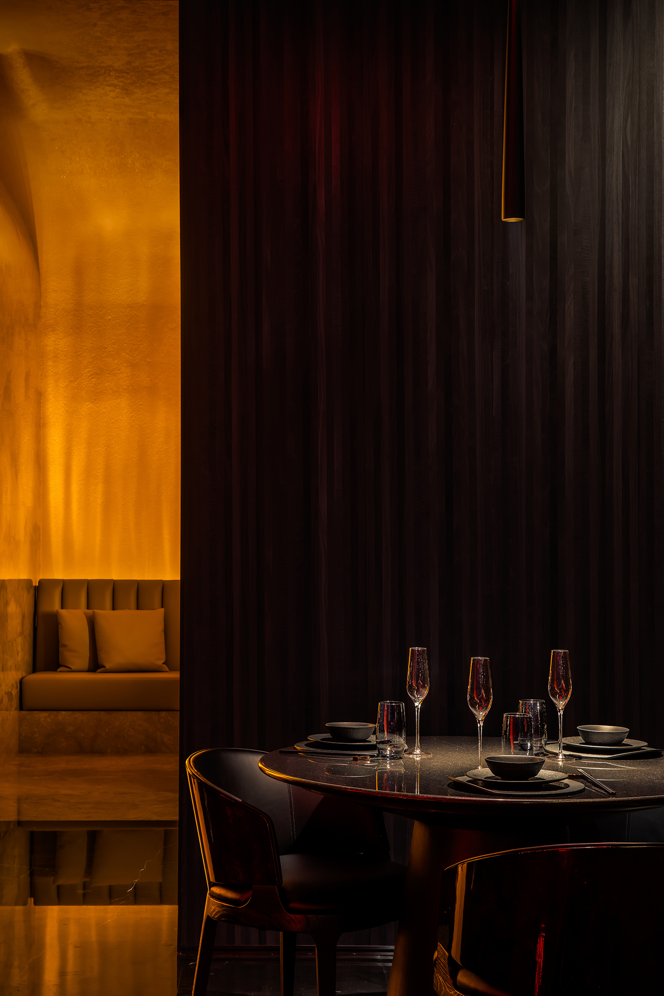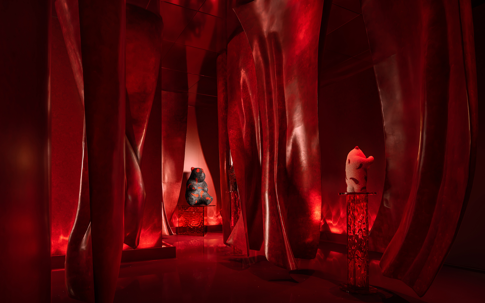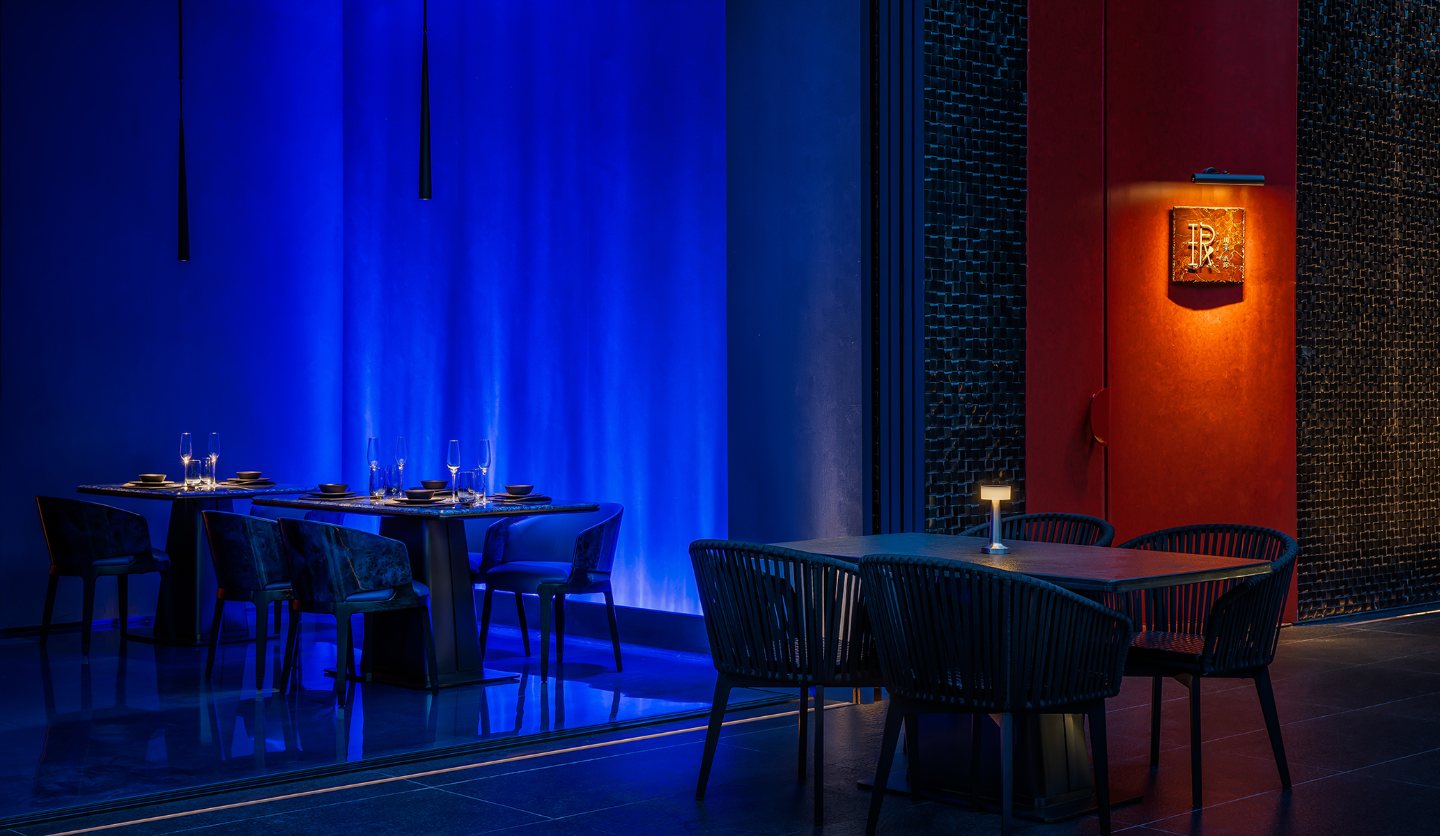 This is a leisure social "art museum" that can eat during the day and drink wine at night, which aims to create a leisure and relaxing artistic social place. The restaurant looks like a black "magic box". The restaurant uses the names and colors of tequila sunrise, black cherry, blue margarita and sunset martini as the theme and character of each dining area. The design is inspired by Chinese culture: the face of Sichuan Opera, the artistic treasure of Sichuan Opera, this restaurant is full of "collision" and "possibility", there is a collision between Eastern and Western cultures and aesthetics, as well as ancient and modern cultural collisions. It collides with highly saturated red, blue and yellow, collides with traditional culture and modern needs, integrates Chinese Sichuan opera culture and panda characteristics into the design, and collides with western materials and oriental elements. Designers capture the innovative forms of contemporary art, design the original national trend IP with panda as the content, and transform regional characteristics, culture, craftsmanship and materials into a unique visual language.