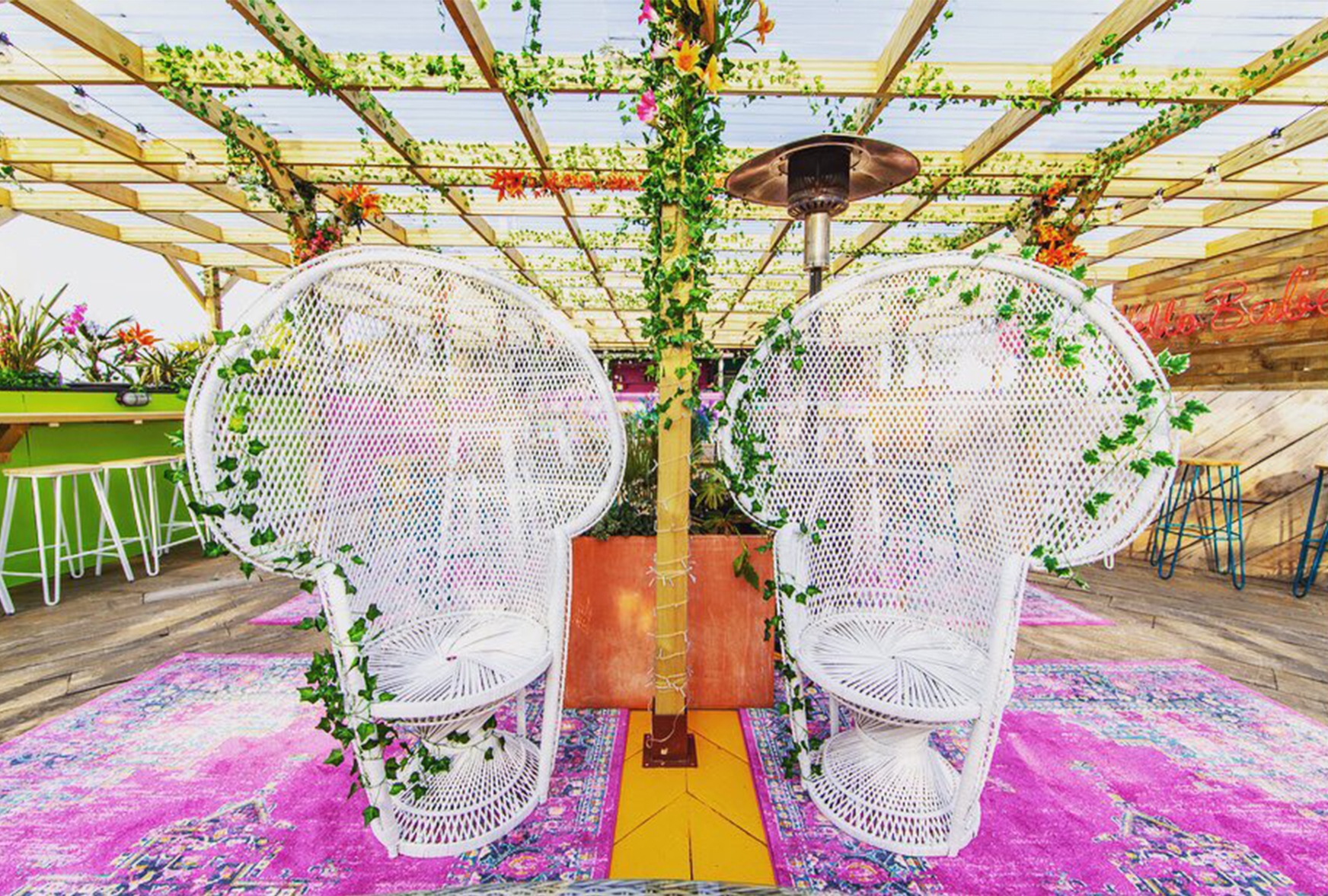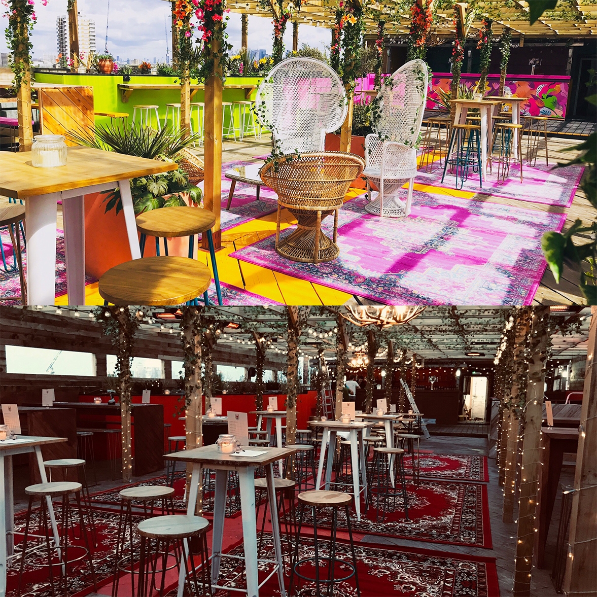 Season 3, captured a tropical oasis, dressed with florals above your head and under your feet. With its boho style furniture, rugs and colour it made for a vibrate and welcoming environment for all. The space isn't made for luxury, it was designed in a way that locals would feel comfortable and "cool" and create a new place to experience in London each summer.