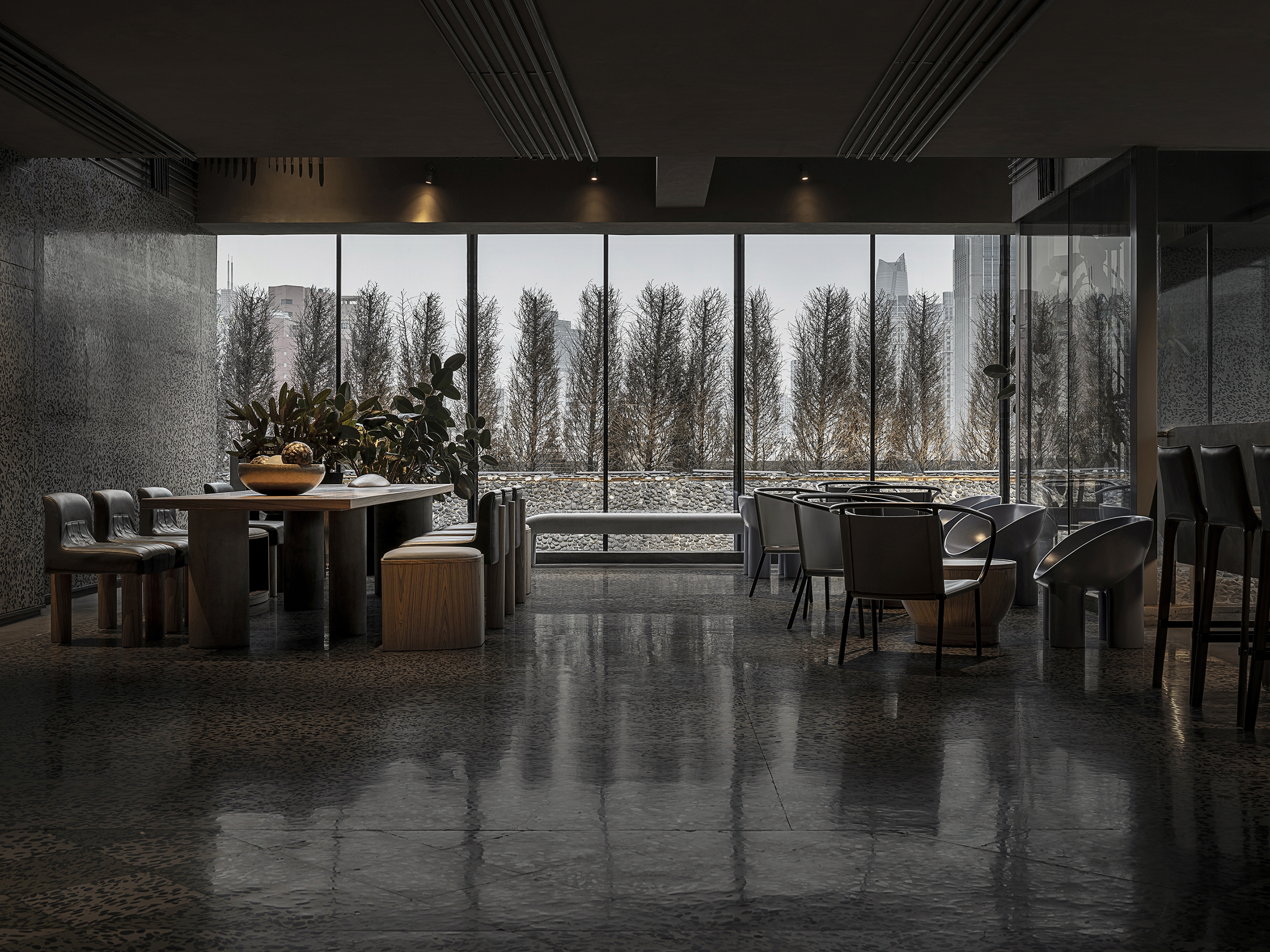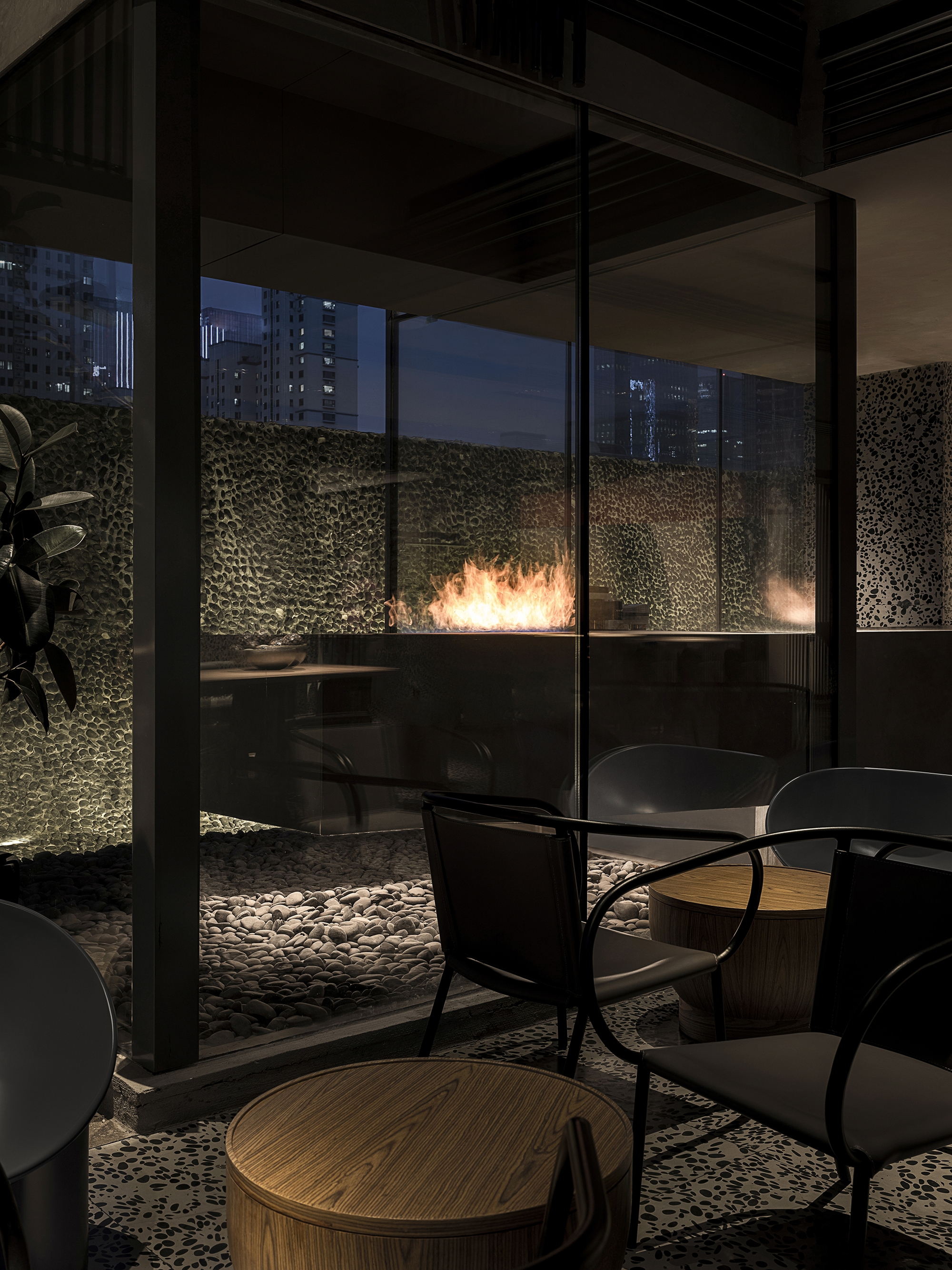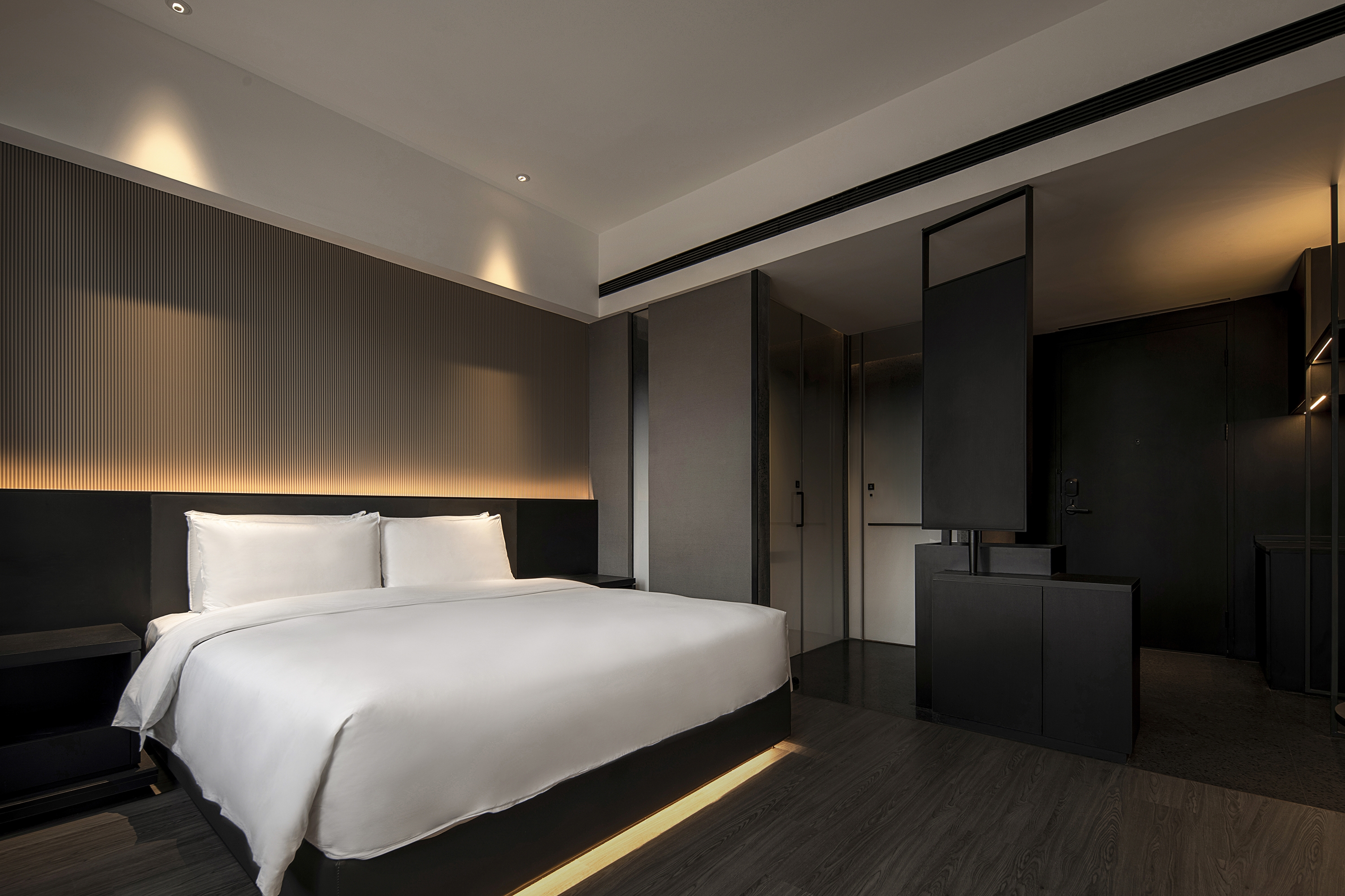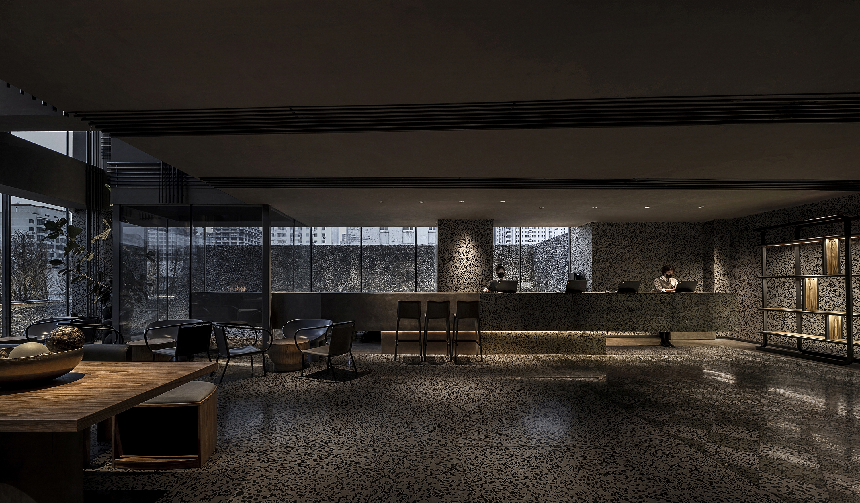 Simple materials and plain furnishings dominate the visual sense, and a pure environment is created by immersive experiences. A unique warm affinity of the hotel is expressed in the clash of warm tone and dark colors, creating a cozy atmosphere in a city corner. This enables visitors to be fully immersed in the sensory interaction of aesthetics and experience.