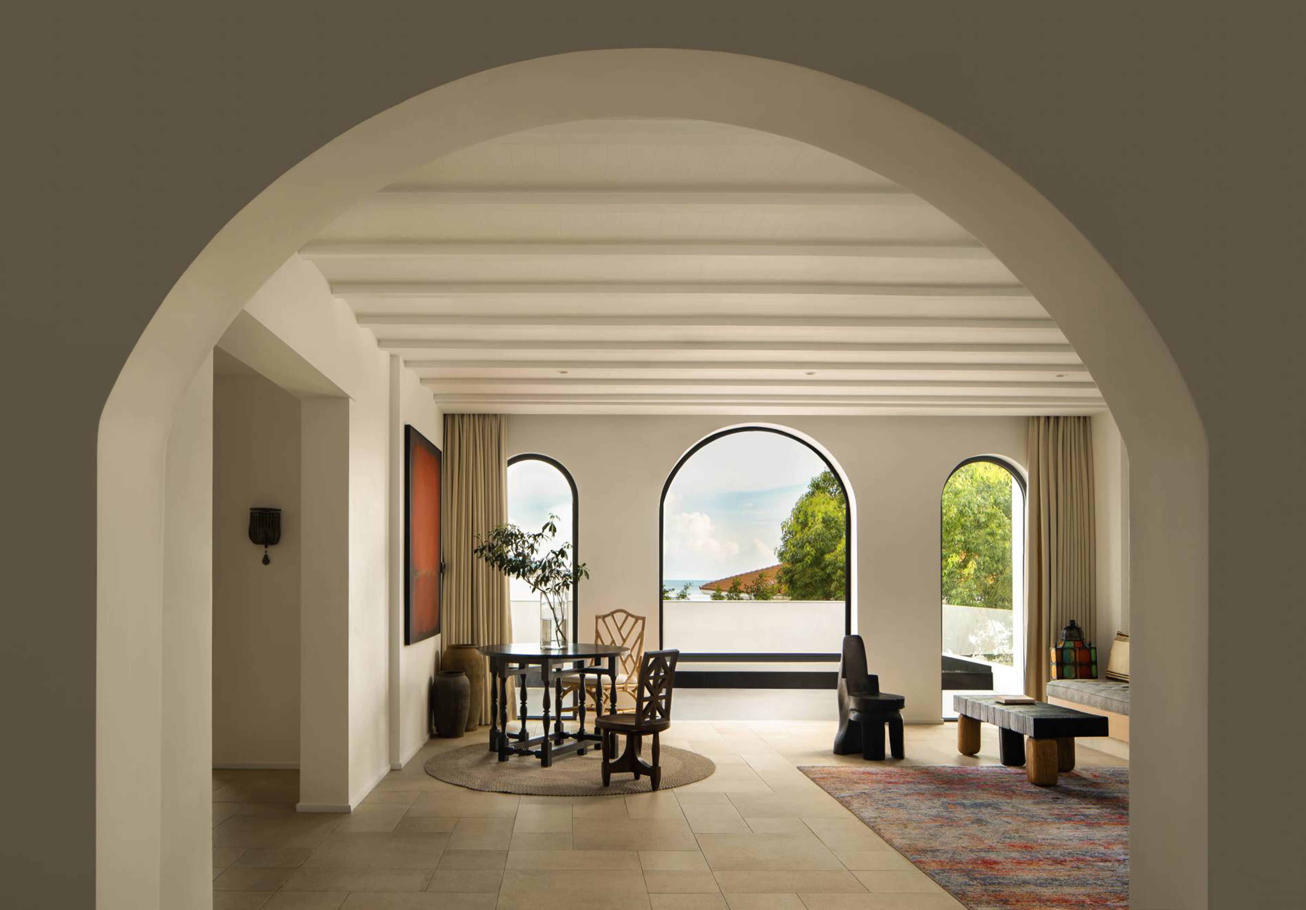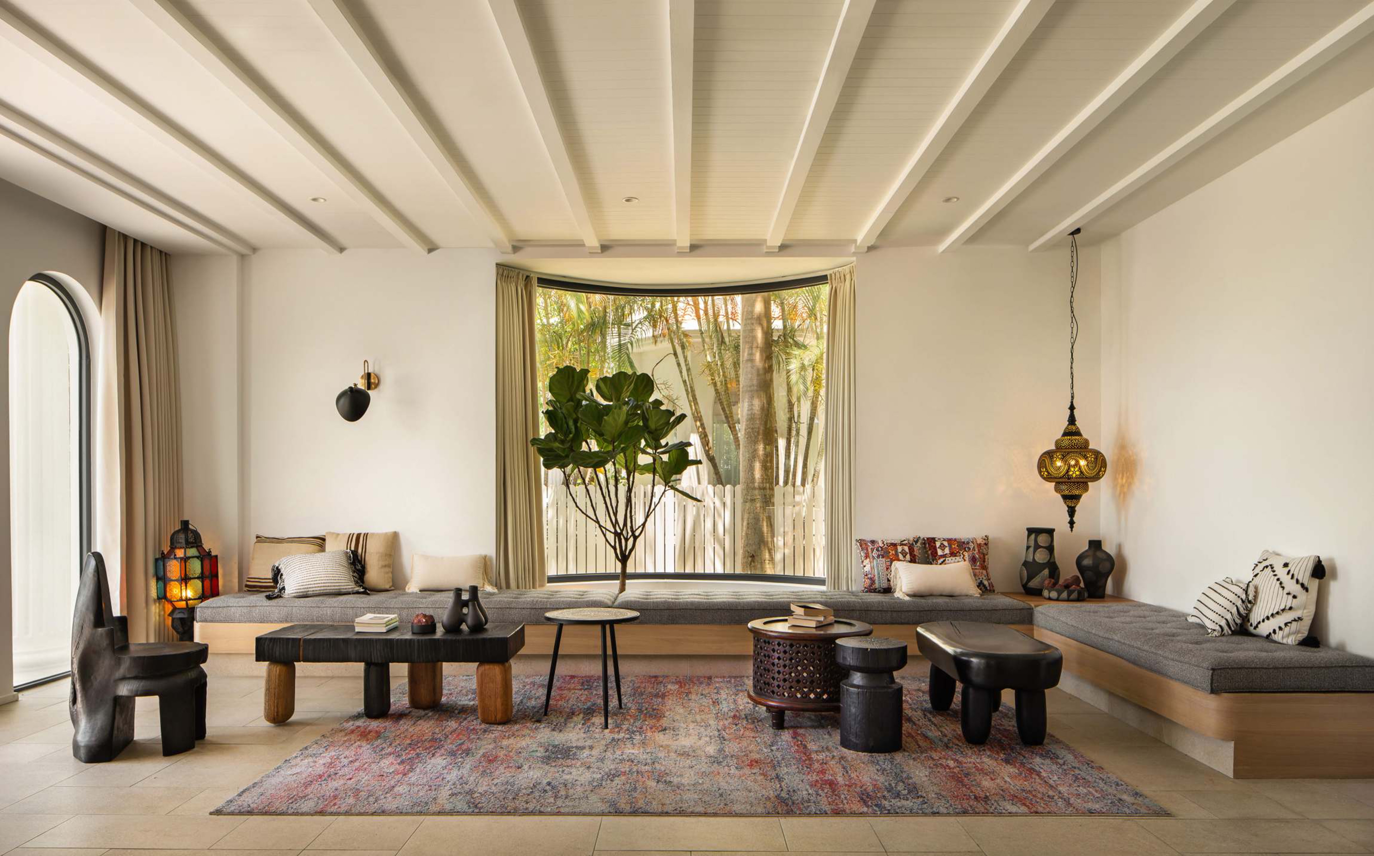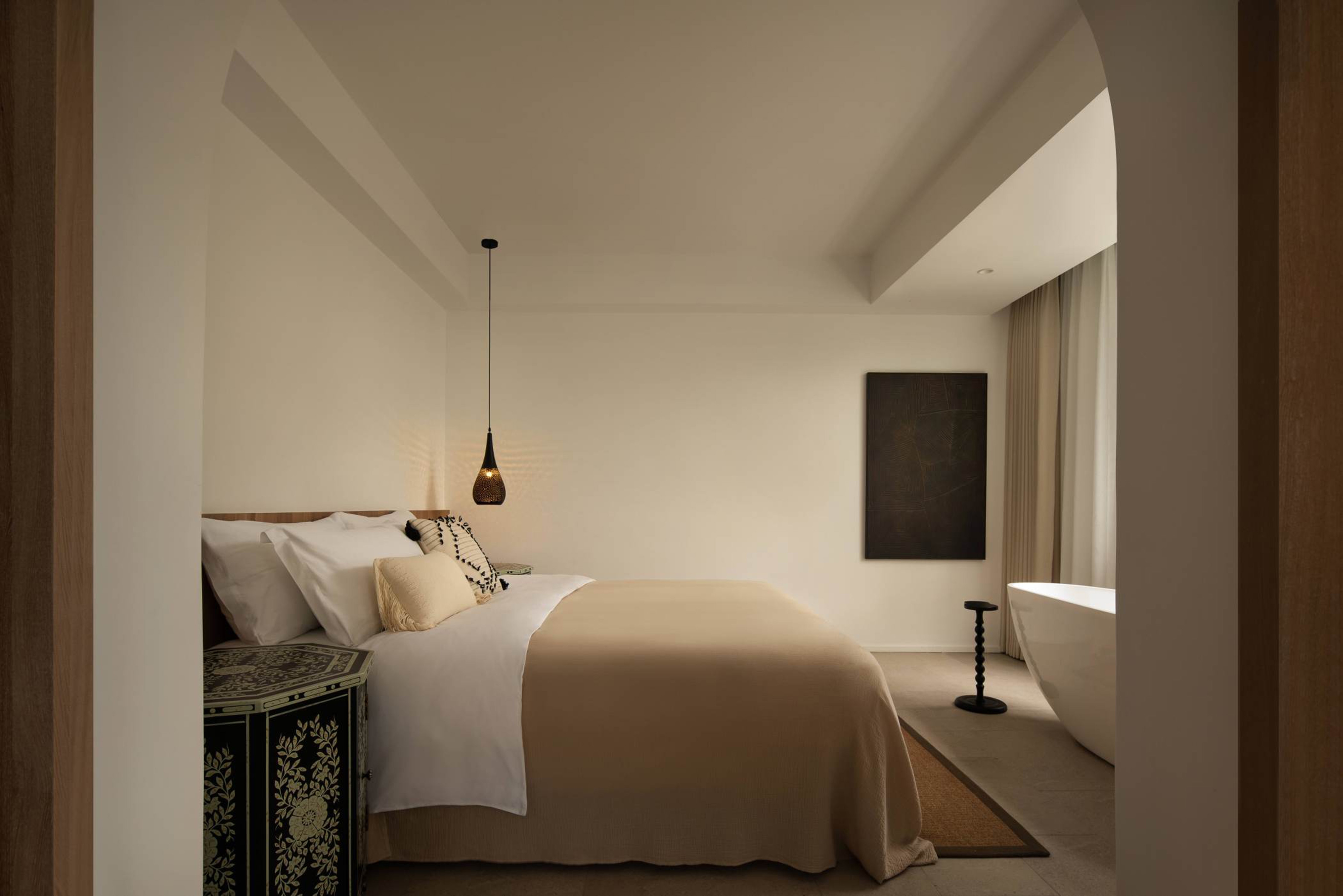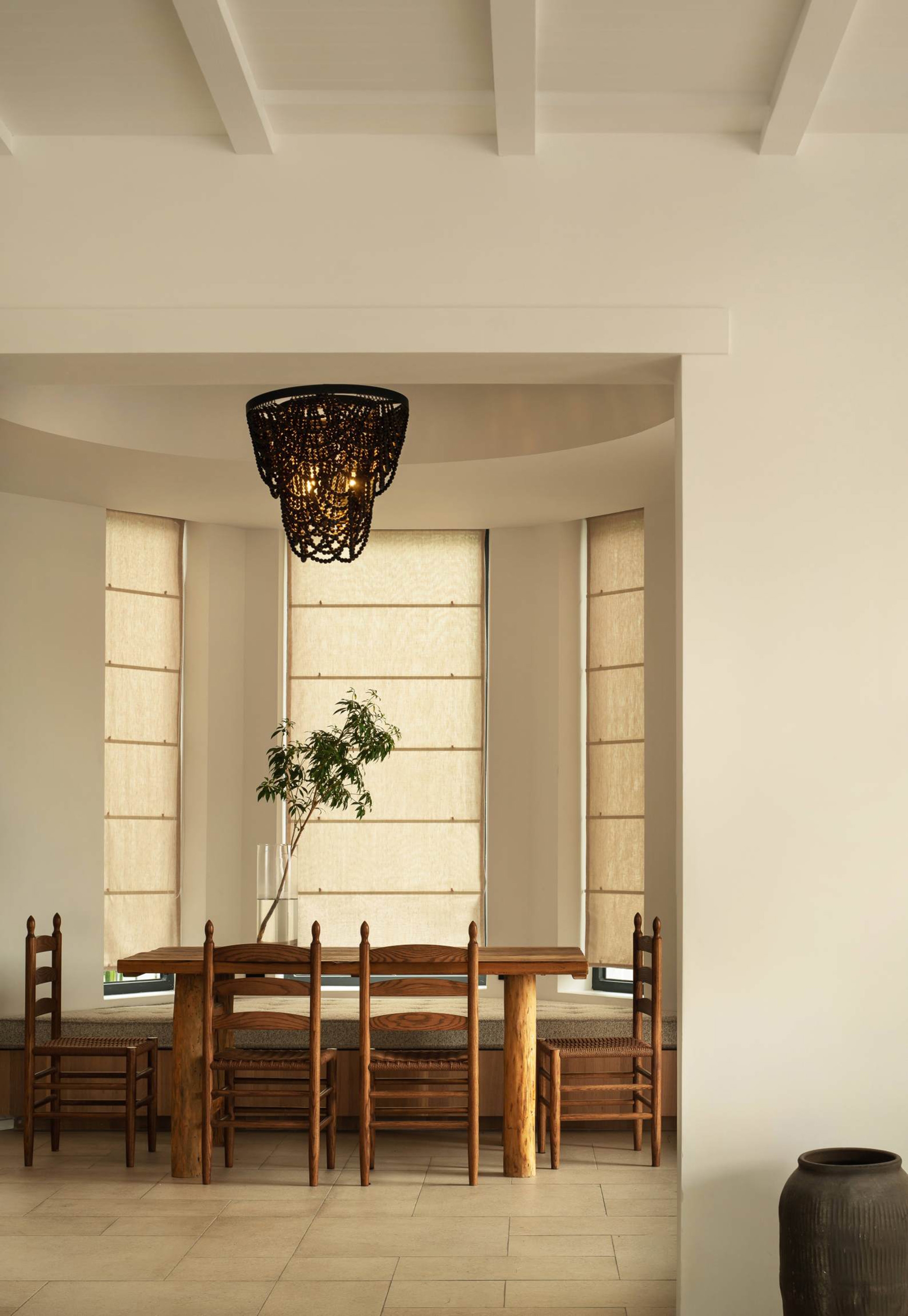 GS Design chooses to use the concept of "Road to Simplicity" throughout the whole process of shaping the space: the overall atmosphere is rendered with a simple and soft background, and attention is paid to the space leftover and the communication between inside and outside the building; as for soft furnishings, cotton and linen are preferred. The soft touch of the fabric and the patterns with rich national characteristics are embellished to create a "soft" spiritual world with rich imagination space.