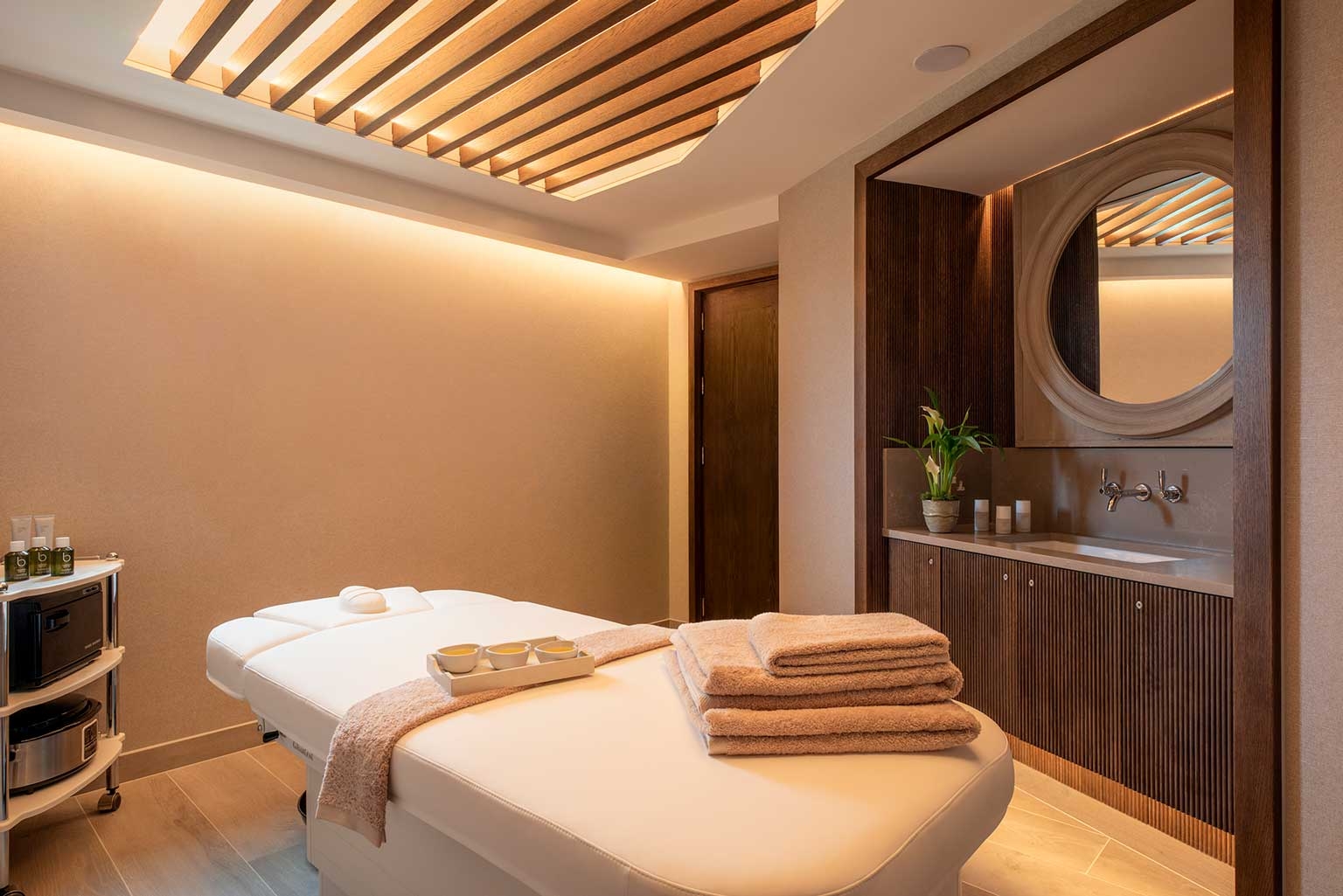 The interior starting point was to celebrate the original features such as ornate plasterwork and panelling. Each room has unique colours, art and antiques, combined with 5 star amenities to create calm sanctuaries with comfort at the design forefront. The new spa extension is more modern in style, where practicalities were a design priority, yet it was vital the finishes were warm and tactile.