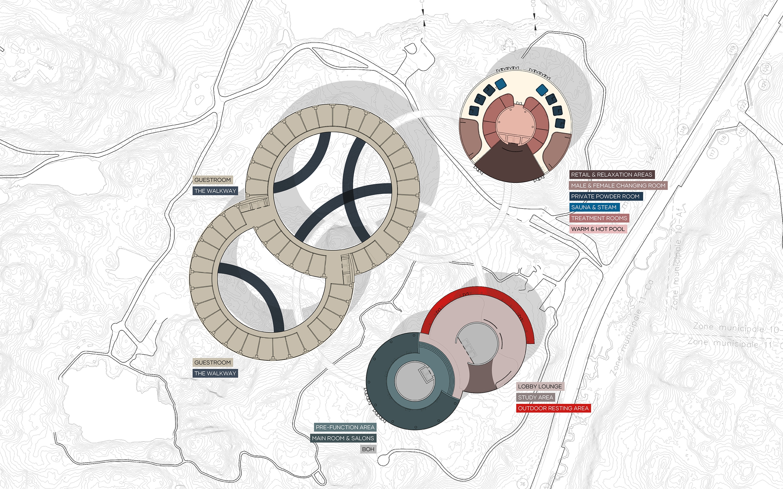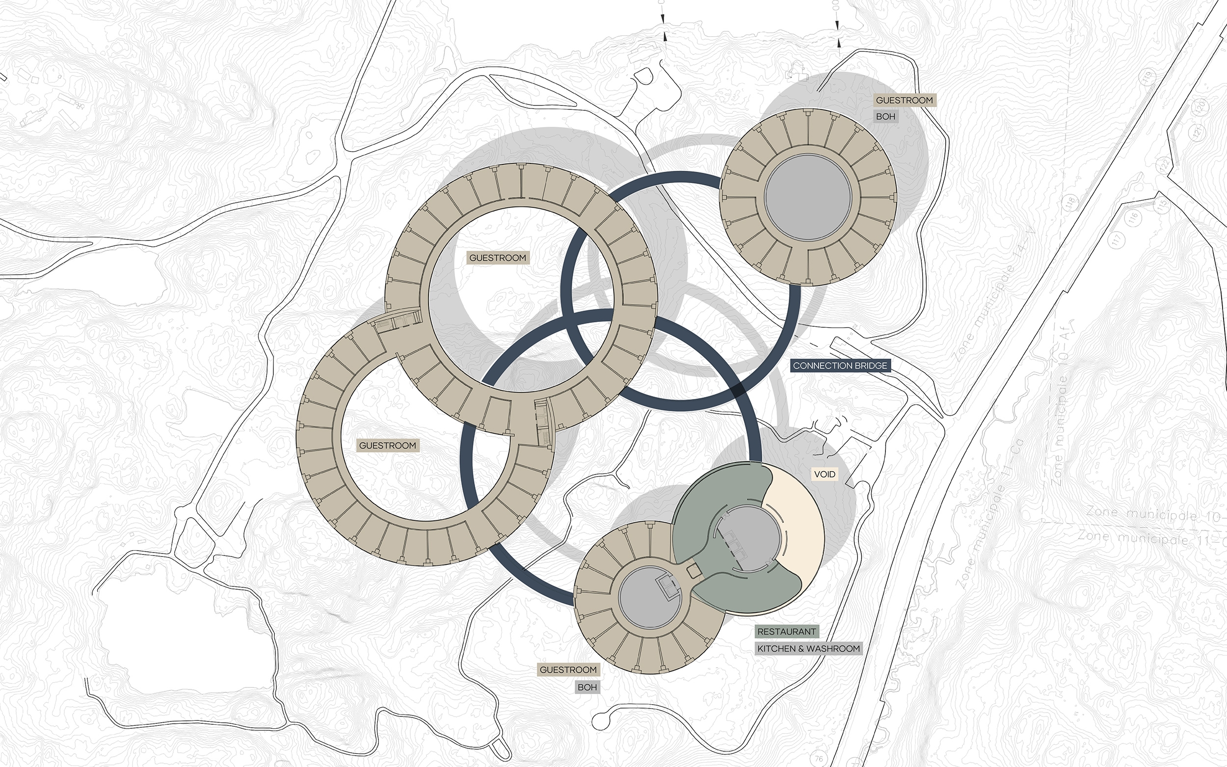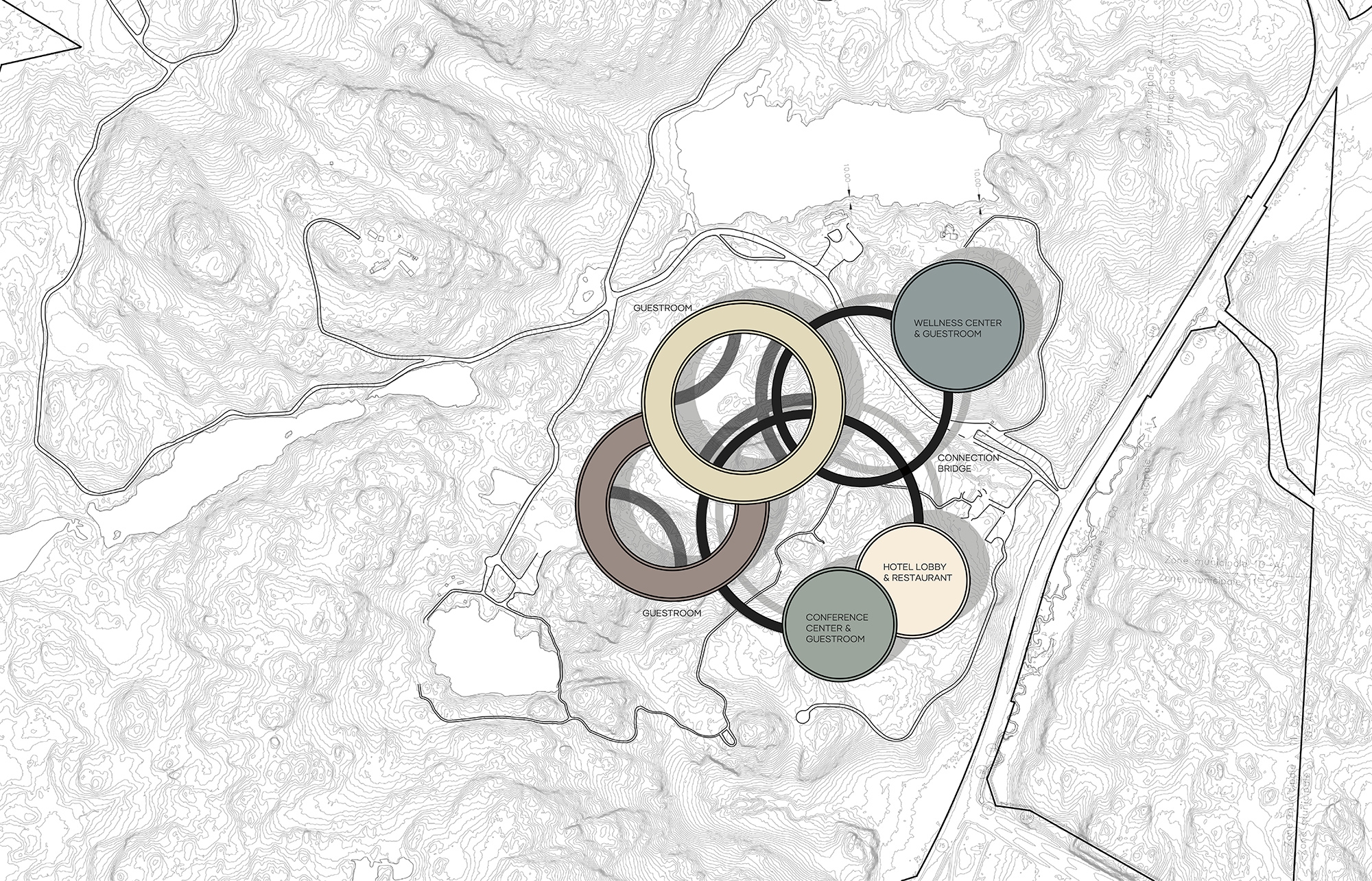 Parc Omega is not just a park or a hotel. It is a place that can integrate people and animals into nature. So the animals, nature and human beings will be combined into a Venn Diagram which will be the main element in the Parc Omega Hotel.