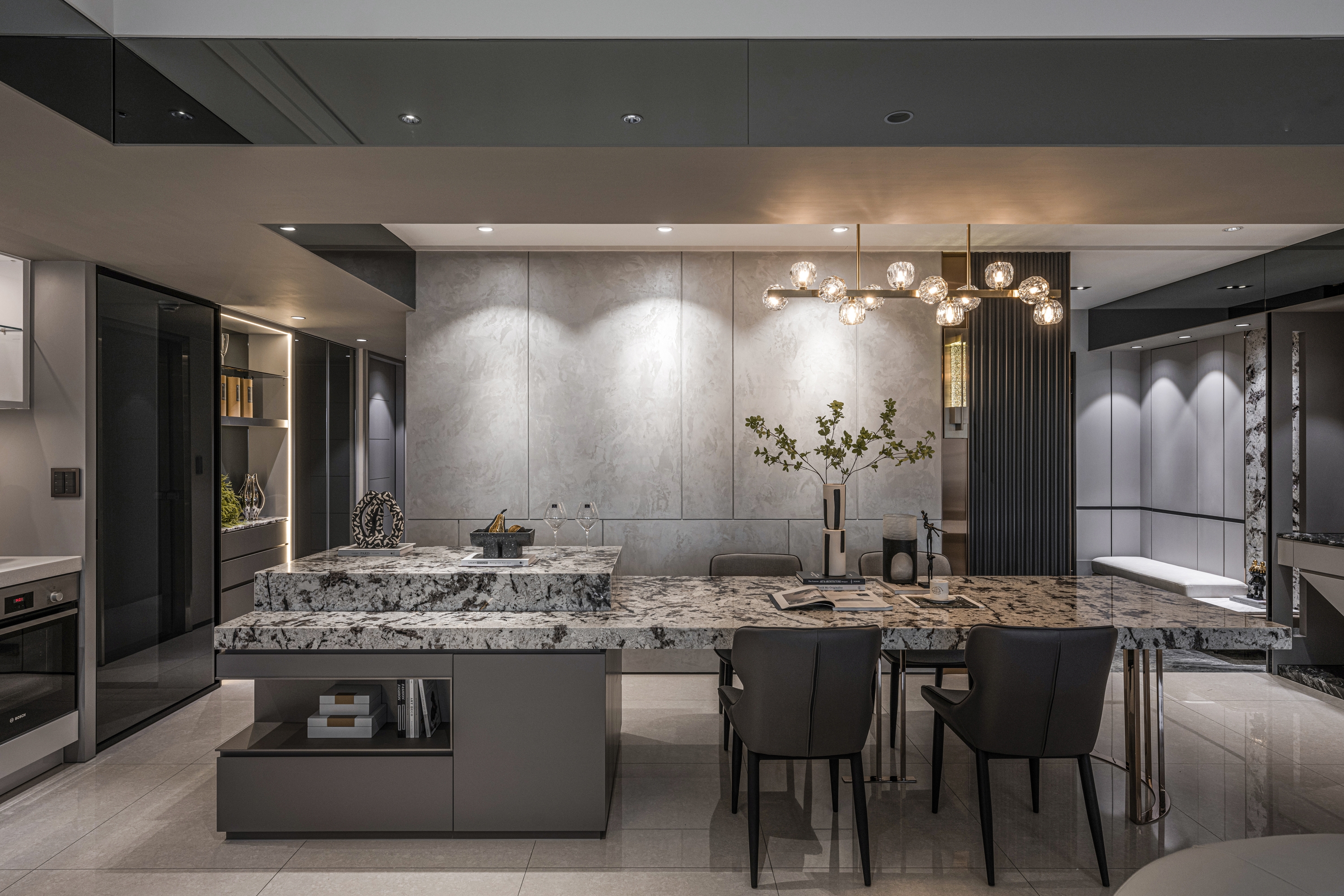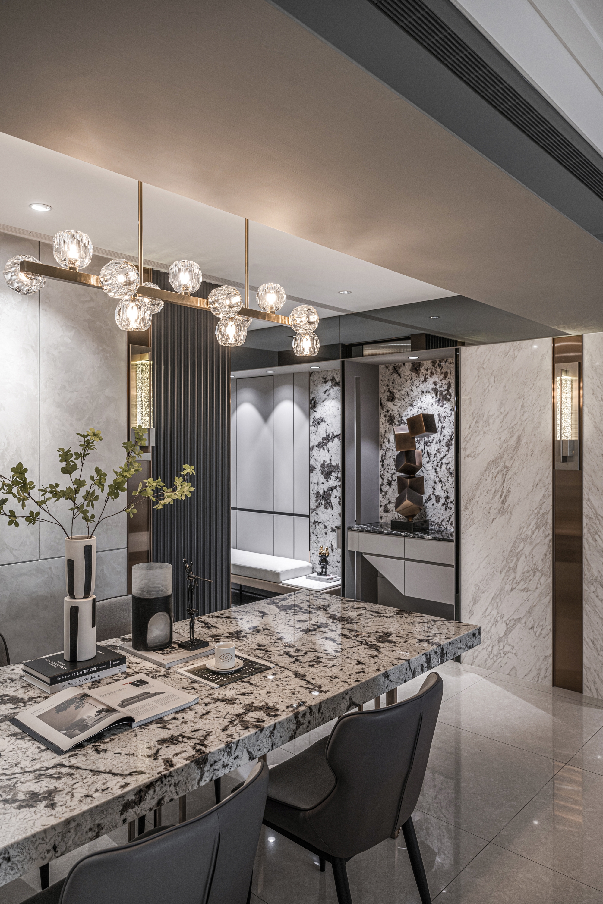 This project aims to reform itself into a luxurious and fashionable space by presenting itself through layering from lighting techniques and textural combinations. In improving the ambiance and luxury status, the designer implemented premium marble materials to complement other aspects and add soft reflective aspects to the interior. The complex and diverse building materials are used to resonate the sense of luxury, complemented by metal, reflective materials, and lighting efforts. The geometry, light and shadow, and a mixed texture create this transcending dancing interior, adding depth and layers to improve the display of comfort.