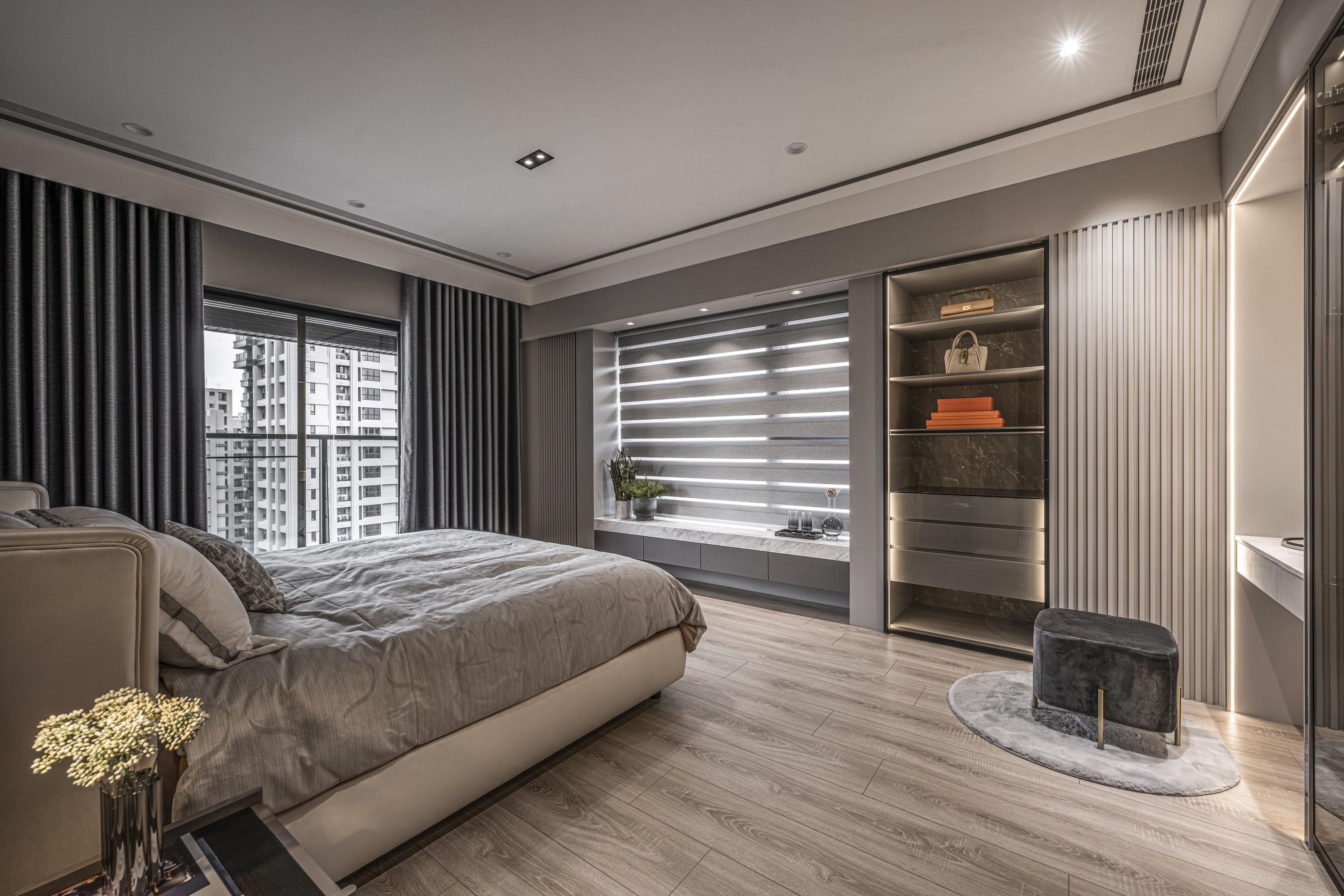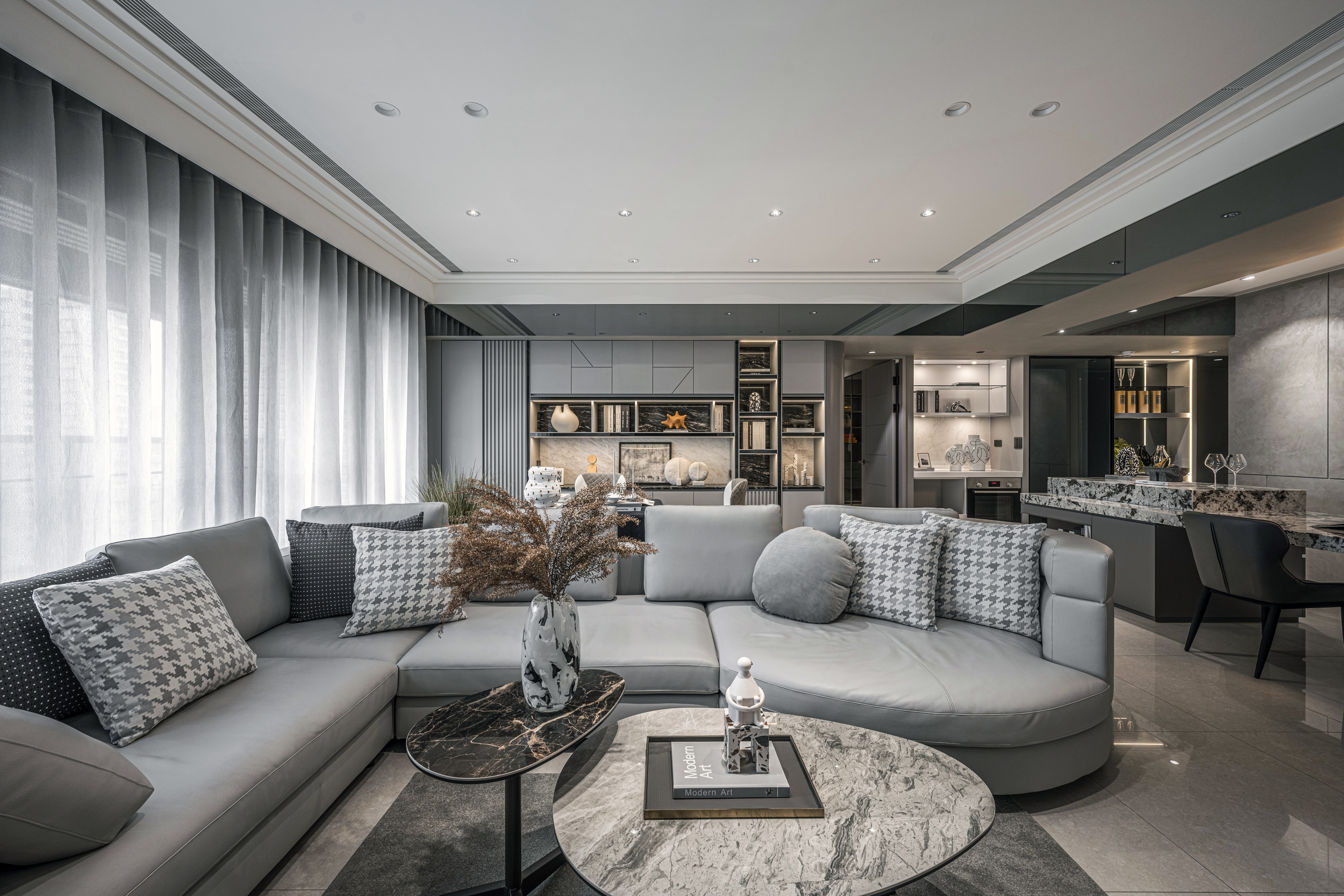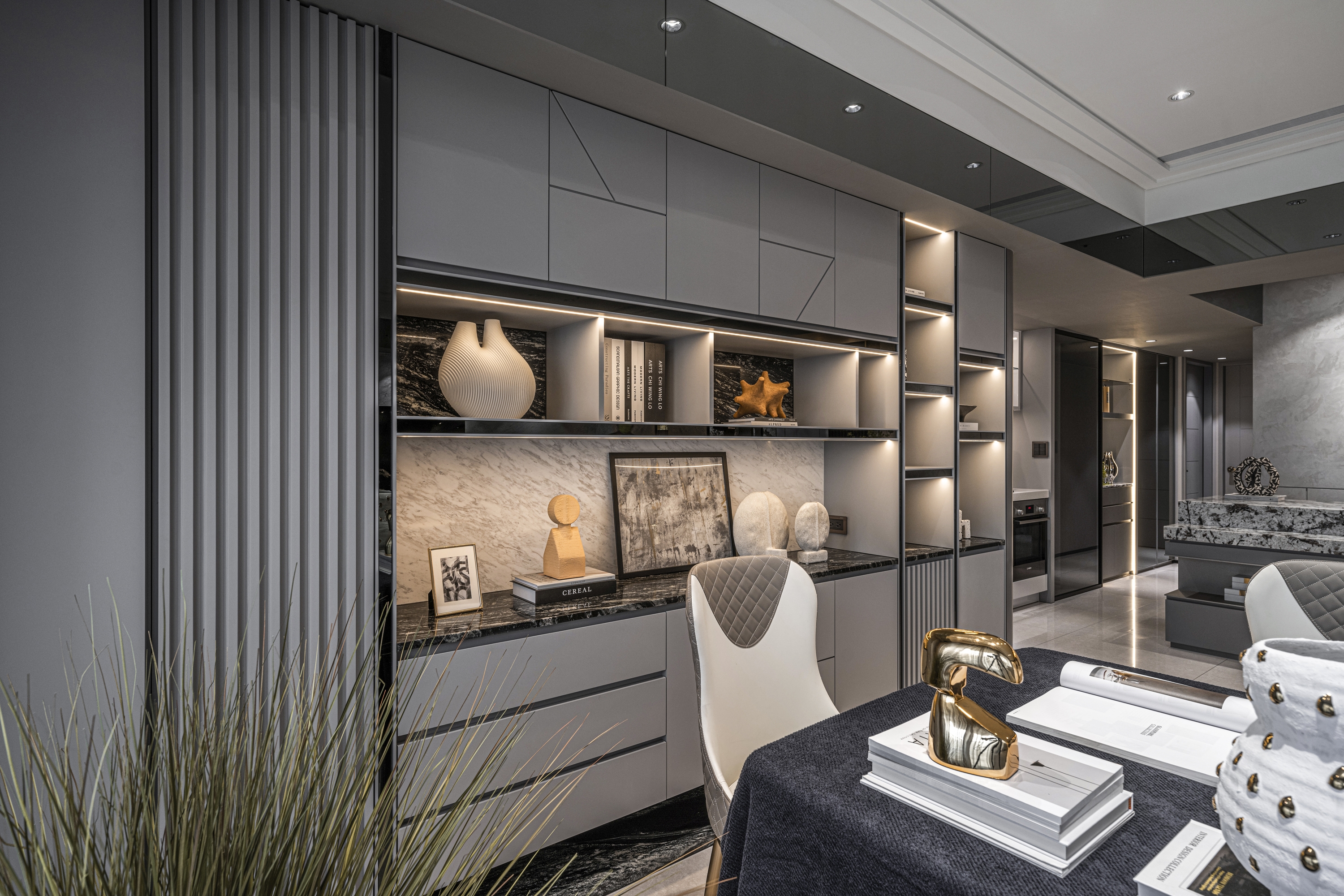 The centerpiece of the living room includes a vast display wall, making the client’s collection the most beautiful embellishment on the property. The aisle wall is inclusive of the aluminum-framed glass display case, further enhancing the artistic aspect of the result of lighting and shadows. At the same time, an exhibition space is also planned to display artworks collected by the client. With the living environment being rich in natural textures and artworks, it brings a fresh and spiritual feeling to the residents.