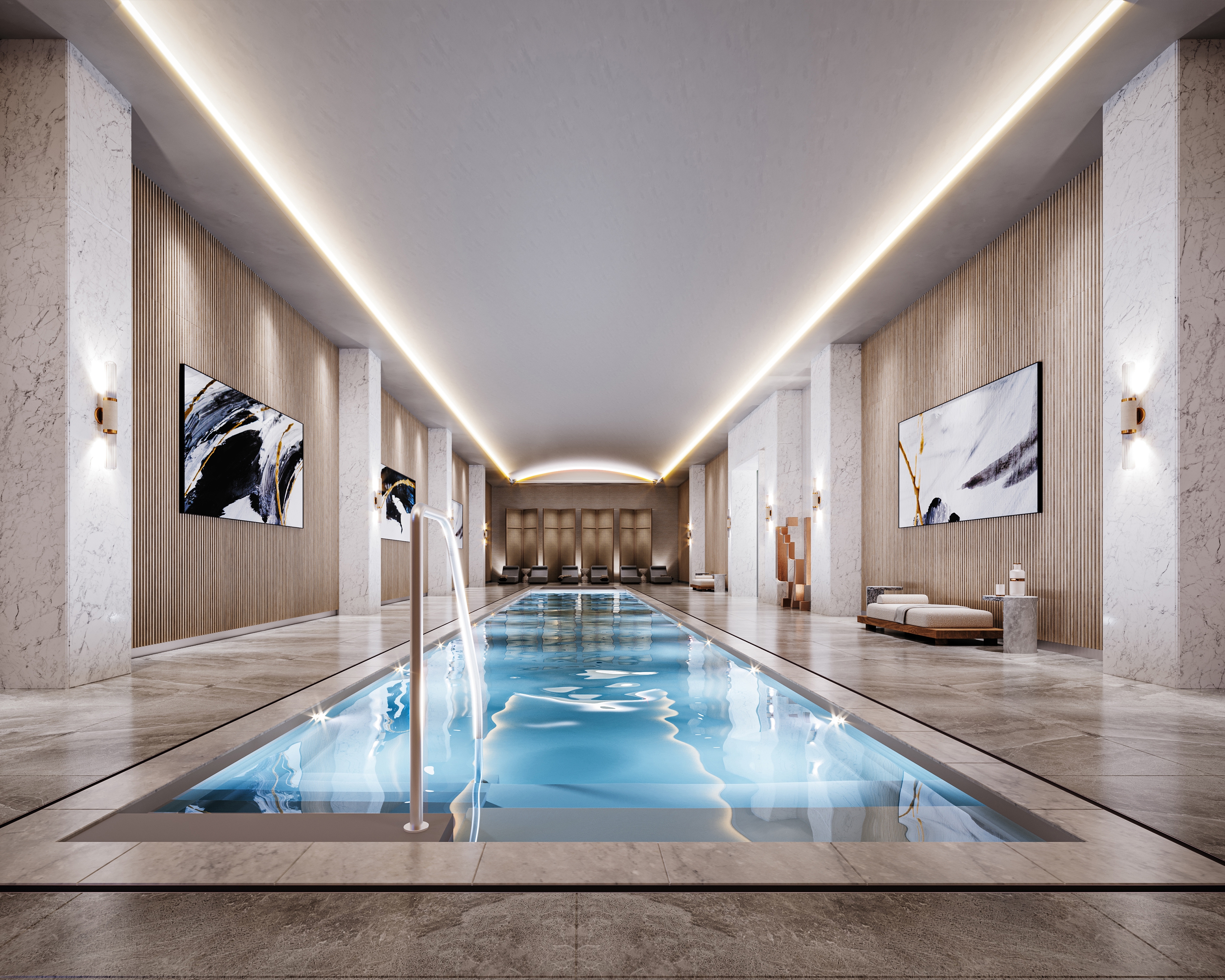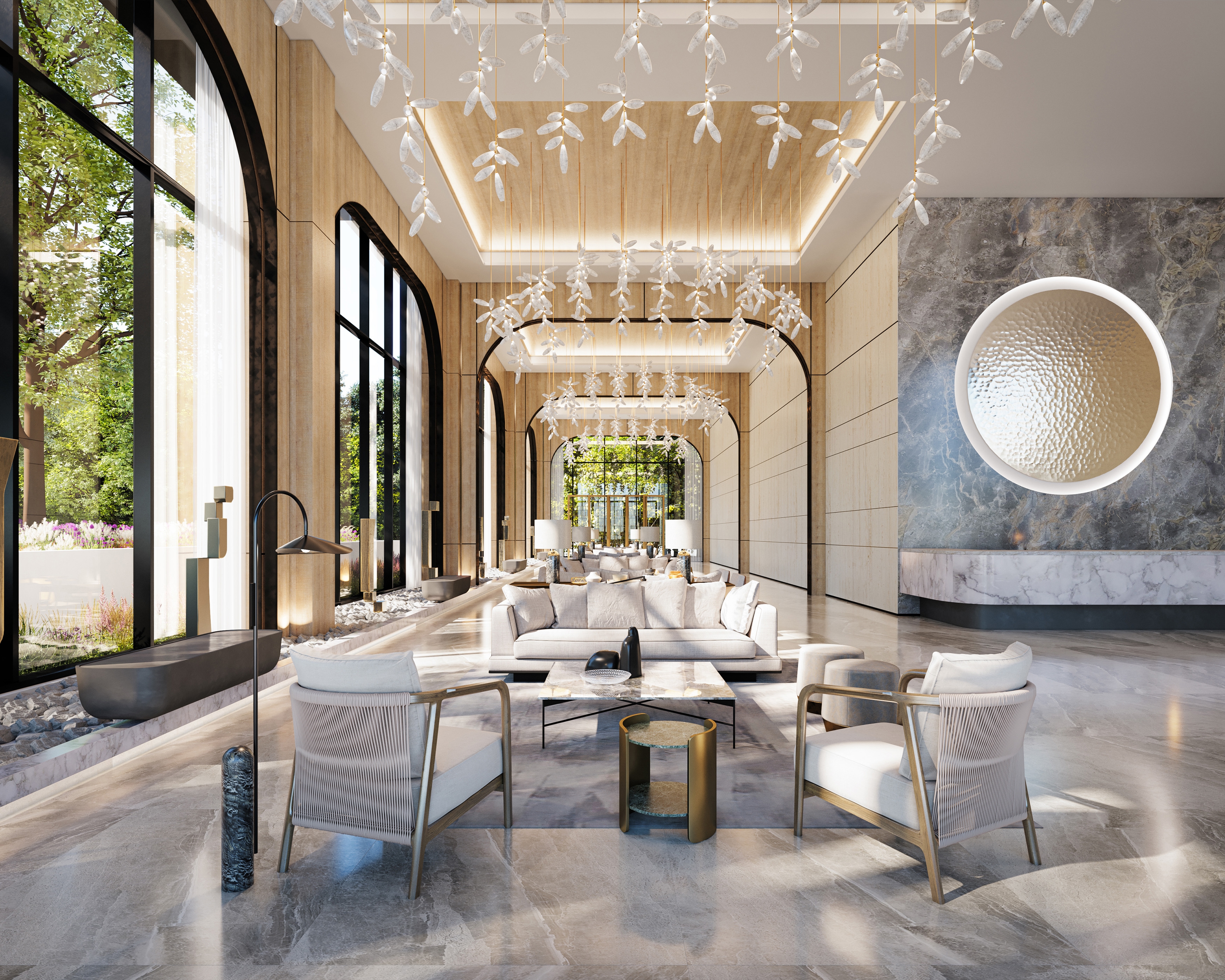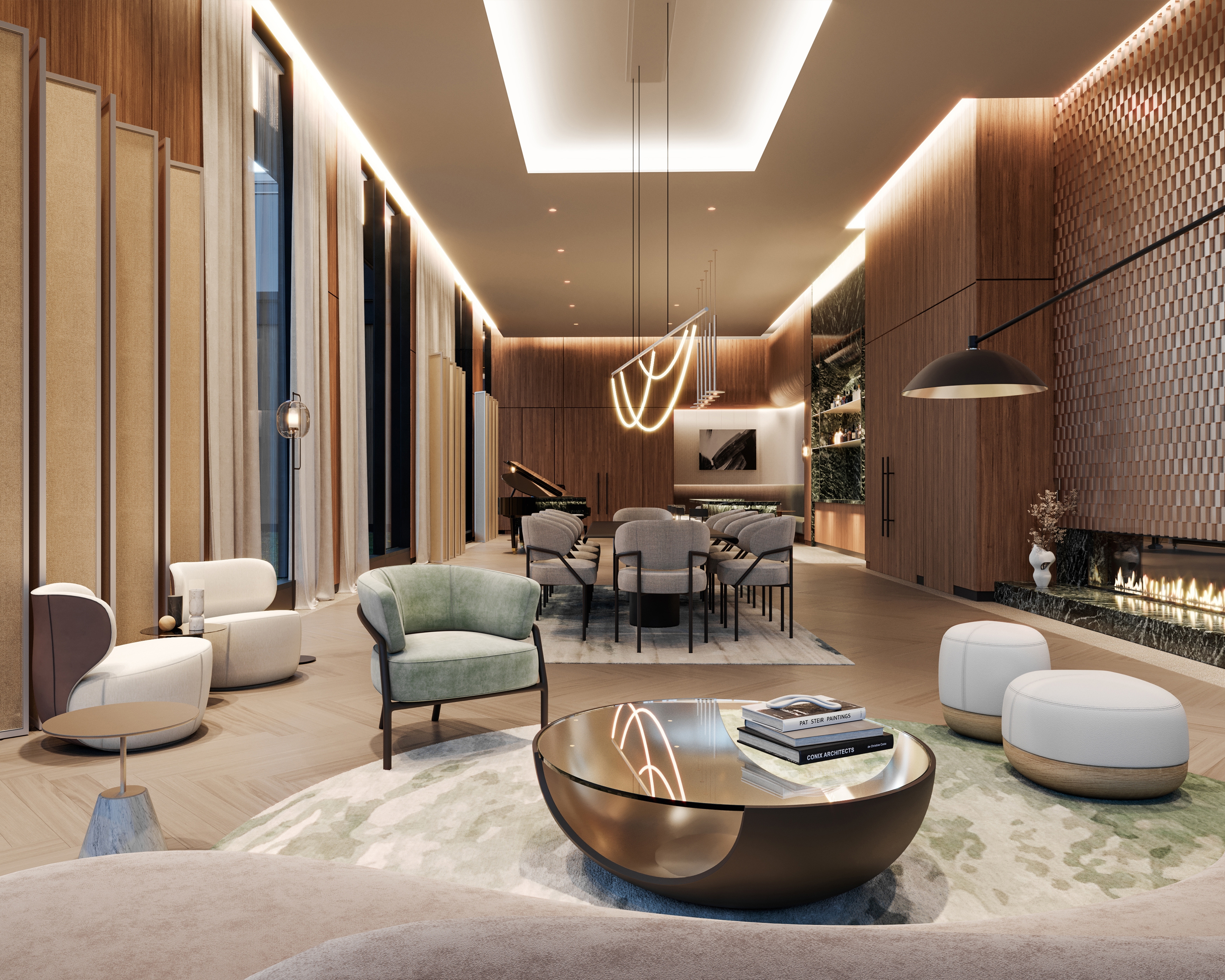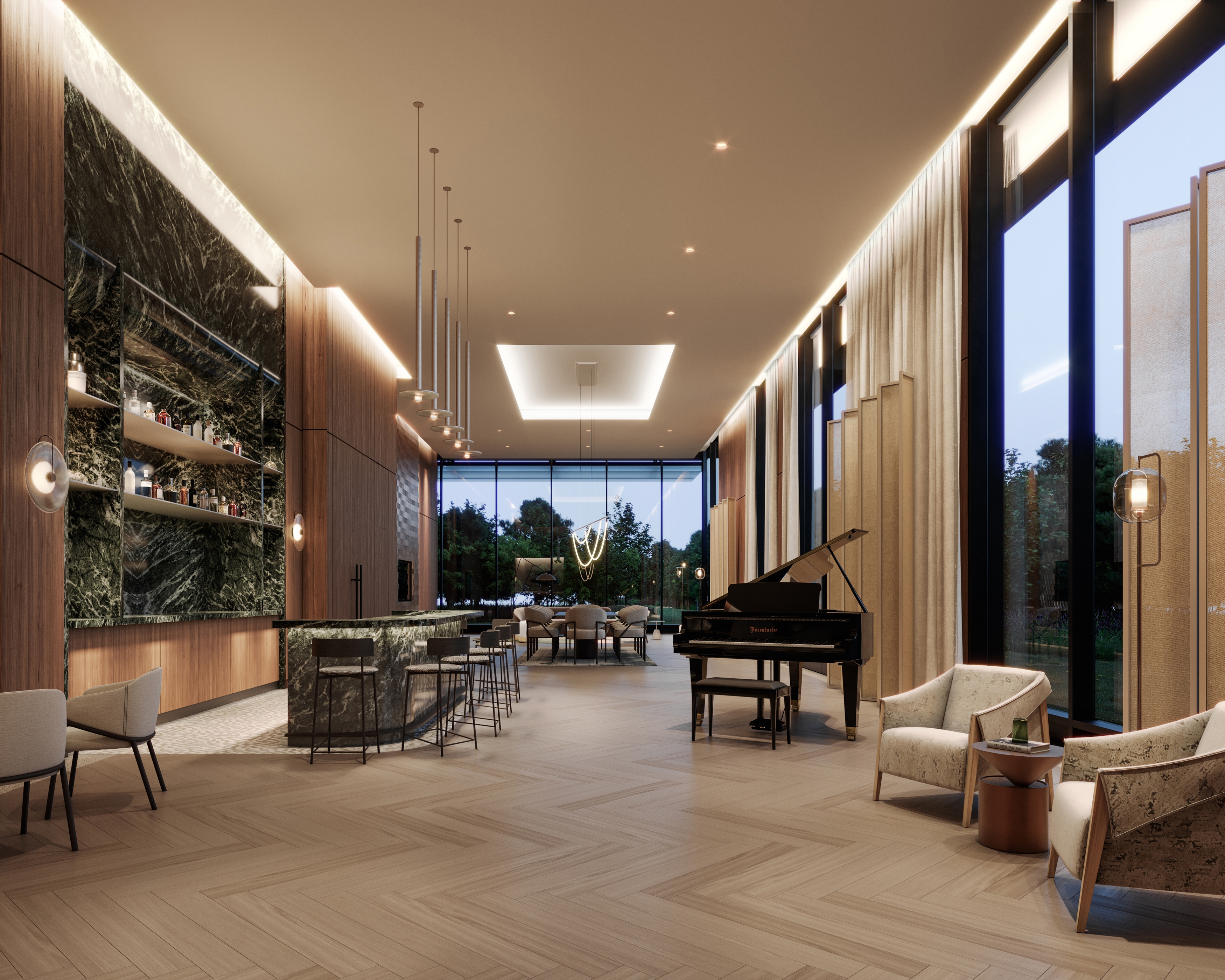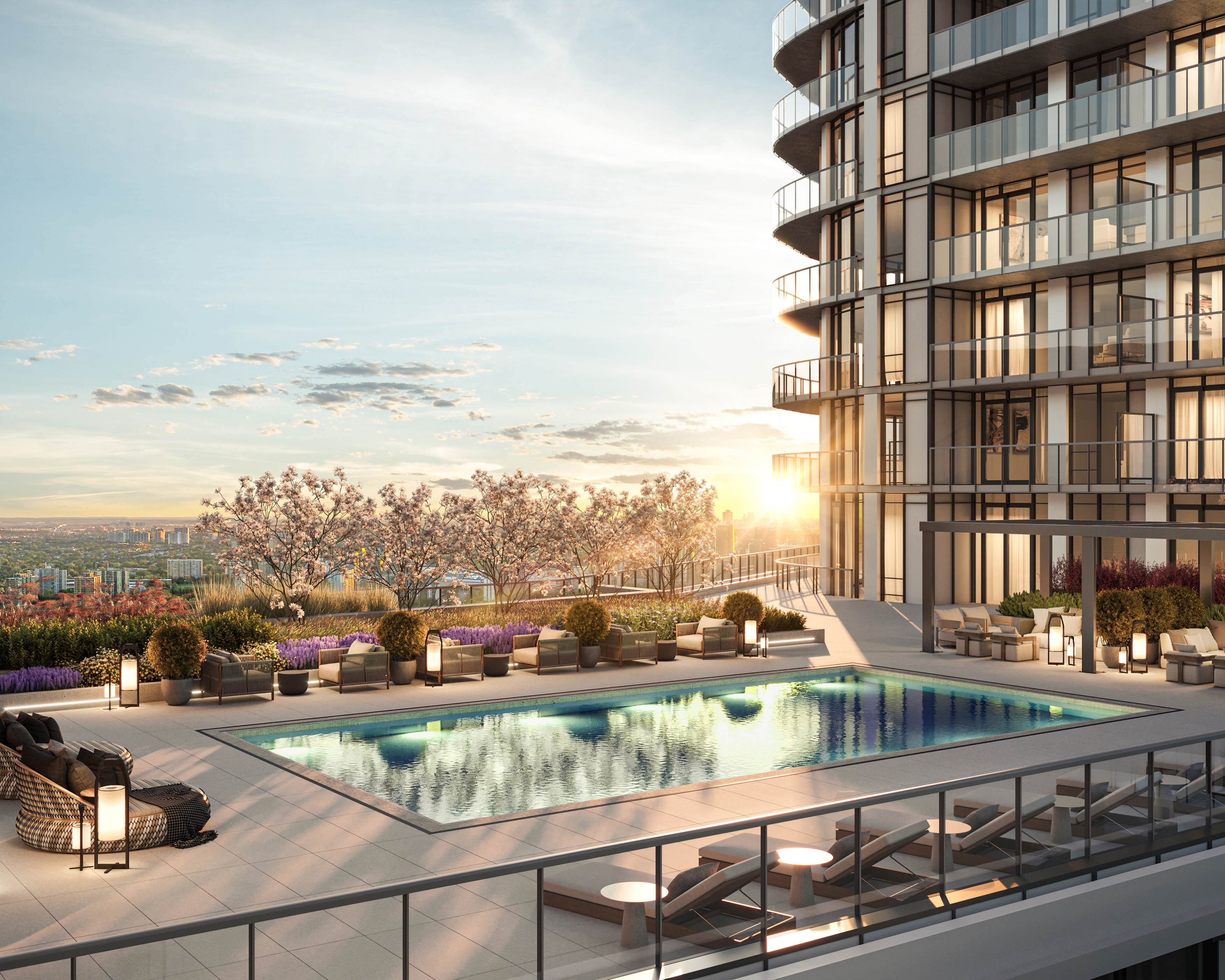 Tucked in Toronto’s protected ravine system and connected to a coveted neighborhood, The Residences at Central Park is a vibrant destination—focused on wellness and sustainability. The lively complex welcomes residents with its contemporary lifestyle conveniences, resort-like amenities, and elegant living spaces. Rising 31 storeys, the first tower of five breaks conventions with its organic architecture and nature-inspired interiors. A timeless composition of elements, materials, and ergonomic furnishings in warm tones and delightful textures relax and recharge its inhabitants. This urban oasis sets a new standard for connection: with direct access to bike and hiking trails, The Park Club™ features 55,000 square feet of wellness-focused amenities, including fitness, spa, co-working spaces, daycare, kid’s club, art studio, pet spa, and 2 rooftop terraces with a saltwater pool, cabanas, barbecue areas, and Zen gardens. Forward-thinking, the sophisticated design incorporates industry-leading environmental and sustainable initiatives for a clean, energy-efficient style of living for a better future. The Residences at Central Park promises a beacon of hope for city dwellers.