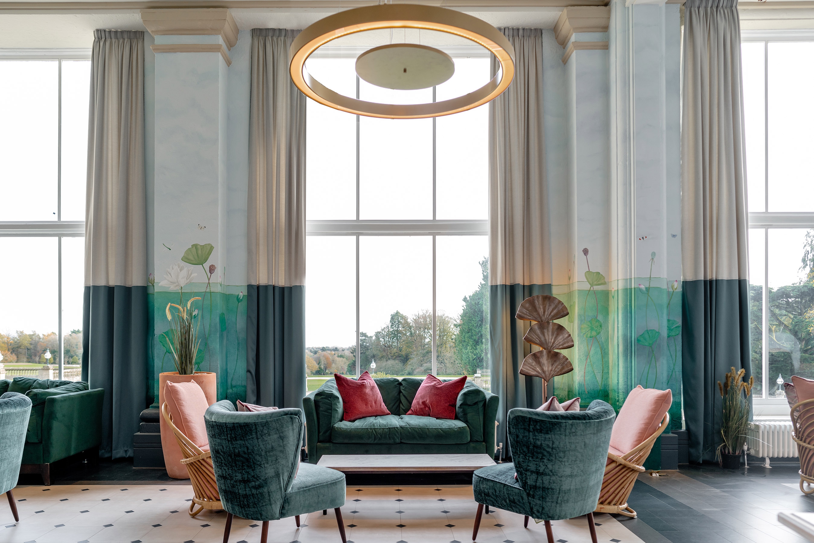 An engaging aesthetic bridges the gap between the charming manor house and the contemporary extension, creating a journey of discovery for the guests. This is illustrated in the details – from hand painted murals, original paintings restored, Italian lace parasols mounted upon a beautiful botanical wallpaper evoking Italian sun-drenched afternoons, to the more industrial ambience of the Brassey bar where the floor tiles, fluted columns and travel inspired artwork nod to Mr Brassey’s famed links to the railways.