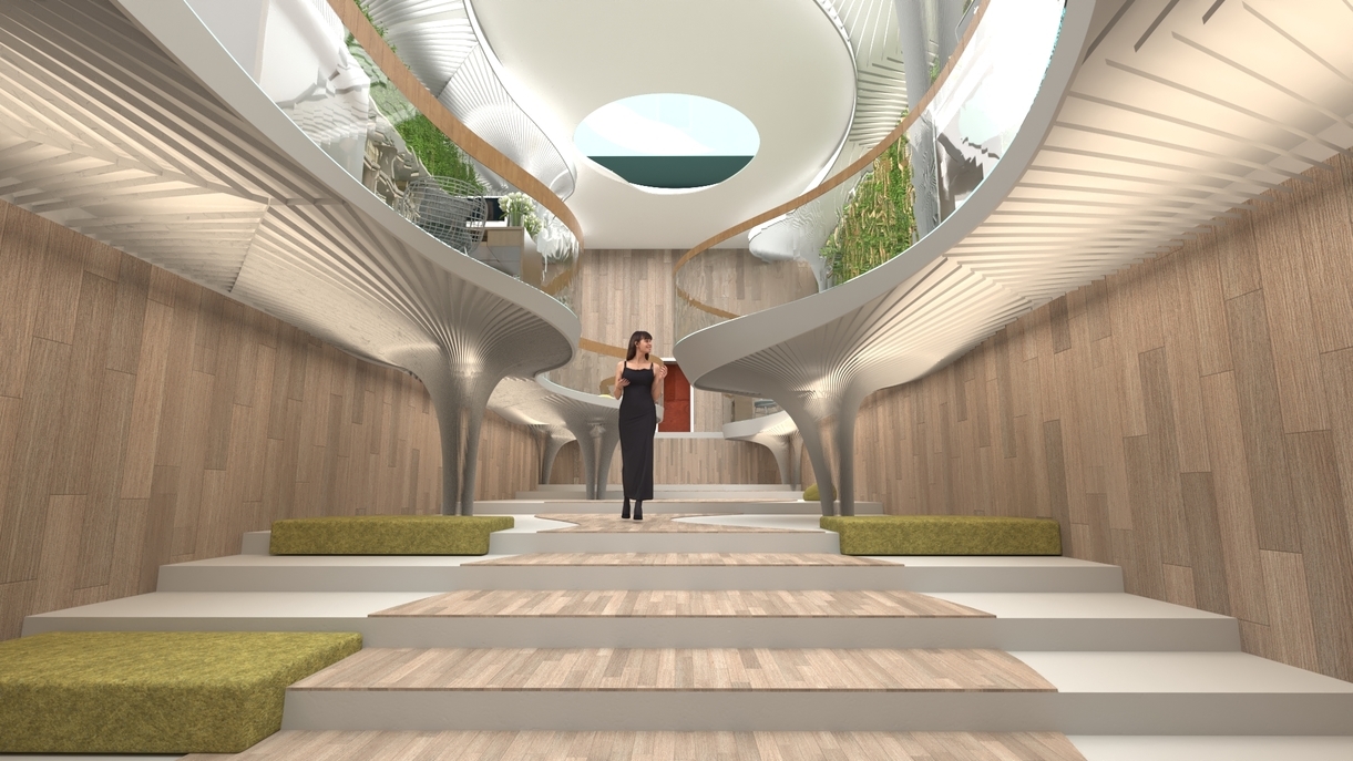 Think about a space, and that whatever you do in this space is one step closer to reaching a healthier version of yourself. Nothing could go wrong, for architecture has become your teacher and friend; the architecture itself will guide you while you are in it. All those around you are striving for the same goal. It is a domain of wellness, where visitors have the freedom, safety, and support systems to discover the resources inside to improve physically, emotionally, or mentally. The ecosystem within this building functions as an overall support system for everyone within it. Where is this place? Let me introduce you to the Green Booster experiential store. This facility was designed with one overarching goal--to be a sanctuary for those looking to better themselves physically, mentally, and spiritually.