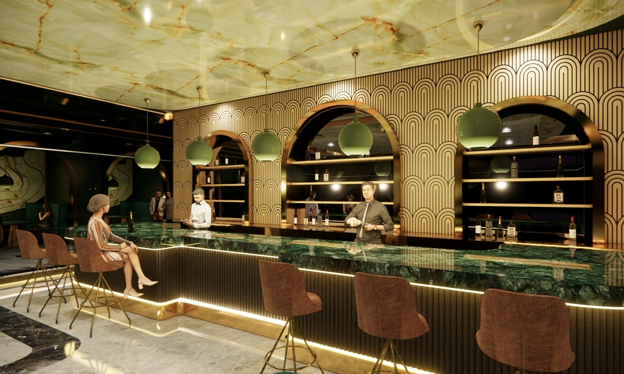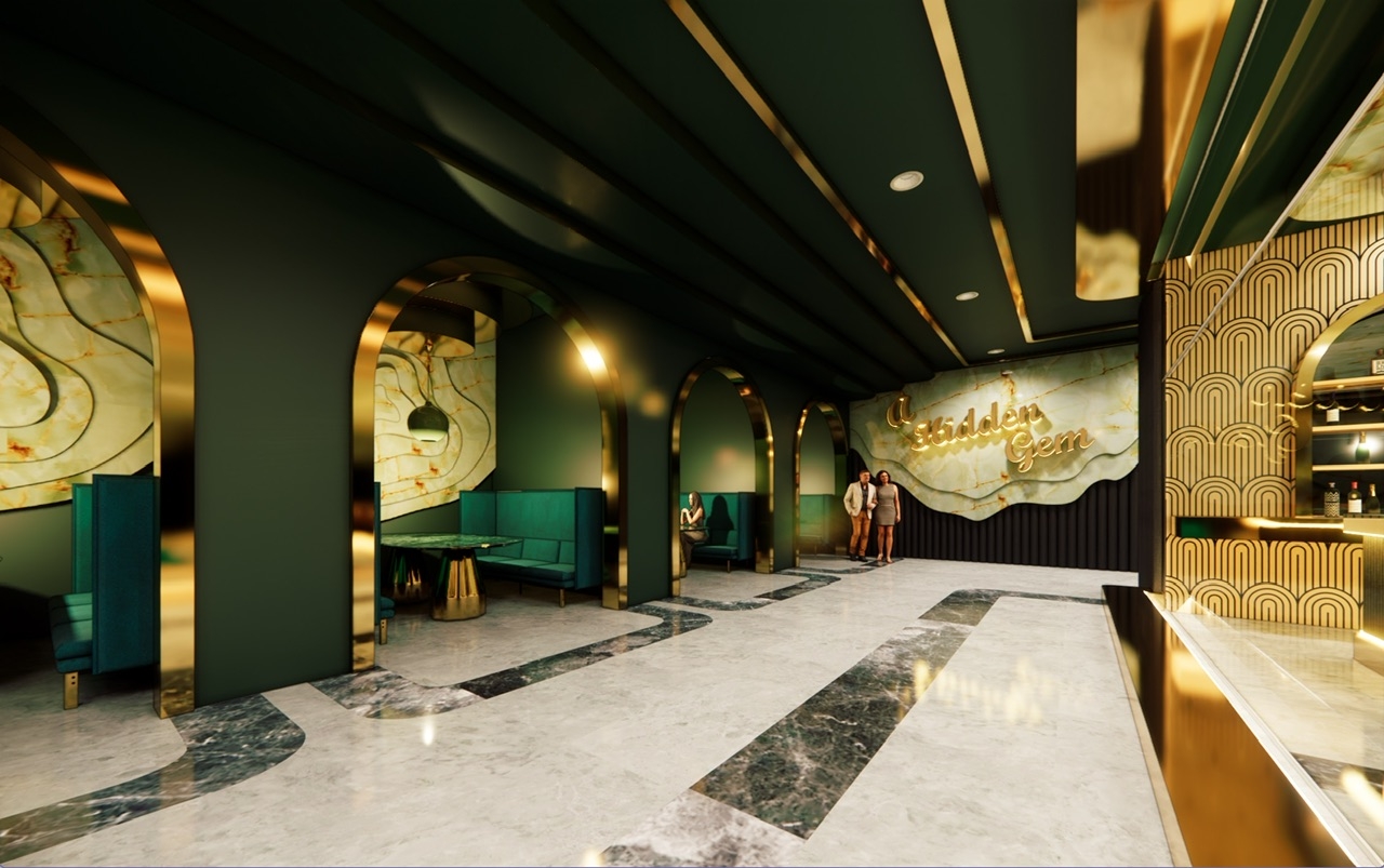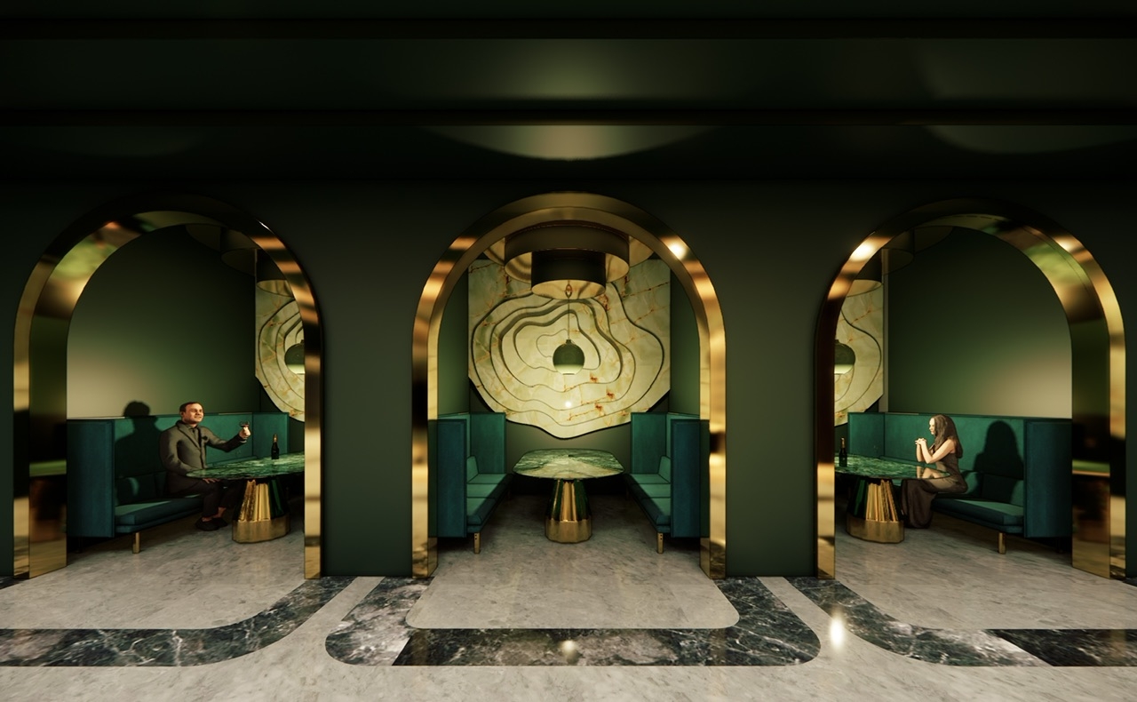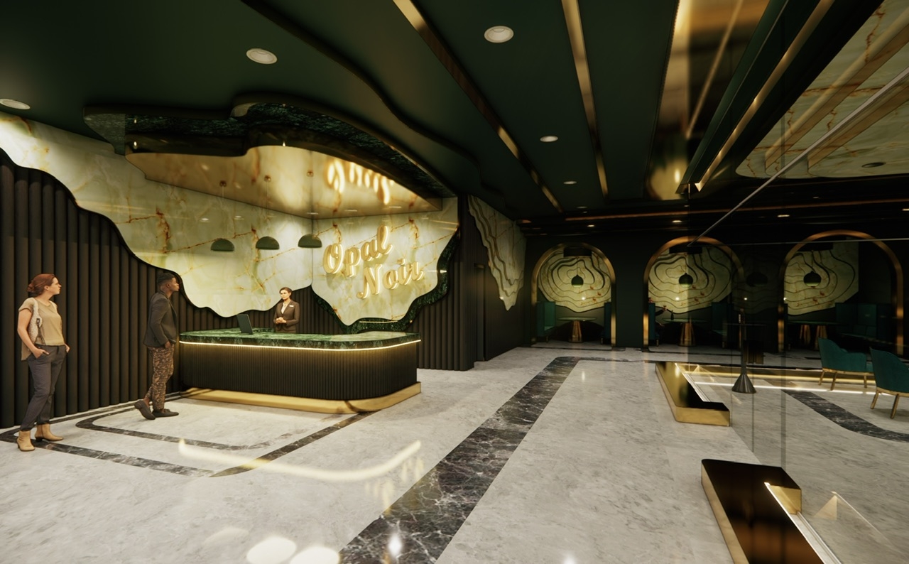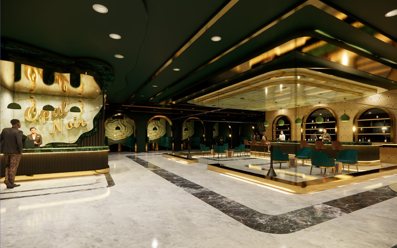 Opal Noir: A luxury resort bar and lounge located within the Opal Grand Resort in Delray Beach, Florida that is designed to push the boundaries on “redefining luxury”. Inspired by elements of the art deco style, Opal Noir incorporates rich, deep hues and materials throughout the design from the cozy alcoves to the VIP lounge in order to provide an upscale but timeless and welcoming experience for all its users.