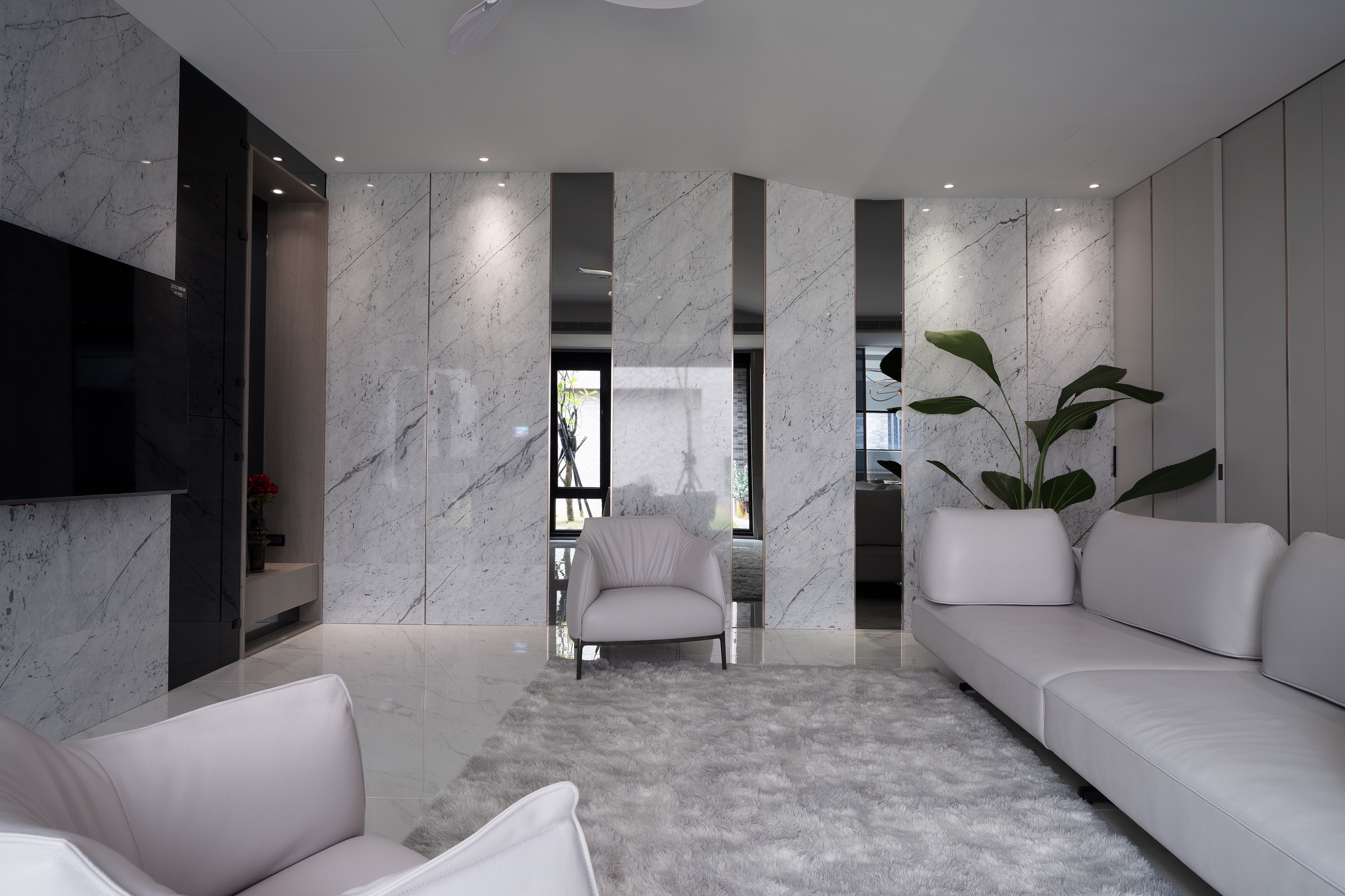As for the lines, many vertical lines are used, and titanium plating, stone dividing lines, and door dividing lines are used.