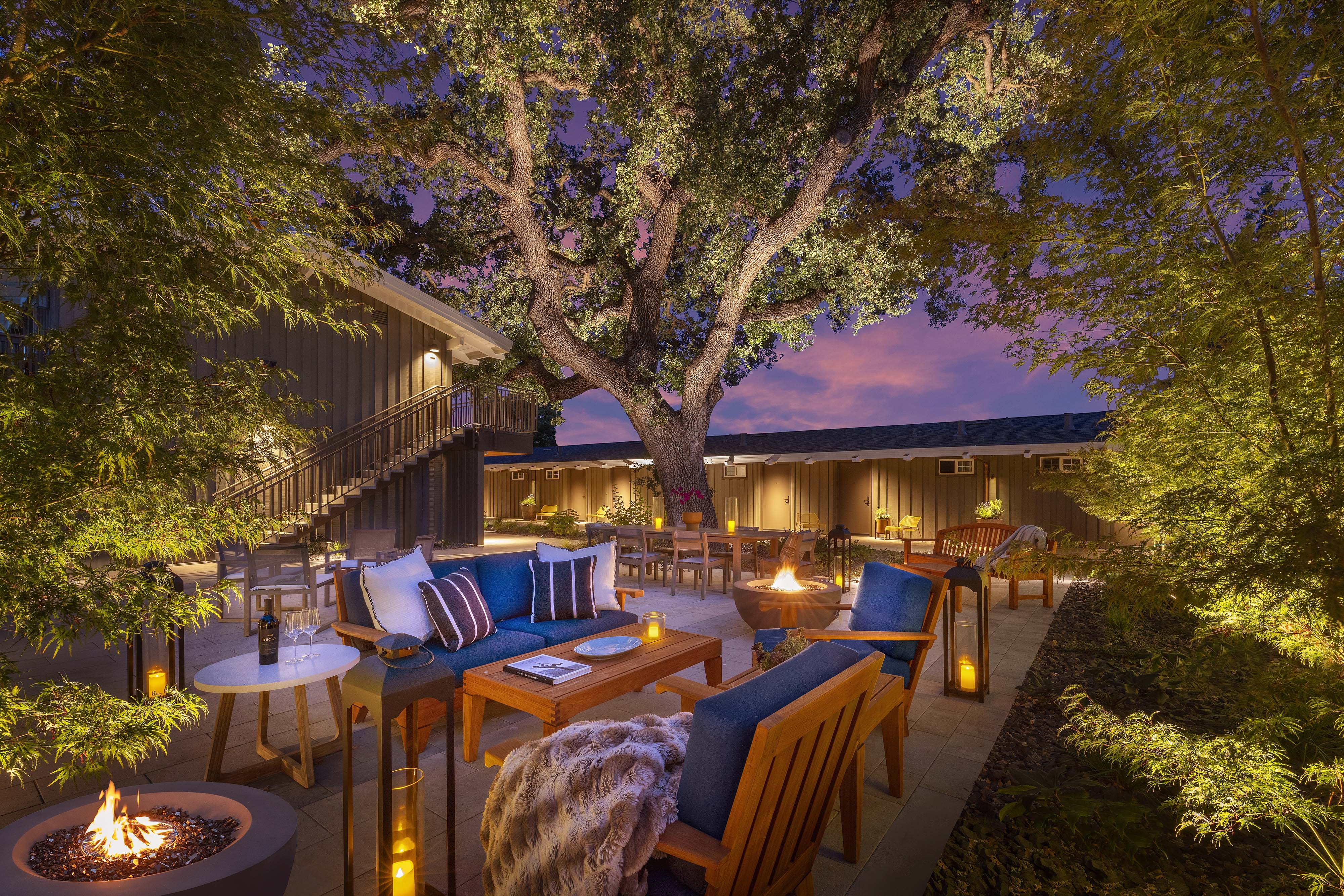 The Cottages, A Secluded and serene, yet lively boutique lodging experience in the heart of Menlo Park. The Cottages embody both comfort and a relaxed elegant lifestyle in a peaceful tranquil setting.
