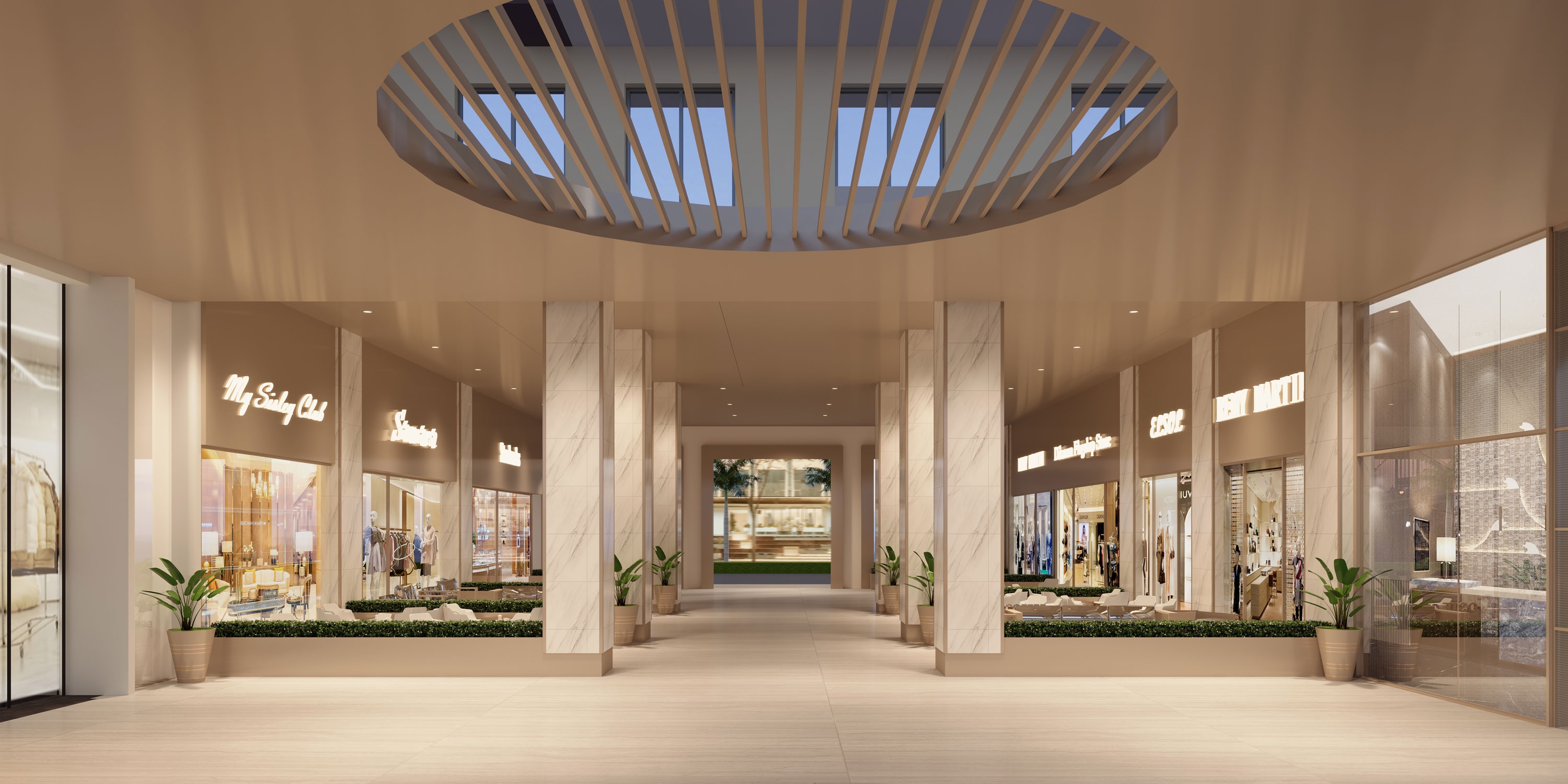 The entrance welcomes the guests with a concise Italian beige marble landscape wall, combined with the 70-meter-long coconut grove to enhance the sense of ceremony. The drop-off area is the entrance of the hotel, which is equipped with a shopping street of luxury brands to create a holiday-like experience that is prosperous outside and tranquil inside.