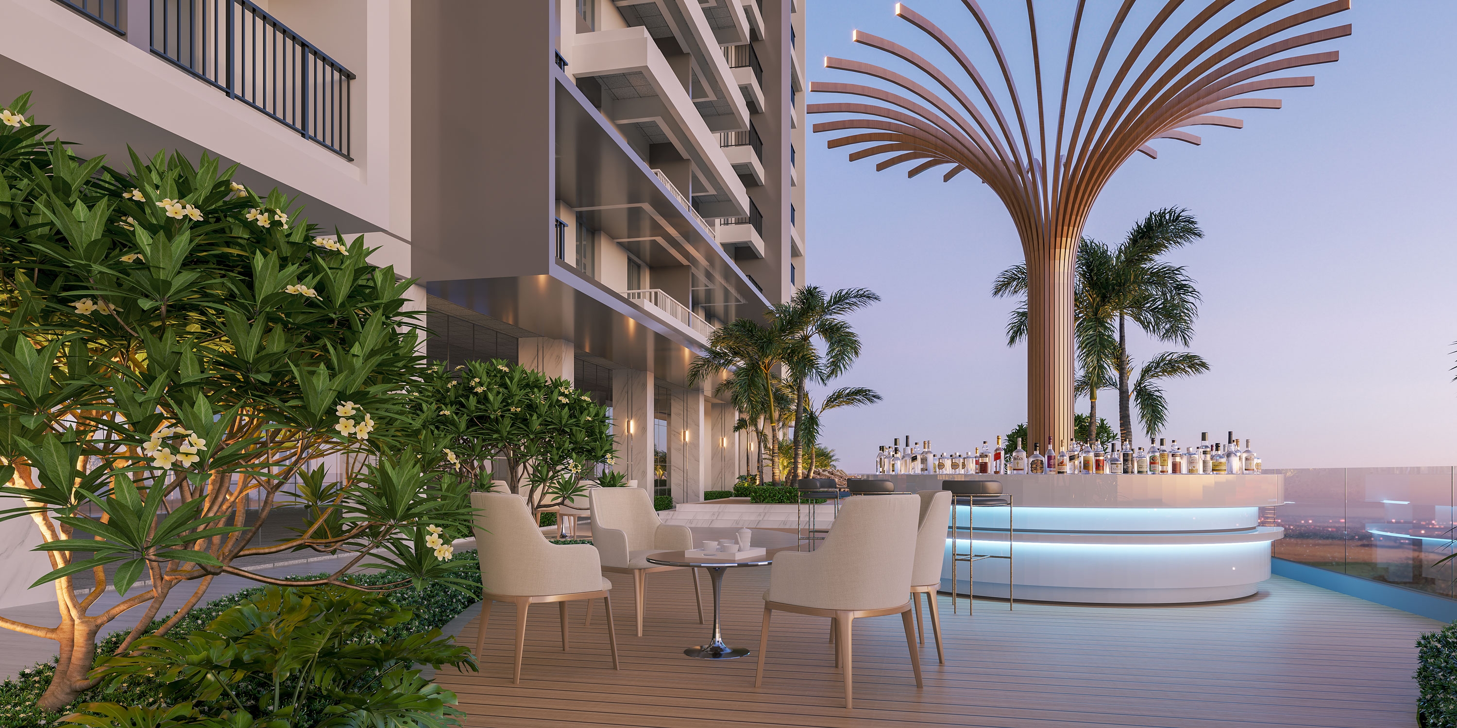 The stylish roof garden on the 4th floor features a light vacation environment, where the natural elements of water, wind, and light become the distinctive themes of gardens. The design creates modern flowing land art and relaxing hotel-style landscapes—thus creating a new experience of an international fashionable and artistic resort.