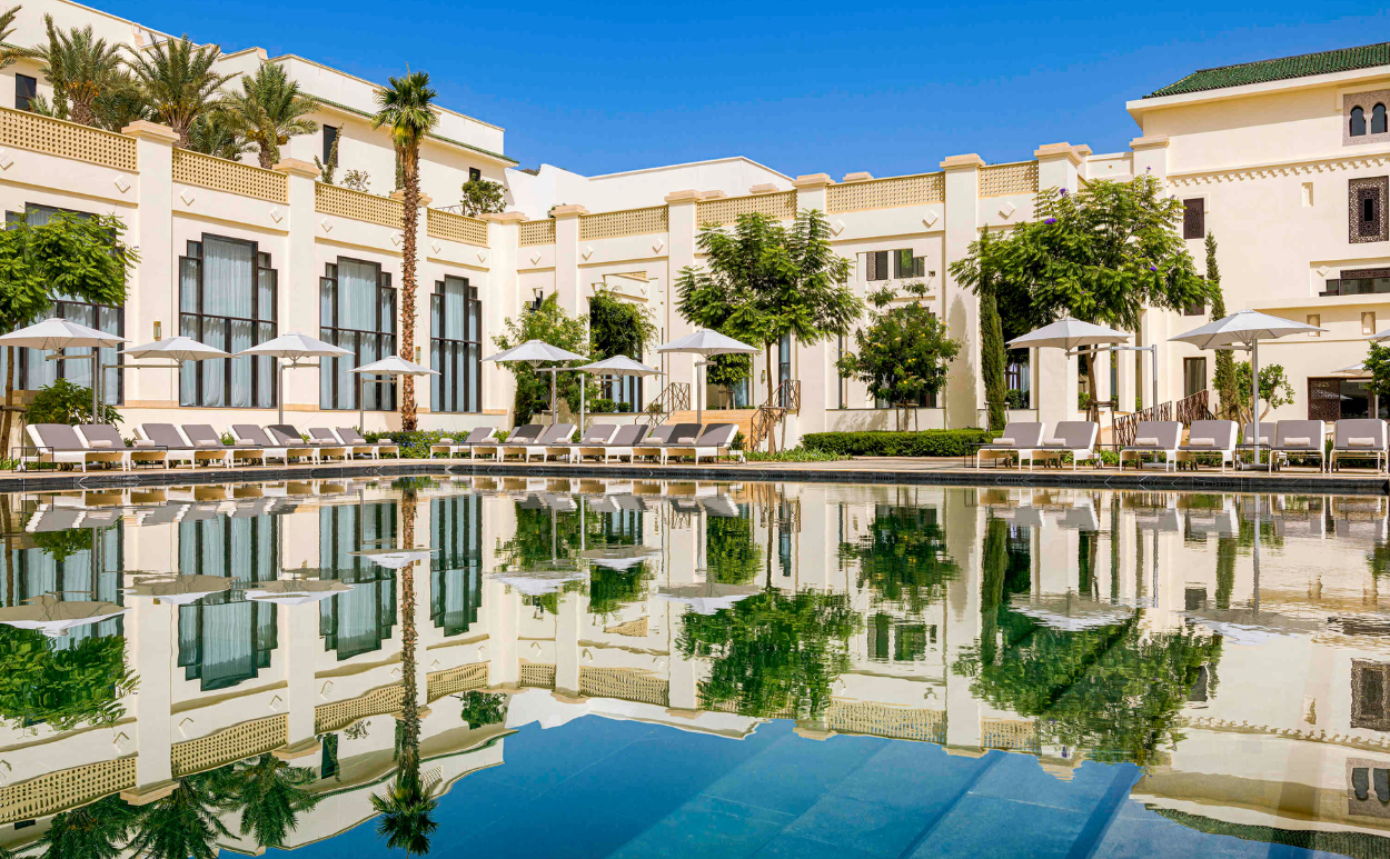Each of the 133 rooms, suites, and penthouses pays homage to Moroccan high craftsmanship, showcasing handcrafted moucharabiehs, mosaics, and textiles by local artisans.