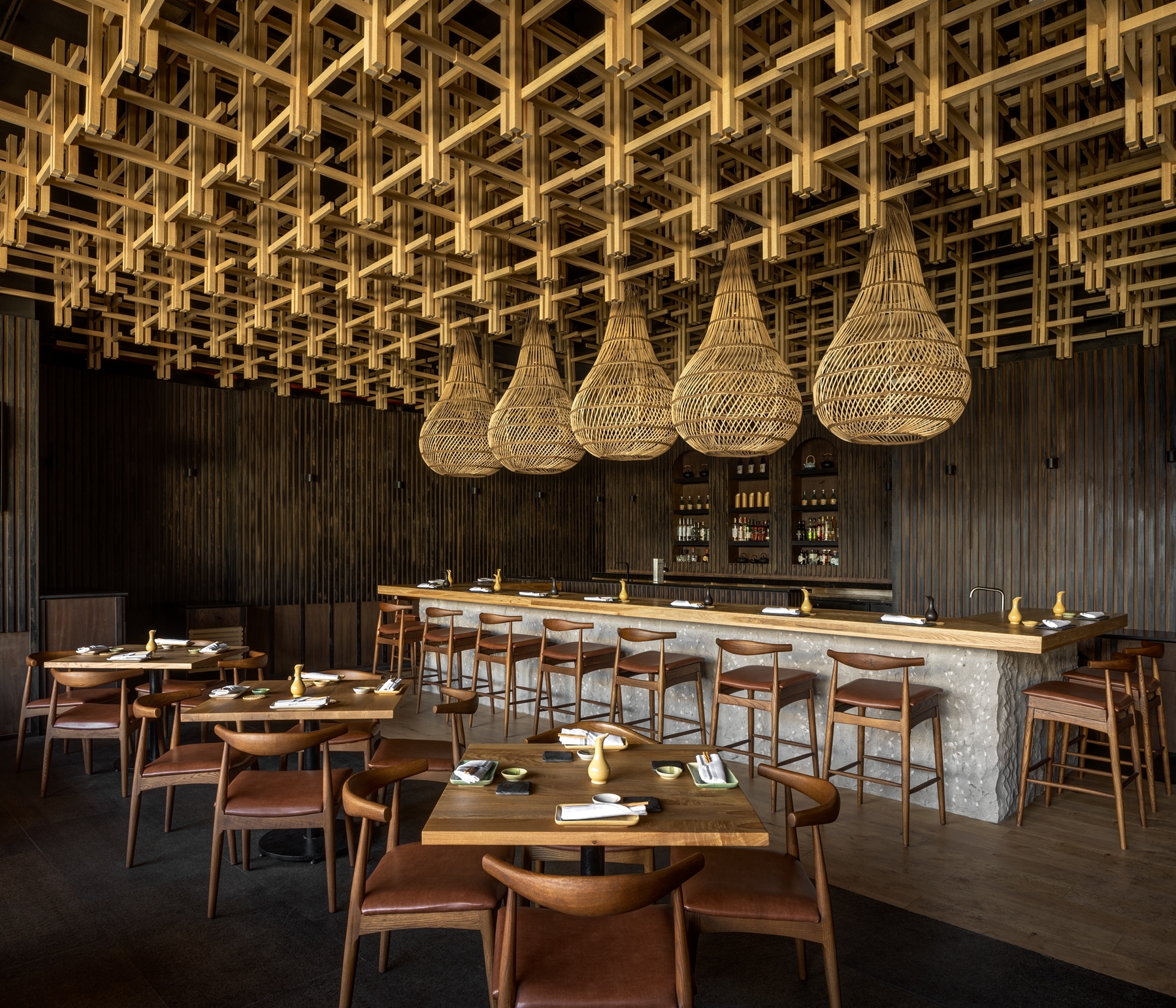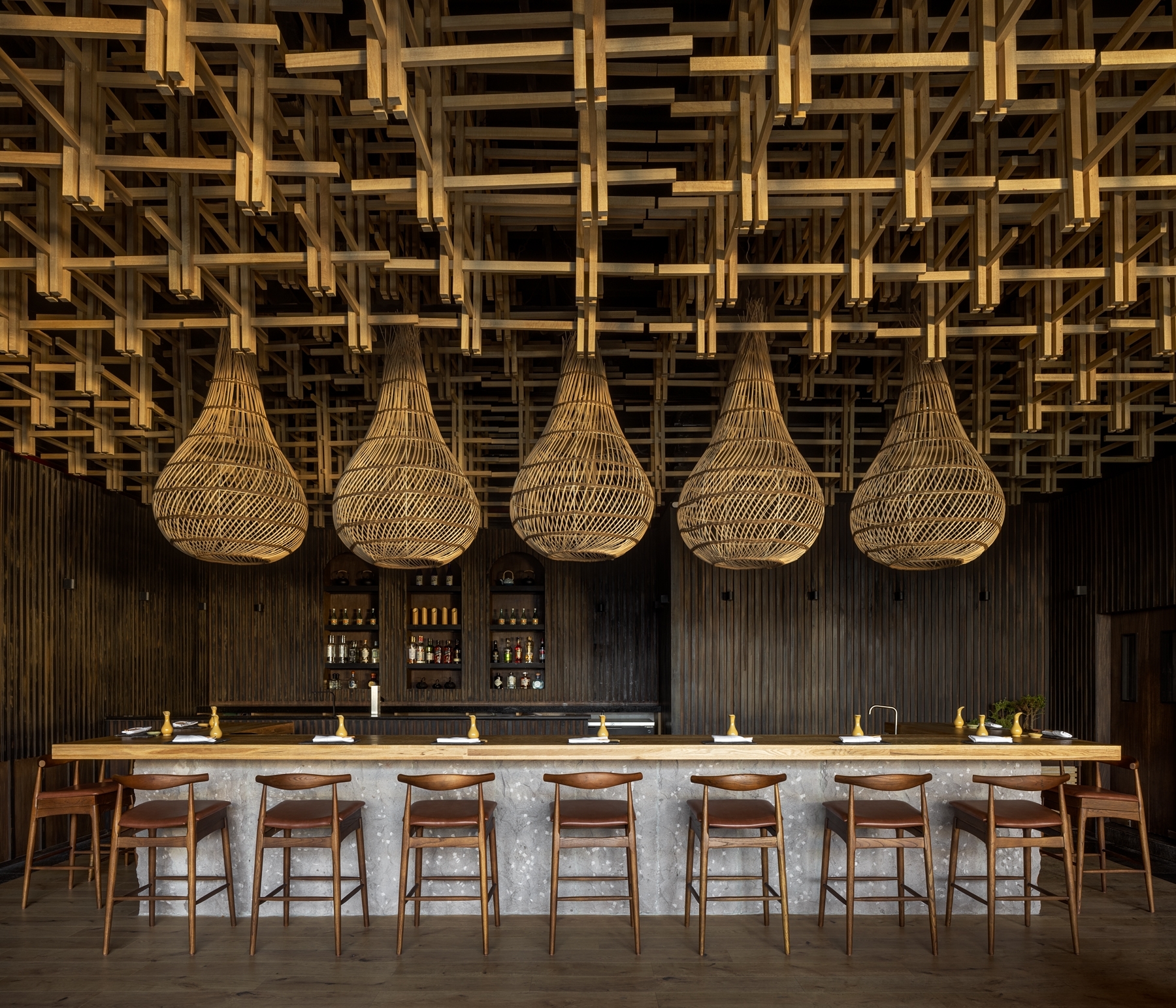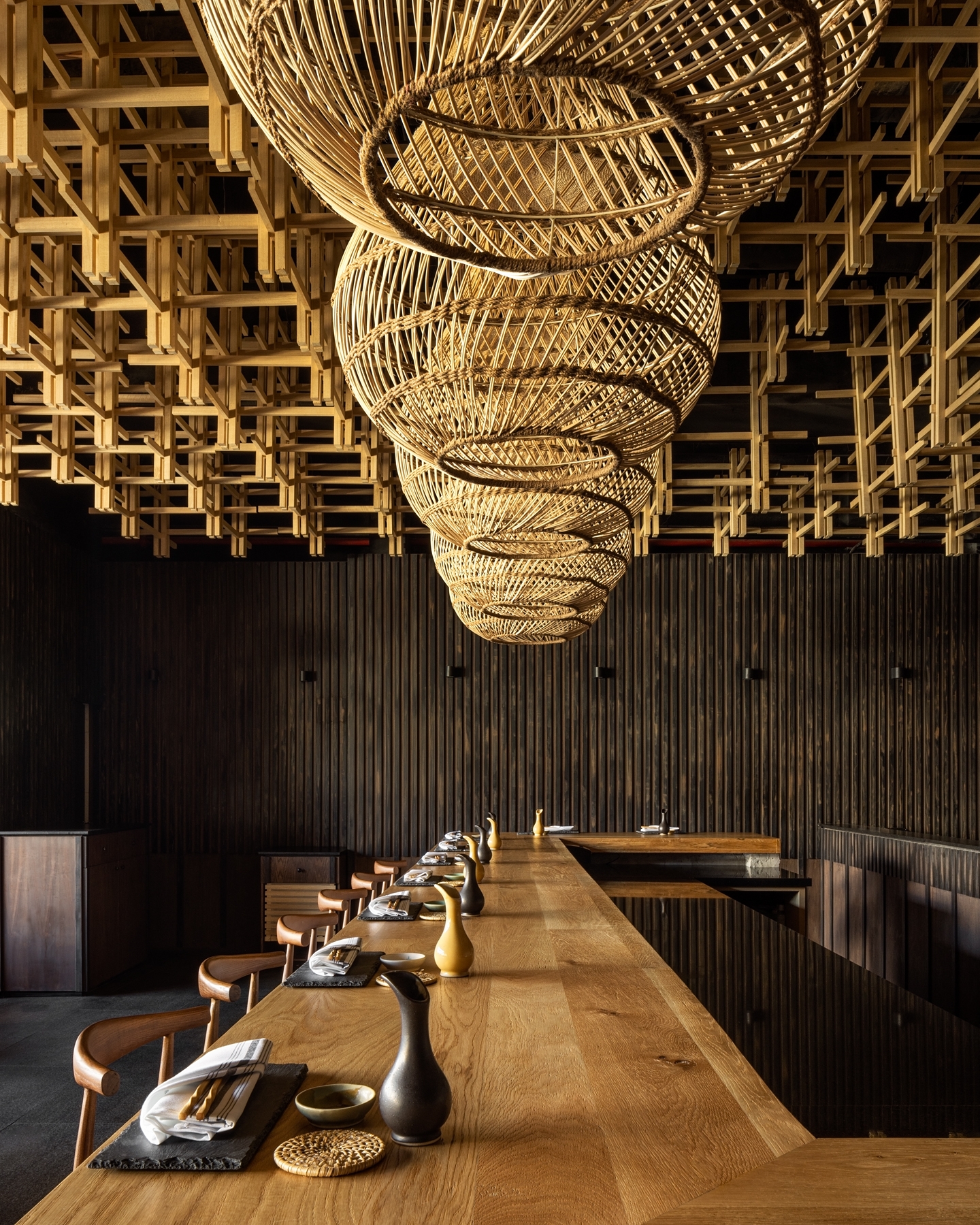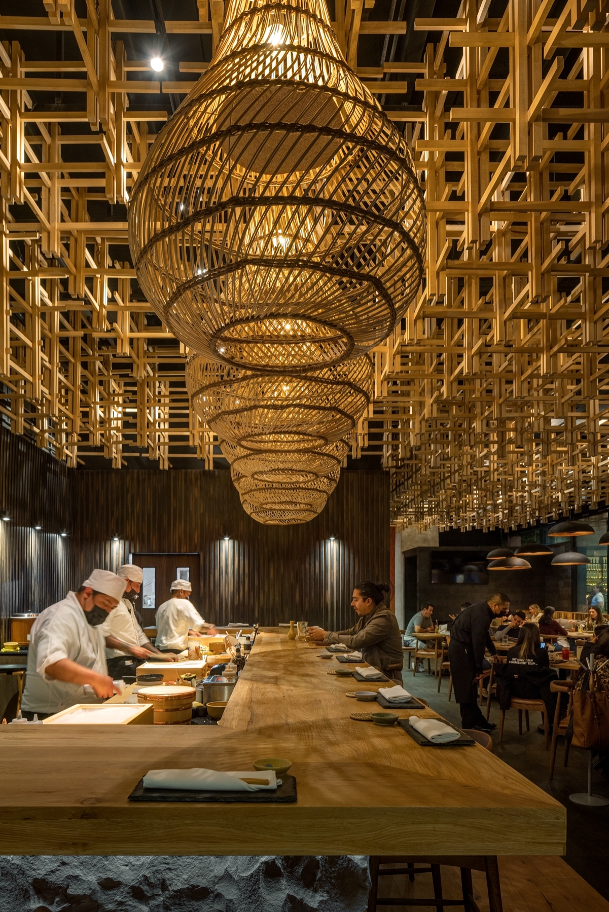 The space tries to generate an experience of contrasts between textures, shapes and colors, but in a subtle way, as if we were eating a nigiri, enjoying the contrasts between the shapes, colors and textures of rice and fish