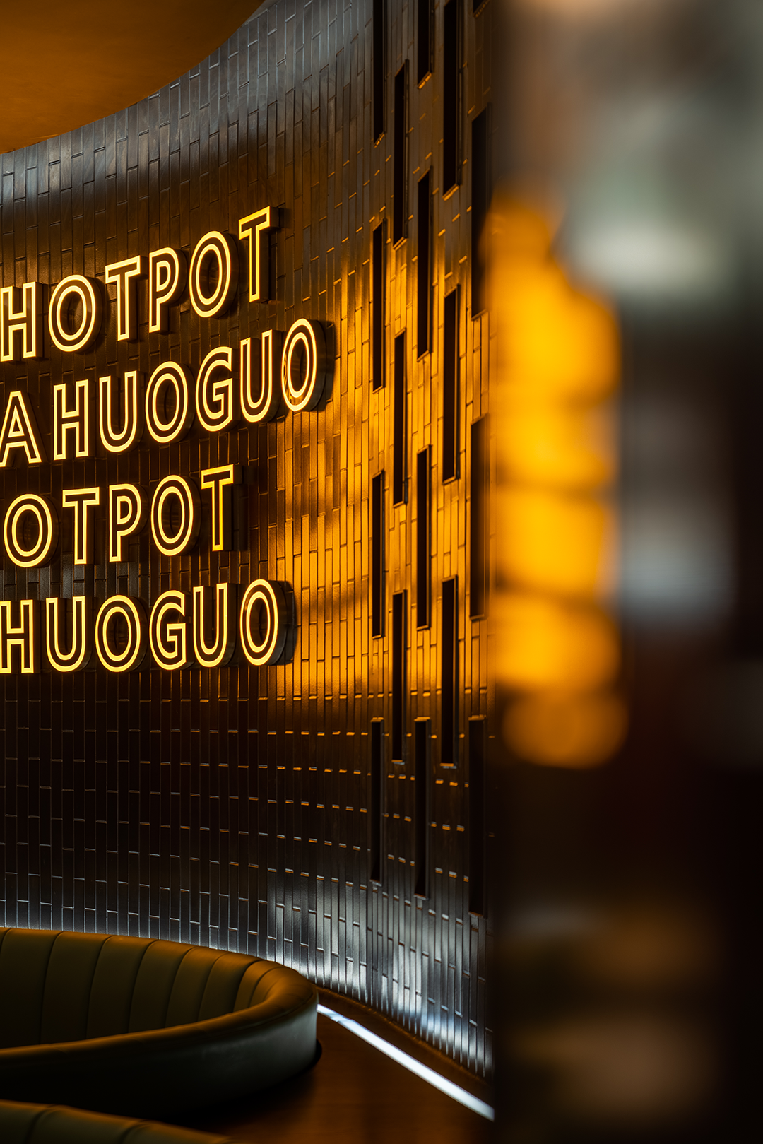 The “text” coordinates on the screen installation are derived from the culture of the city,The acrylic light sign hanging from the ceiling adds the “steampunk” element that young people adore.