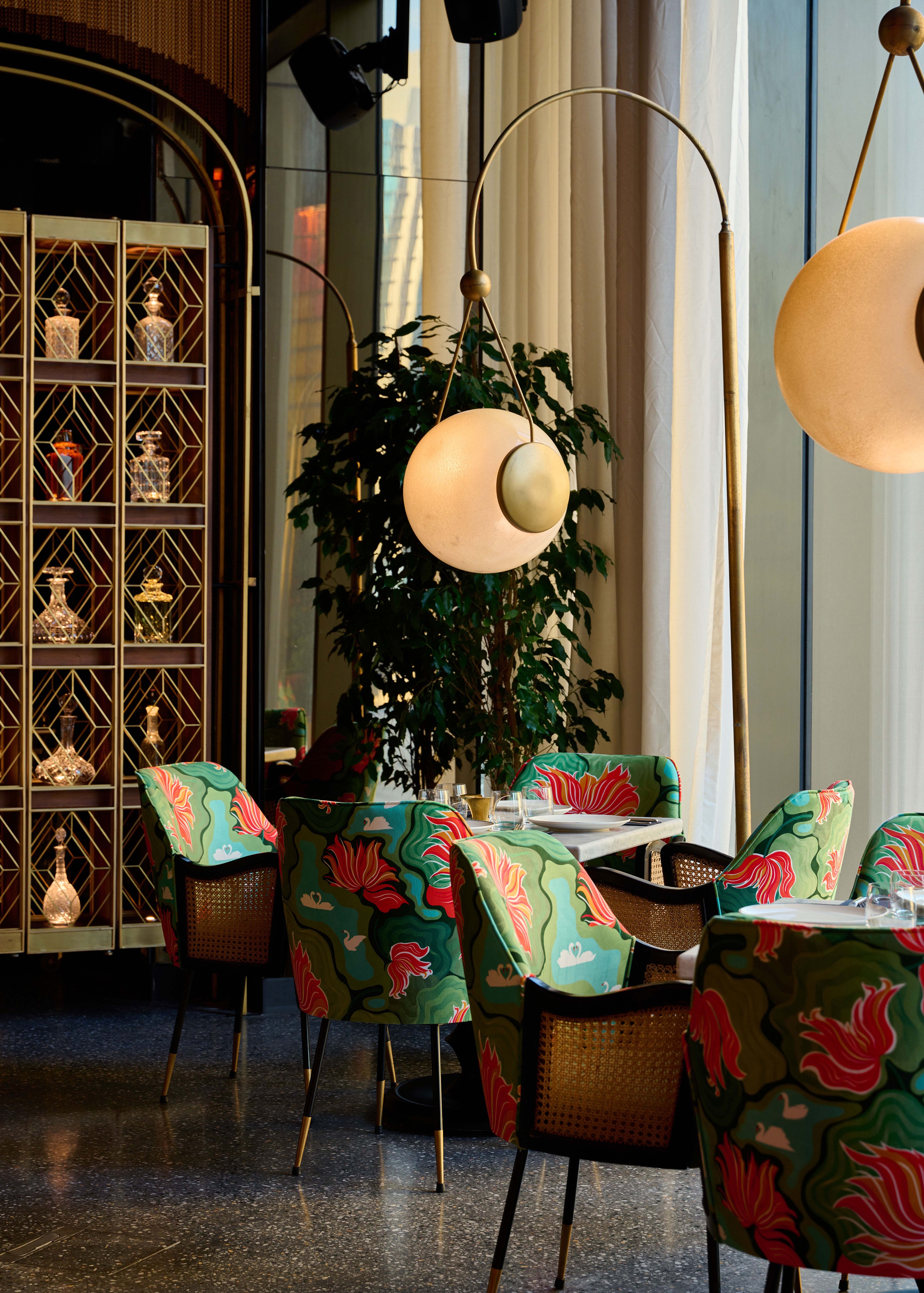 The resultant space exudes charm, retaining identity through the repurposing of elements, yet uncompromising on the creation of a deeply luxurious dining experience. The existing flooring, bar backdrop and furniture, were polished, mended, and reupholstered. The result challenges the notion that luxury spaces require entirely new elements, showcasing a commitment to circularity in a typology it is not normally associated with