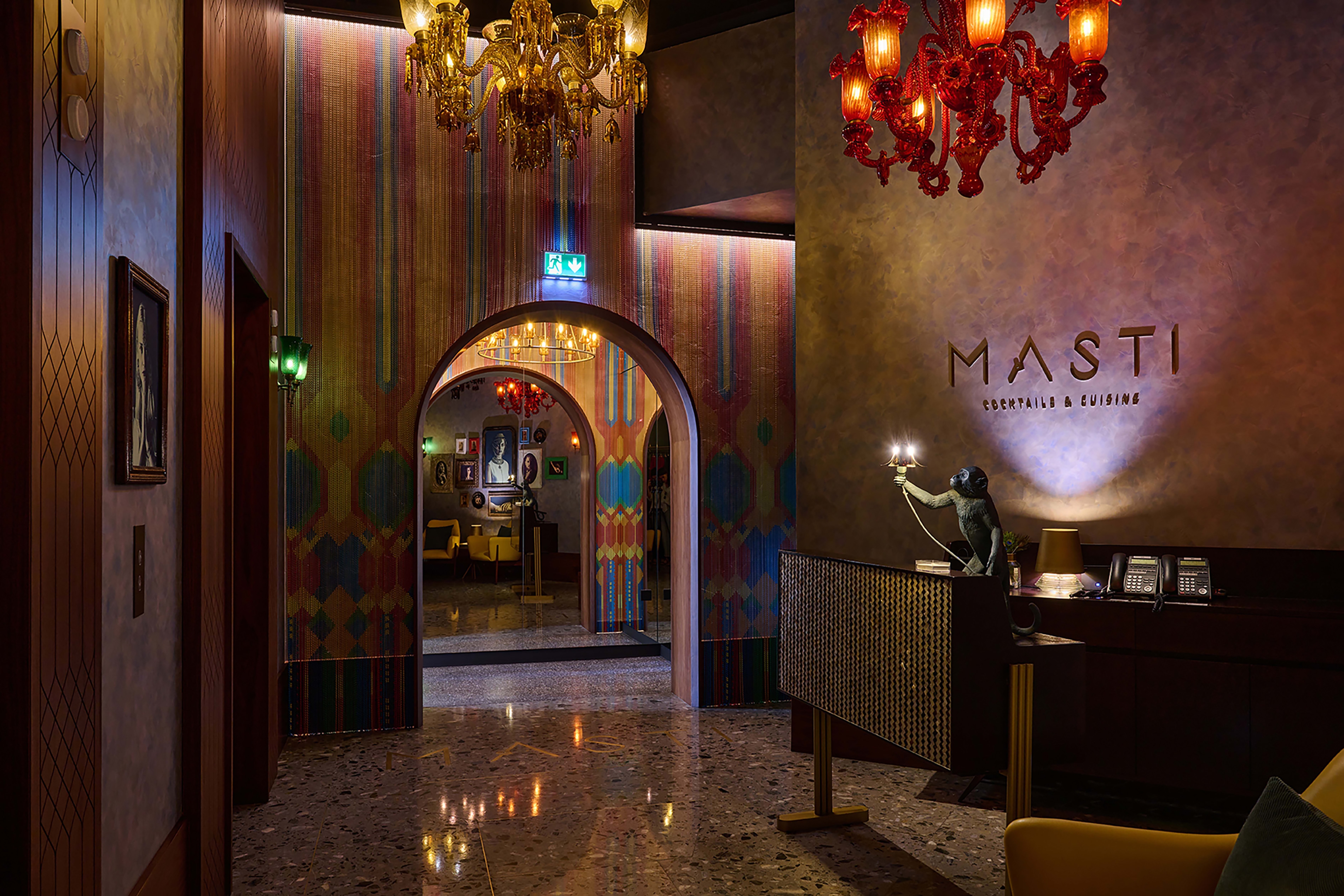 The original Masti Cocktails & Cuisine in La Mer, Dubai, had emerged as a world-class dining destination for Modern Indian cuisine. Its move to The Dubai Edition Hotel is a skilful assemblage of the old and the new, preserving the hospitality experience of the original while enhancing the drama and delight of the dining experience. Familiar spatial markers carrying forward the memory of the original, evoking warmth and nostalgia, while dynamic new insertions celebrate its new avatar.