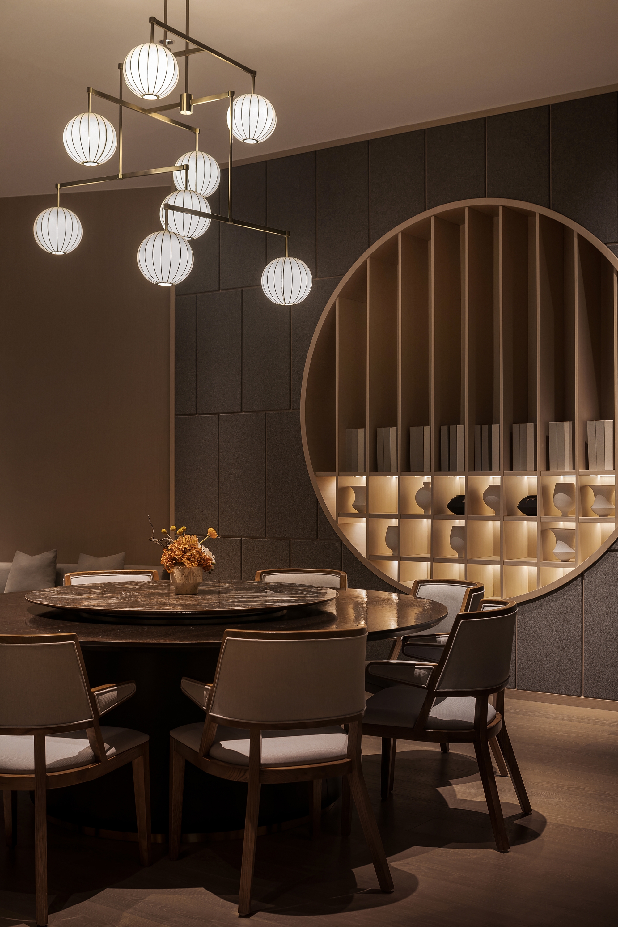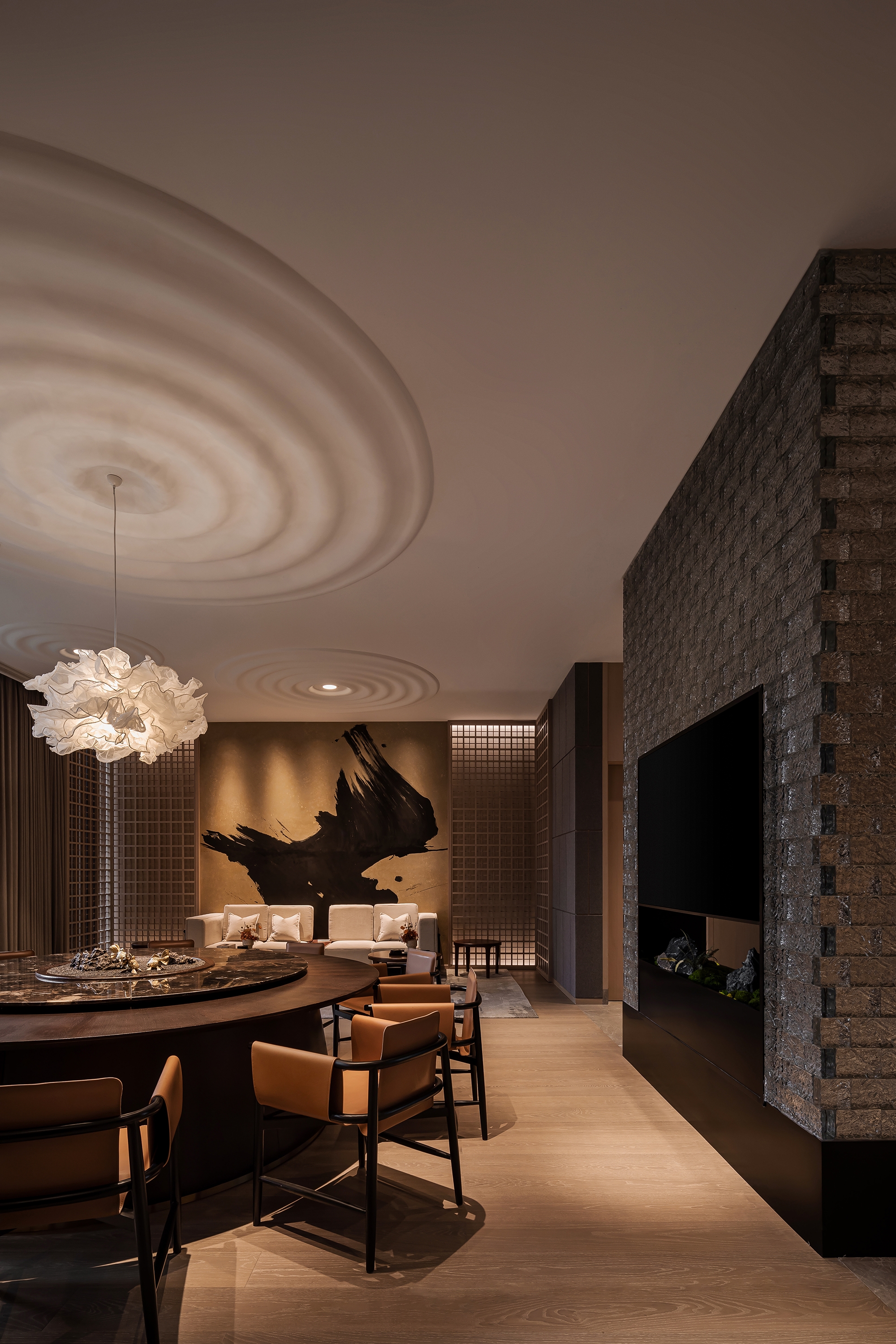 Rooted in the profound mountain and sea culture of Taizhou, this project extracts the classic images in the local culture, integrates the Oriental aesthetic charm, and processes them into the unique design theme of each private room, and interprets the elegance and interest of Oriental freehand landscape poetry and painting through modern design language.