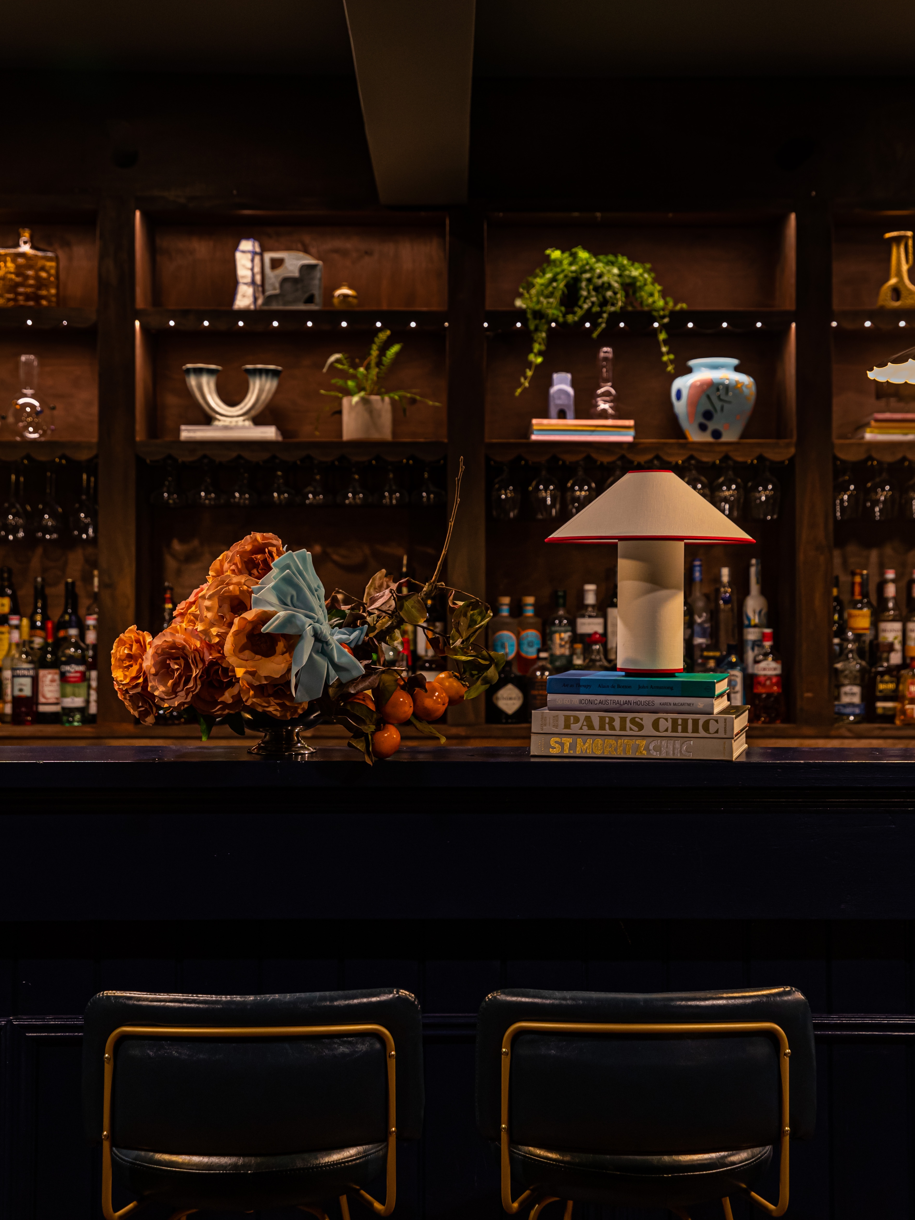 A subtle French influence weaves its way through the design of the bar, evoking an aura of timeless refinement and classical harmony, like you’ve stumbled into a hidden room layered with trinkets of those who have passed through, both then and now. Every corner is infused with an enchanting blend of old-world elegance, surprisingly punctuated with pops of contemporary flair.