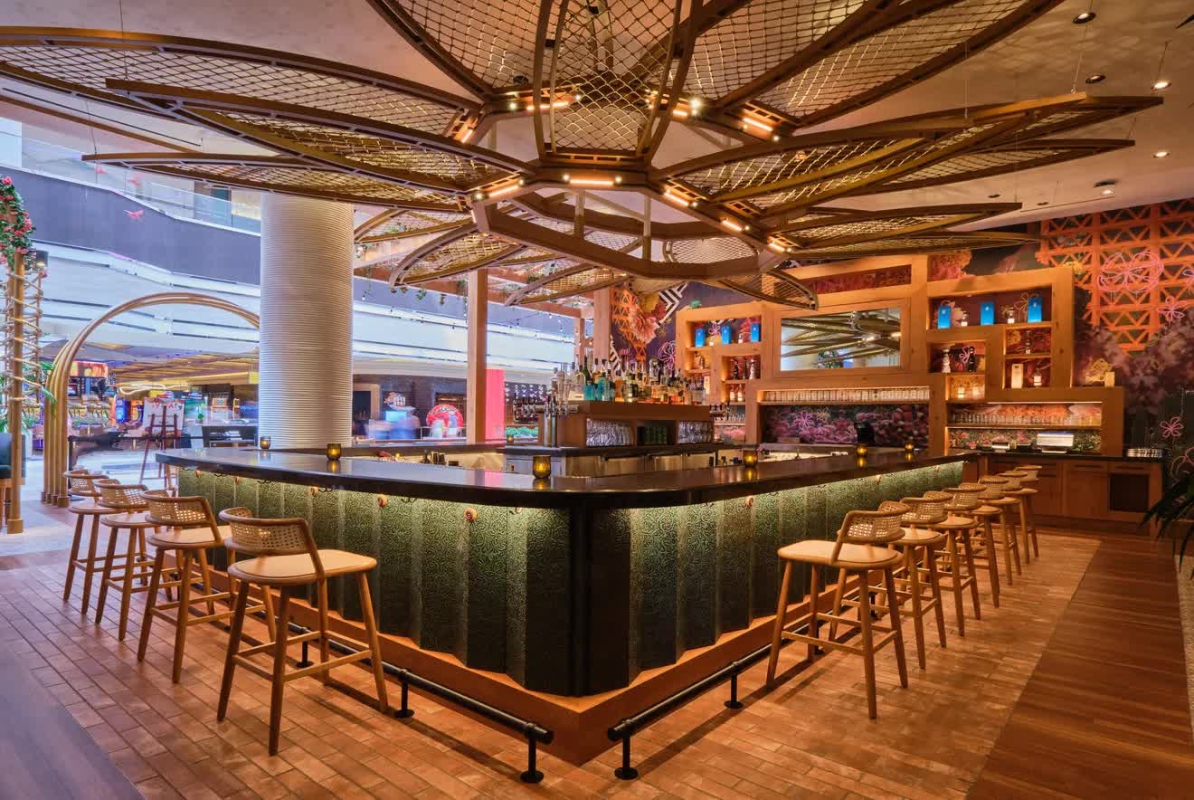 Located in Resorts World Las Vegas, the 8,000-square-foot space includes an indoor promenade patio, a feature bar, the main dining space, a 1,000-square-foot outdoor patio, and a private dining room.