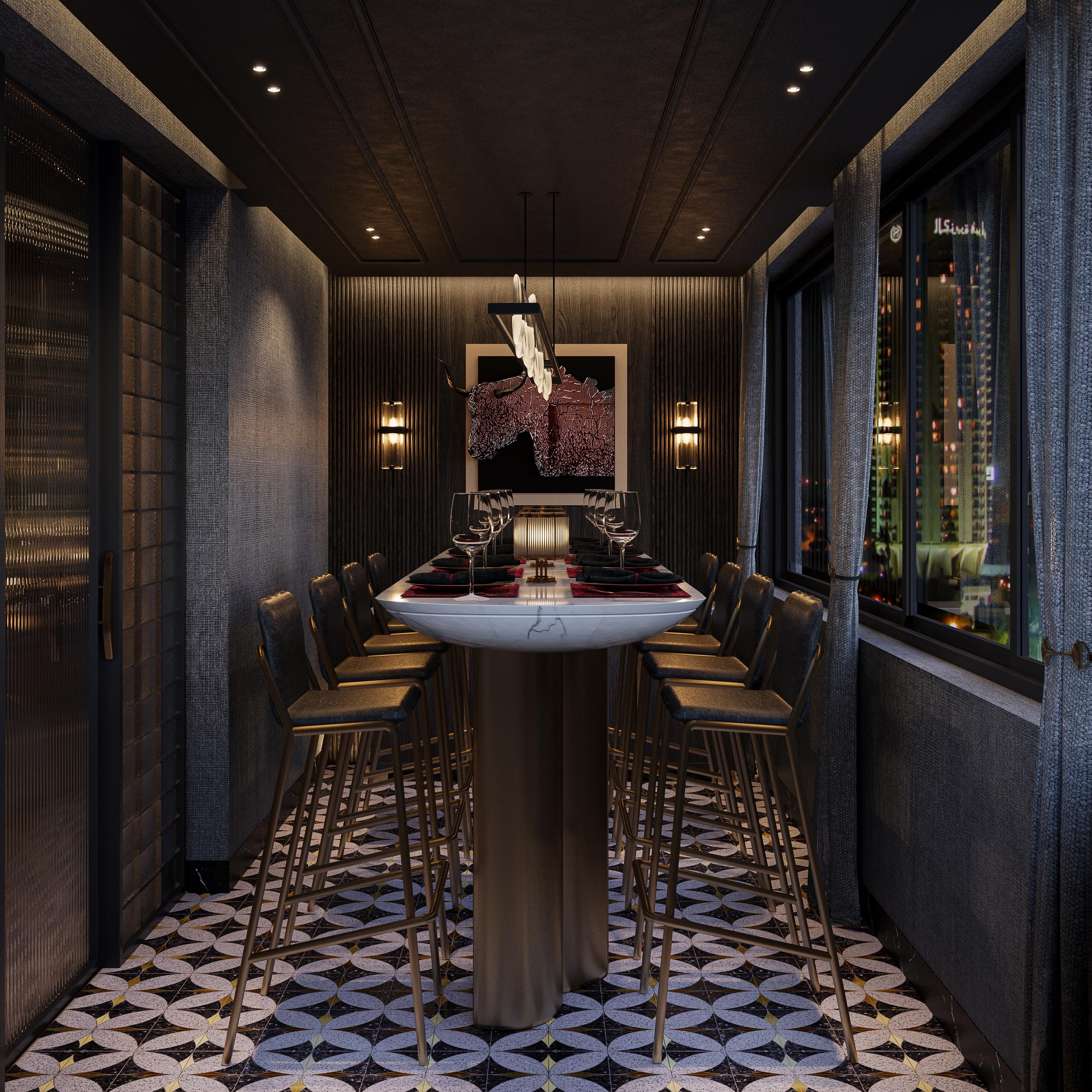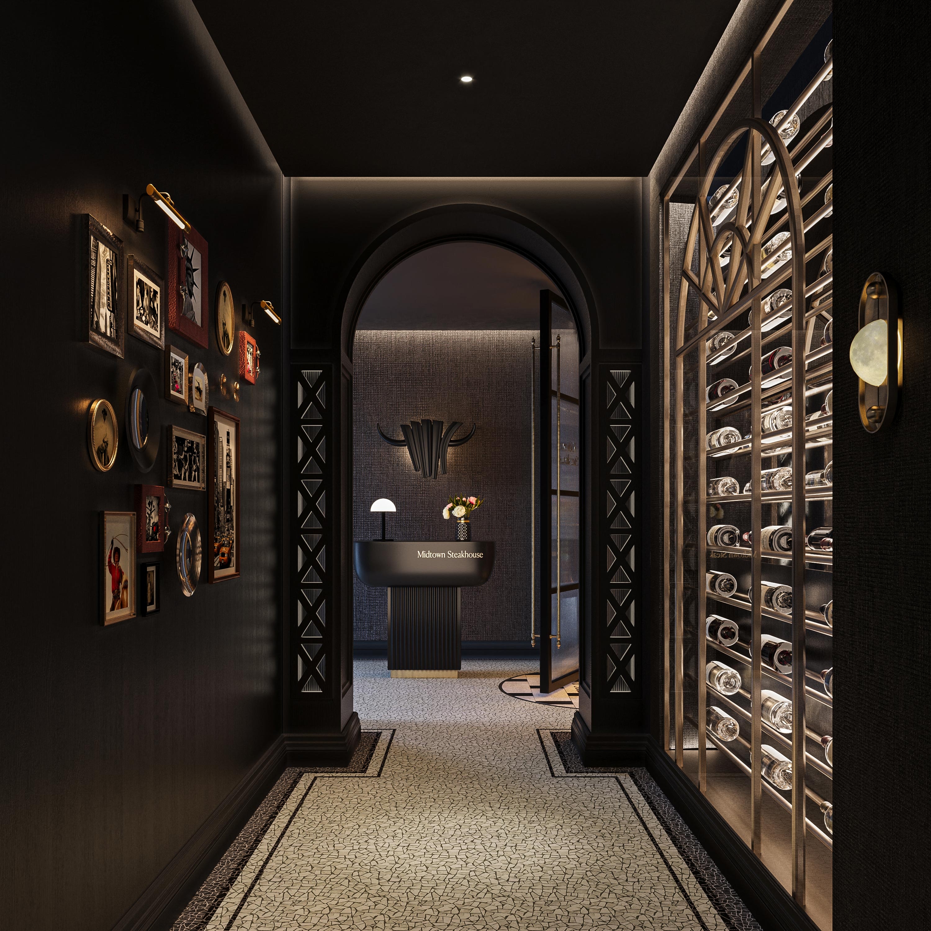 The space exudes a sense of opulence and refinement, with rich mahogany wood, supple leather furnishings, and gleaming brass accents adorning every corner. The air is filled with the aroma of sizzling steaks and the tantalizing scent of seasoned spices, promising a culinary journey that excites the senses. Every element, from the carefully curated artwork depicting iconic New York landmarks to the rustic yet elegant tableware, tells a story of craftsmanship and passion. Lighting plays a pivotal role in setting the mood, with soft, ambient illumination casting a warm glow over the space, inviting guests to linger and indulge in the moment. Yet, amidst the grandeur and sophistication, there is an unmistakable sense of warmth and hospitality that permeates every aspect of Midtown Steakhouse.