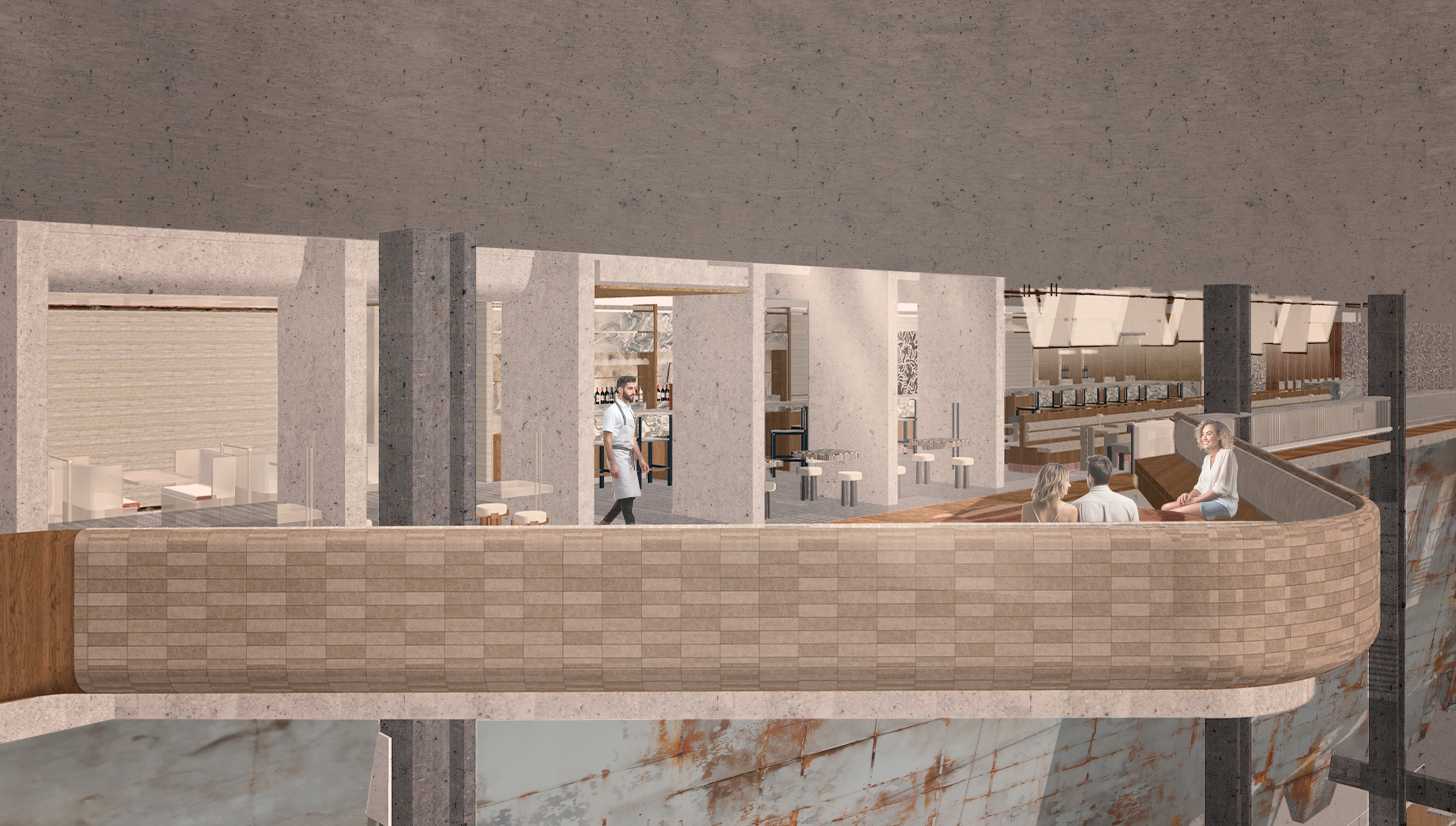 Moreover, the design seamlessly integrates functionality with aesthetic appeal by the adaptable tables that stand as testaments to the marriage of form and function. These tables, imbued with a sense of versatility, adapt to the needs of the moment, whether it be a formal meeting or a casual gathering, embodying the fluidity of human interaction within the space.