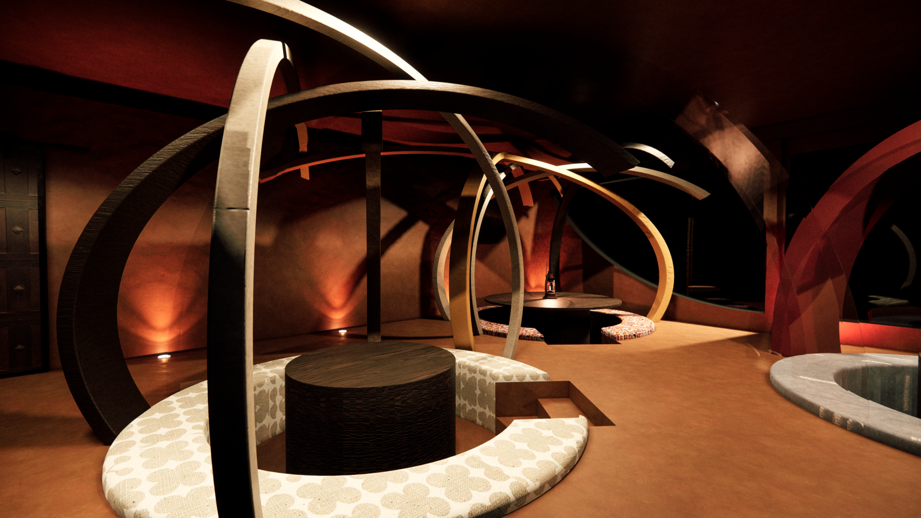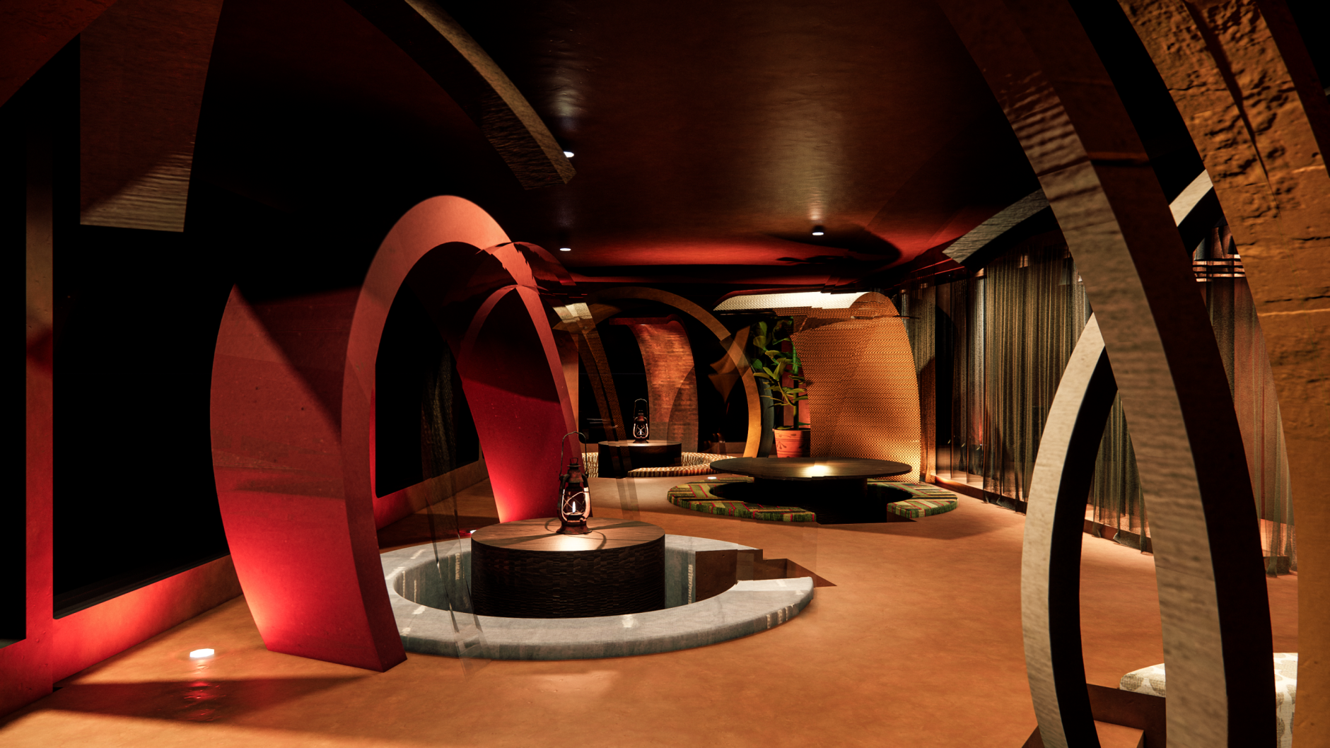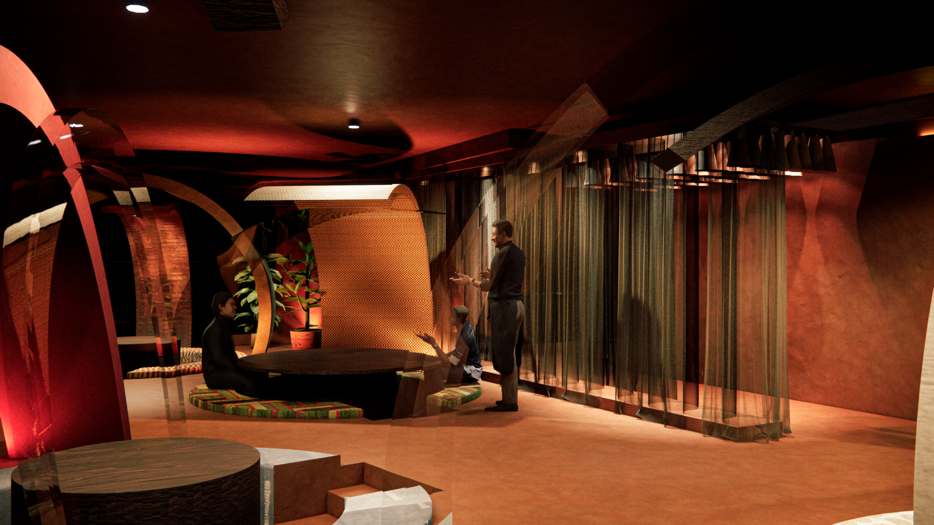 Design Concept: The idea for a restaurant called ‘Nyumbani’ is based on the popular East African dish, pilau. Pilau’s key ingredient is onions, and I used that as inspiration to create a restaurant with layers, like an onion. The communal seating areas encourage guests to share food and feel at home. The experience is authentically East African, with traditional food meant to be eaten with your hands. Come and enjoy East Africa with a twist at ‘Nyumbani’!