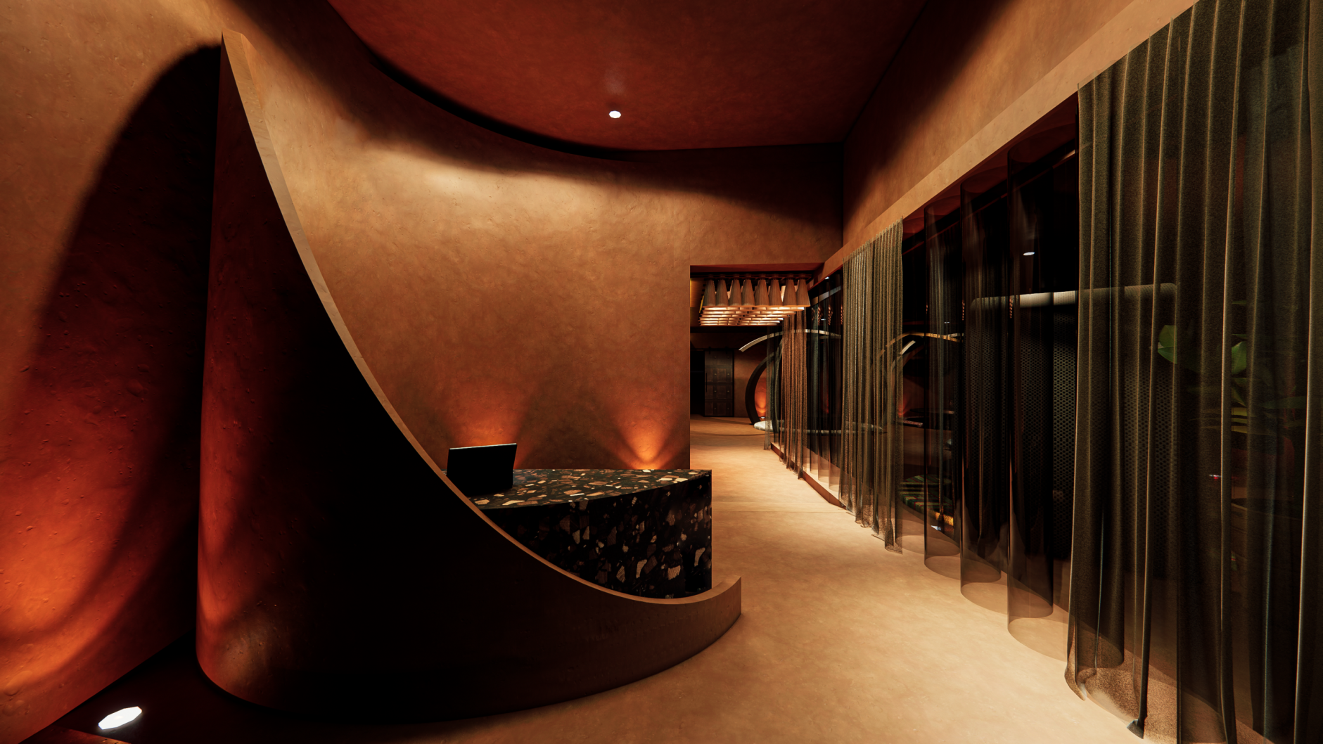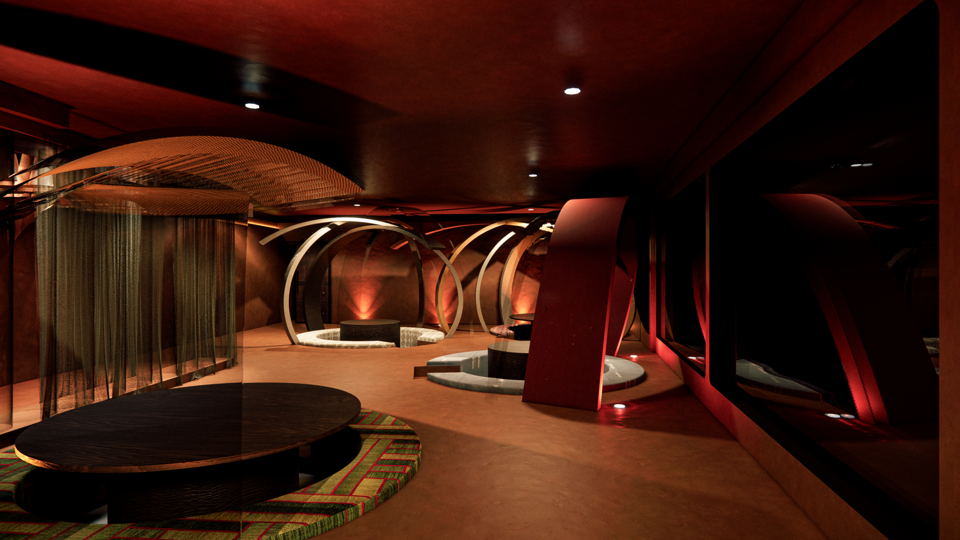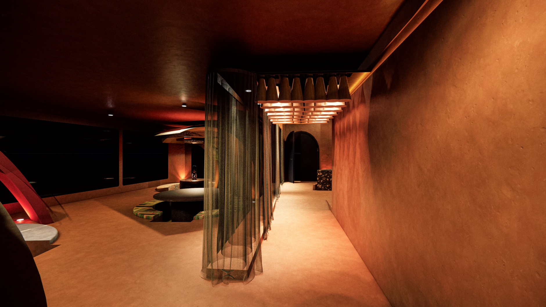 Design Concept: The idea for a restaurant called ‘Nyumbani’ is based on the popular East African dish, pilau. Pilau’s key ingredient is onions, and I used that as inspiration to create a restaurant with layers, like an onion. The communal seating areas encourage guests to share food and feel at home. The experience is authentically East African, with traditional food meant to be eaten with your hands. Come and enjoy East Africa with a twist at ‘Nyumbani’!