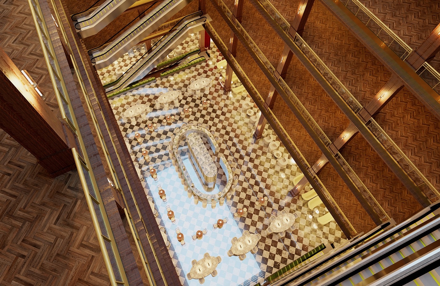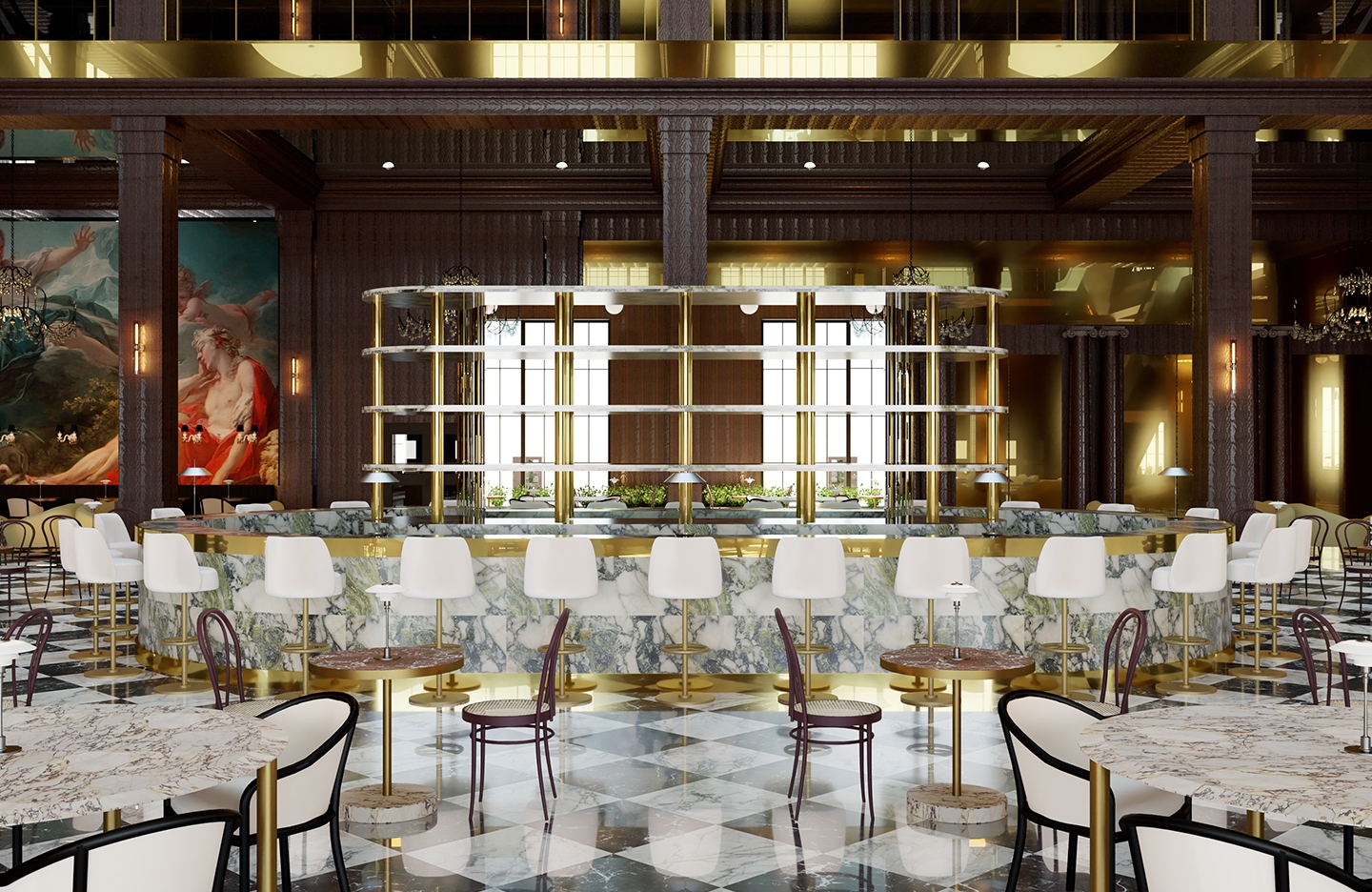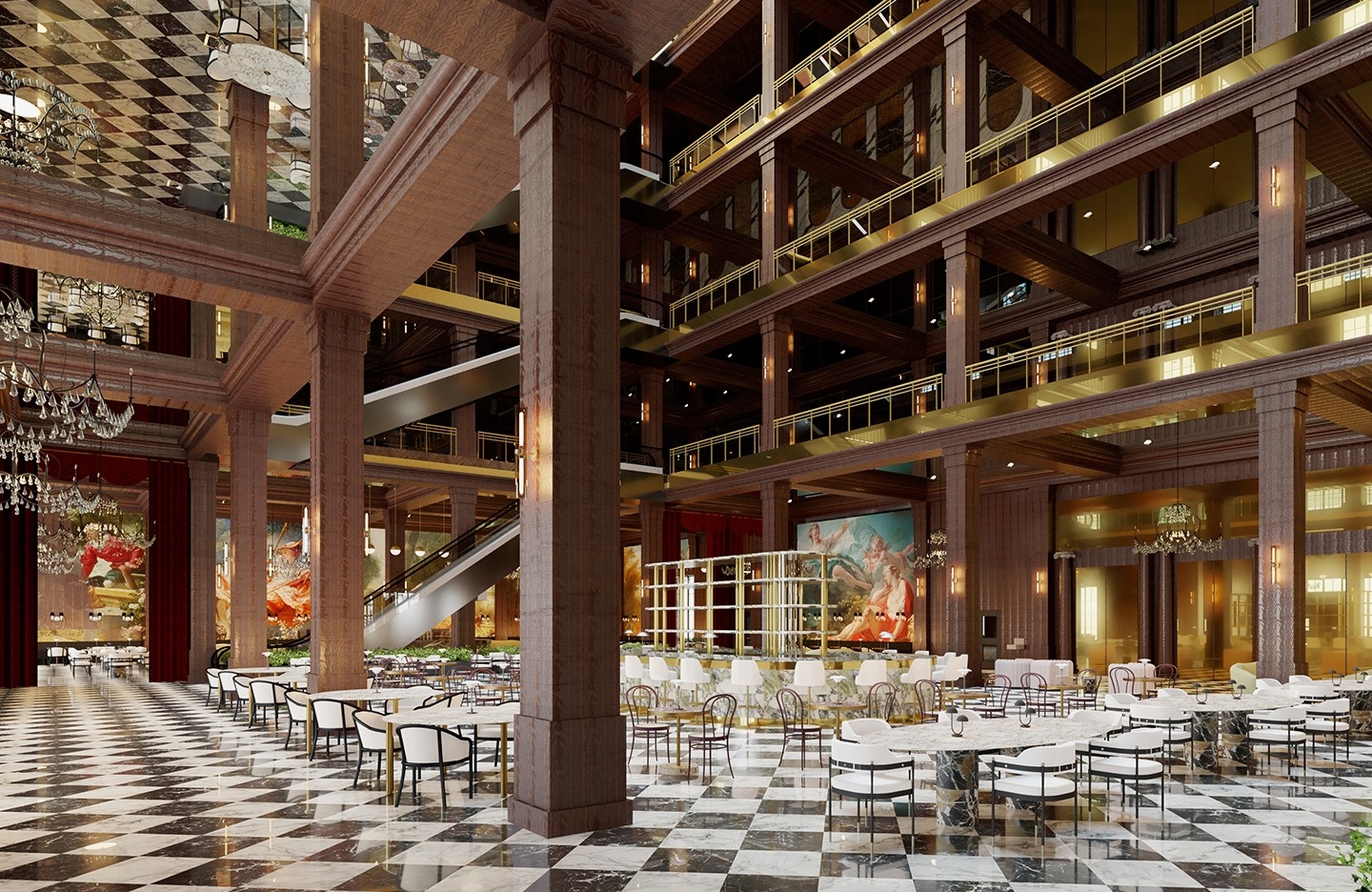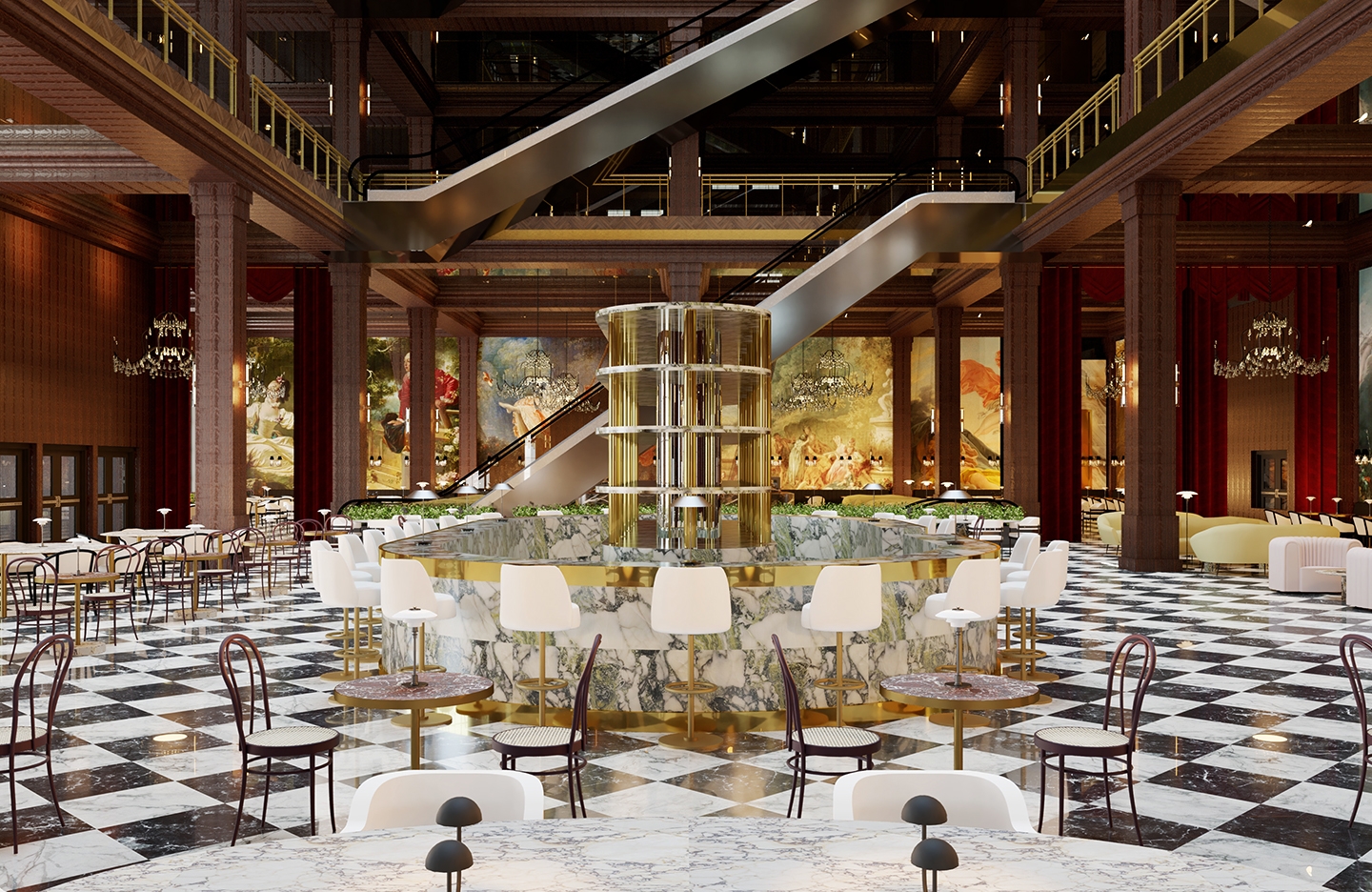 The department store industry is constantly evolving its business model. Nonetheless, the number of physical department stores is decreasing despite the luxury industry's growth. To stay relevant, department stores need to cater to the changing needs of their customers and communities, necessitating a new approach to enhance customer experience by integrating services and spaces for socialization, accommodation, relaxation, and nutrition, transforming department stores into destinations. Rich’s is rooted in a distinctive business model that draws inspiration from European precedents and integrates the quality of timelessness as an additional source of value. Adhering to the ‘Luxury for Revitalization’ framework, the concept and design revolve around history, location, meta-luxury, authenticity, identity, space, and aesthetics holistically. Guests are welcomed in the grand room, which houses a central bar and lounge seating for guests; the Magnolia Room is positioned to the west; the lower level houses a fine grocery complete with a bakery, cafe, meat and seafood sections, select items, spirits and wine, coffee bar, confectionary, oyster bar, champagne and caviar bar, and meat bar.