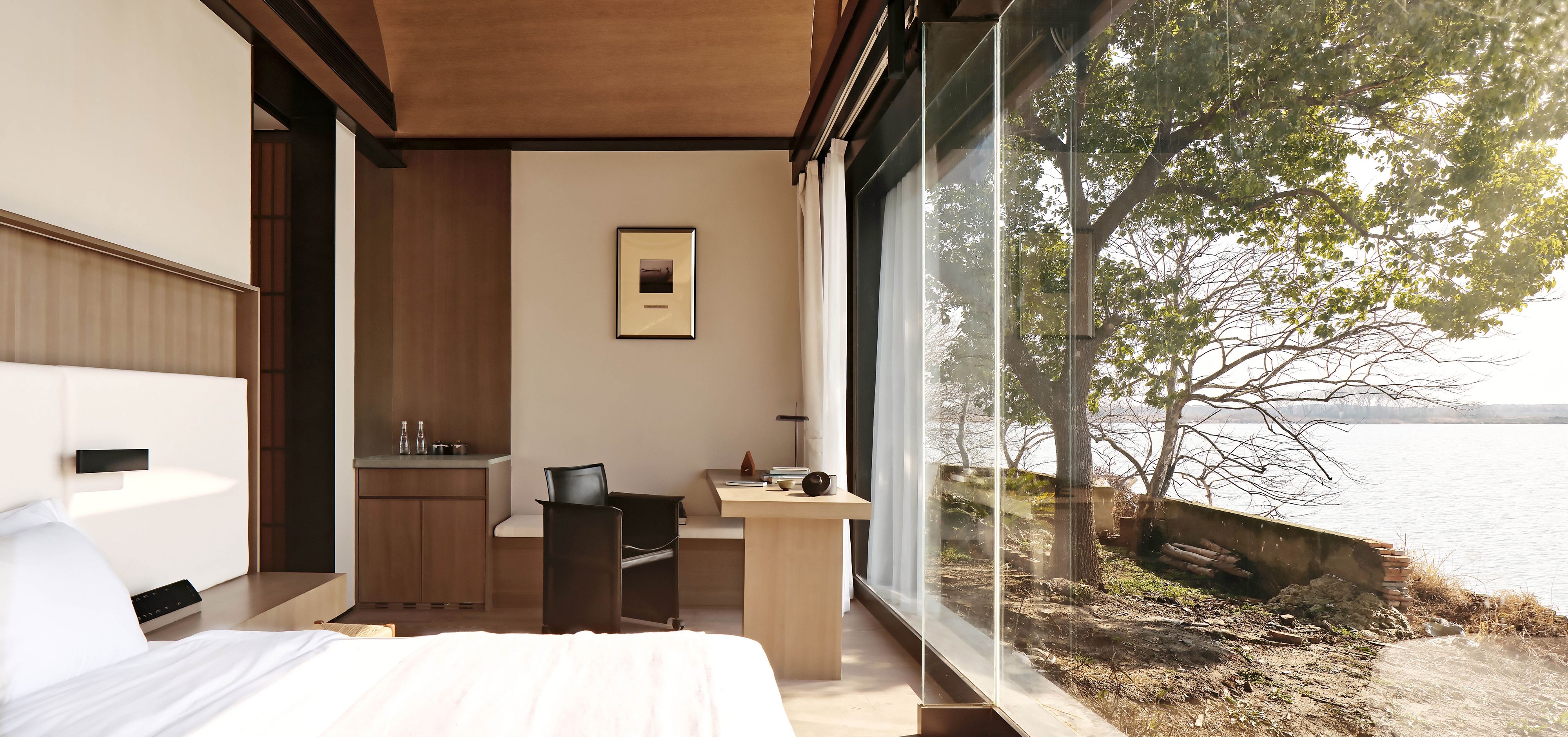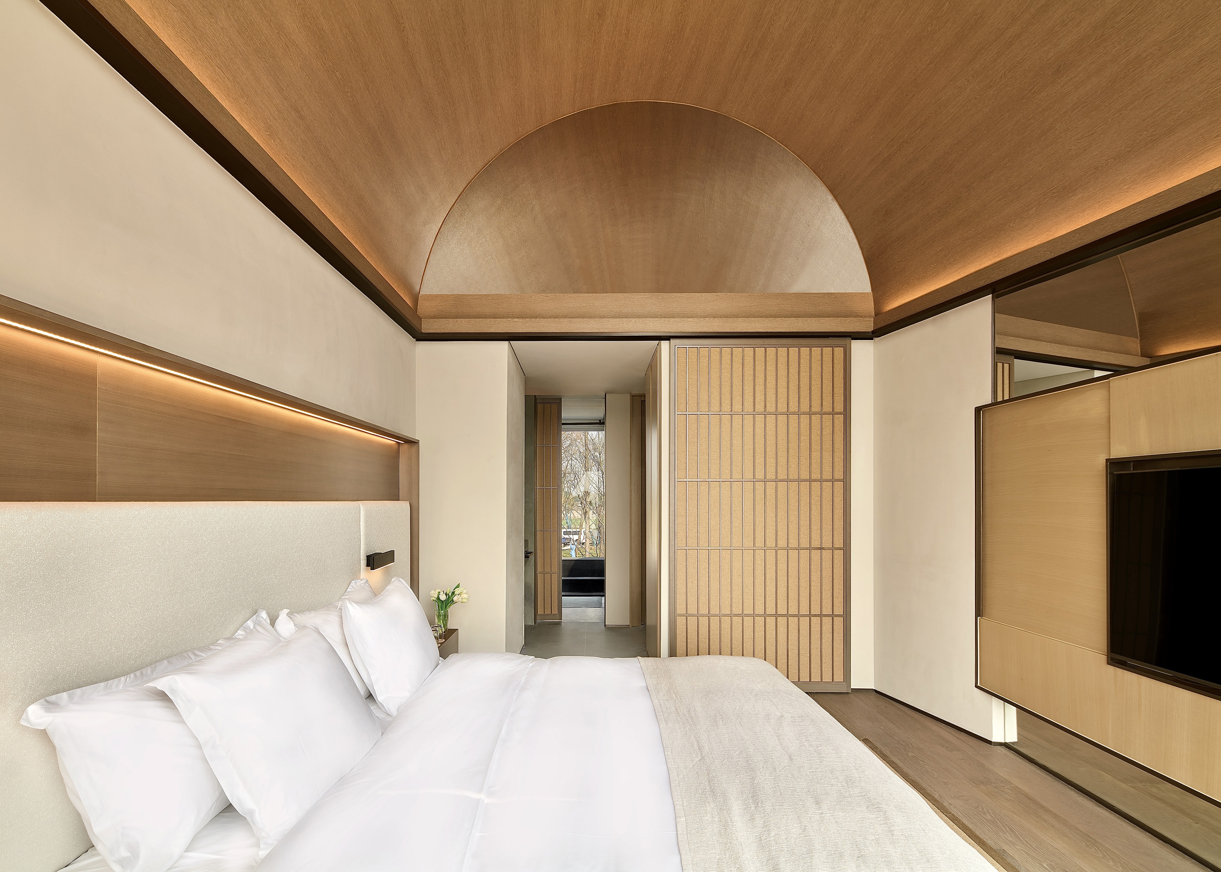 The interconnected layout of the outdoor, semi-outdoor, and indoor spaces infuses both public areas and guest rooms with a distinctive spatial rhythm, allowing residents to experience the changes in weather and the flow of scenery while enjoying their leisure time.