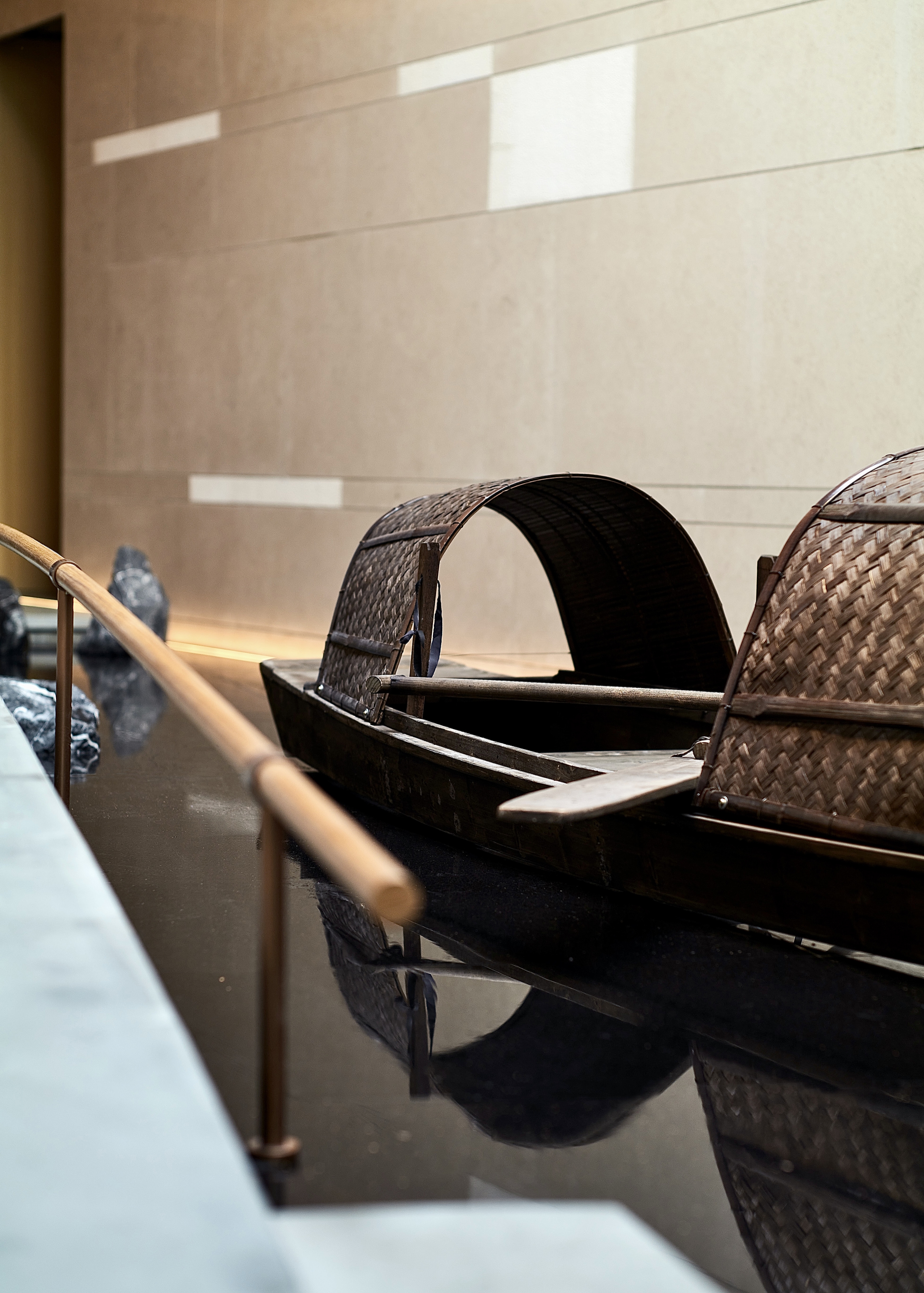 The Boatyard Hotel is located in Suzhou, China. The overall form of the building is borrowed from the canopy roof of the Wu-top boat - a semi-circular top made of bamboo. The longitudinal juxtaposition of the deformed semi-circular top brings a unique feeling to the interior space and unifies the indoor and outdoor experience.