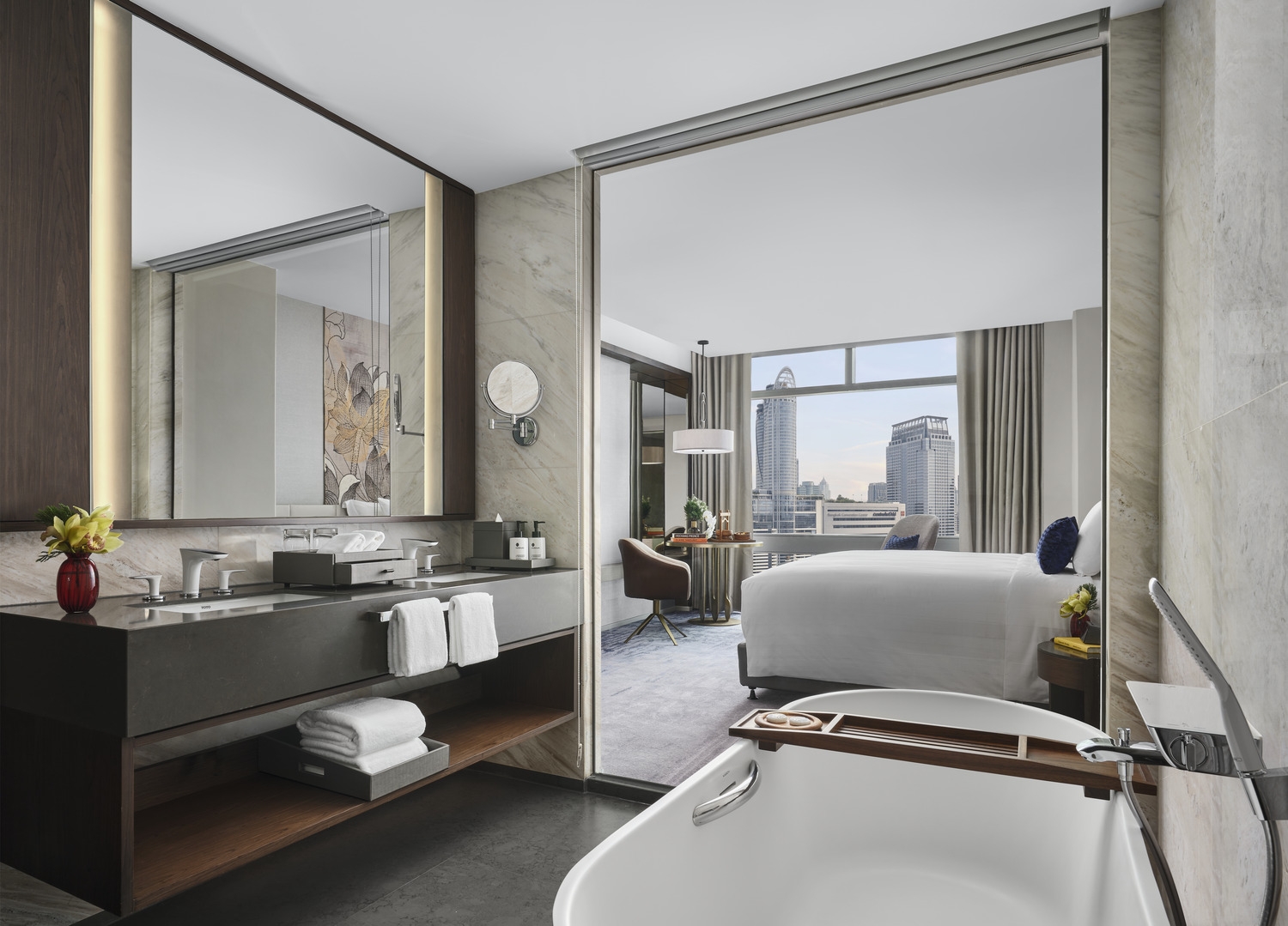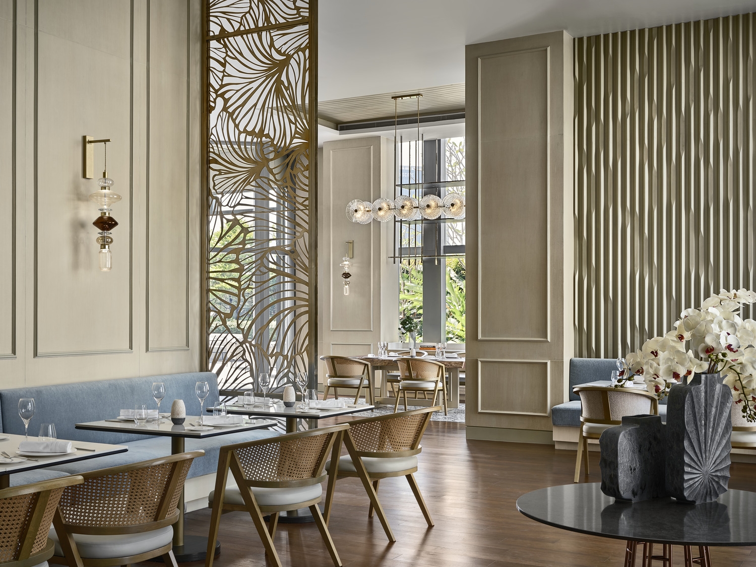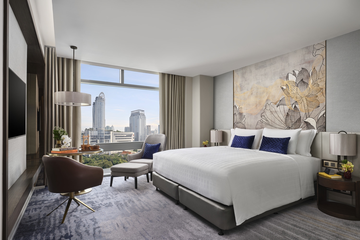 The Chatrium Grand Bangkok unfolds in the pulsating heart of Bangkok, the Pathumwan area. The design narrative is anchored in the concept of "Thai Splendid", a fusion of Thai culture and modern architectural style. The rich warm, gold tones and the handcrafted artwork wall serve as a welcoming Thai greeting to the guests. This meticulous attention to detail extends to the smallest elements, reinforcing the project's commitment to a holistic design approach. The creative use of Thai motifs in a modern style, innovative space usage, and the integration of information technology, all testify to the project's commitment to deliver an attractive and sustainable hotel service. The space planning, choice of materials, and the flow of usage in each function were developed after extensive customer. By showcasing Thai culture through details and material selection, guests are invited to fully immerse themselves in an authentic cultural experience. This project perfectly marries Thai culture and modern architecture, creating a balance between innovation, functionality, and aesthetics that is designed to deliver an unmatched guest experience.