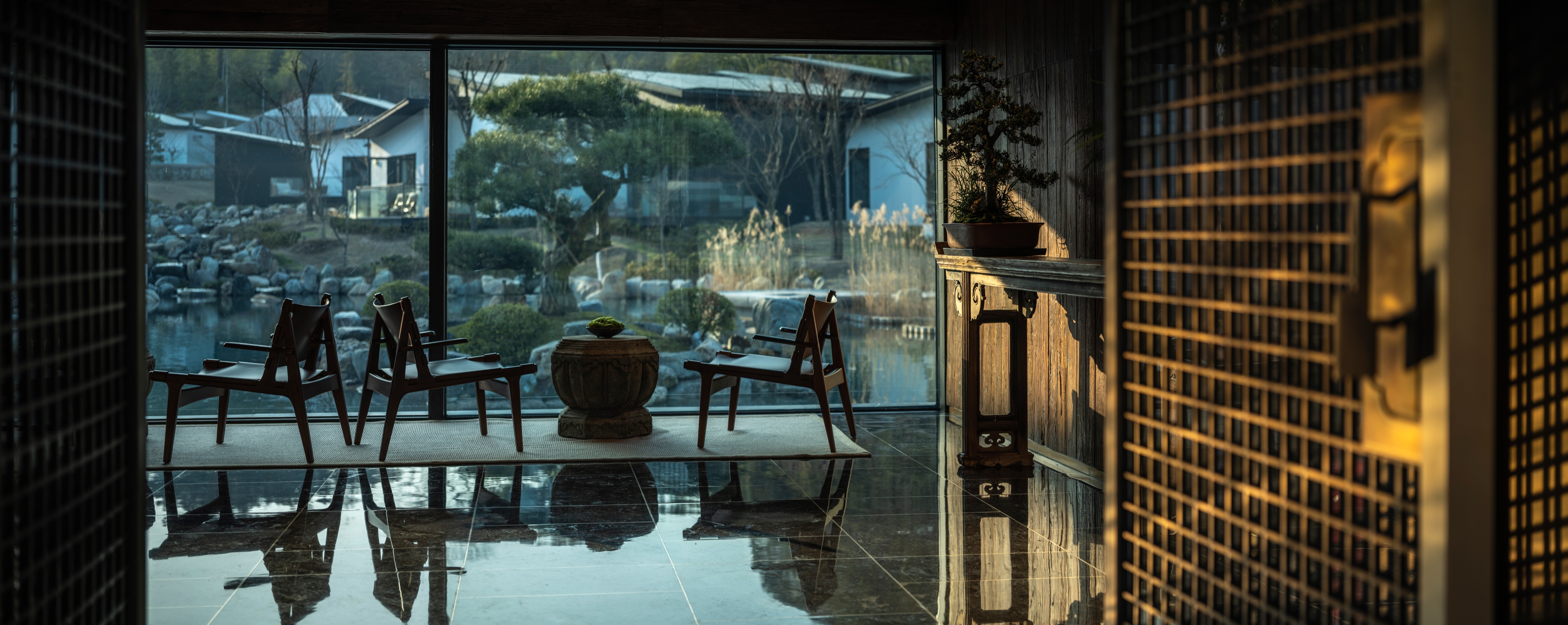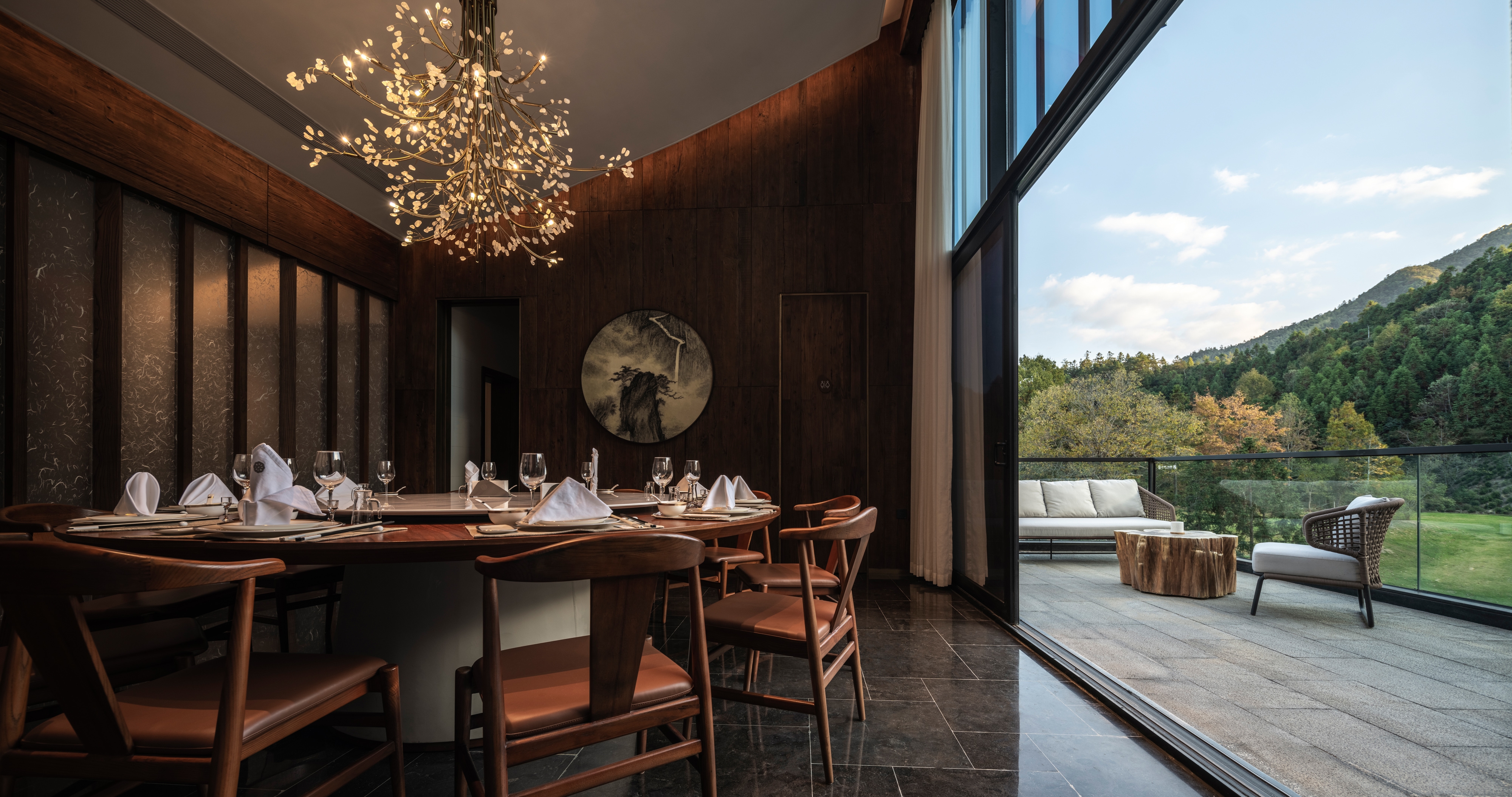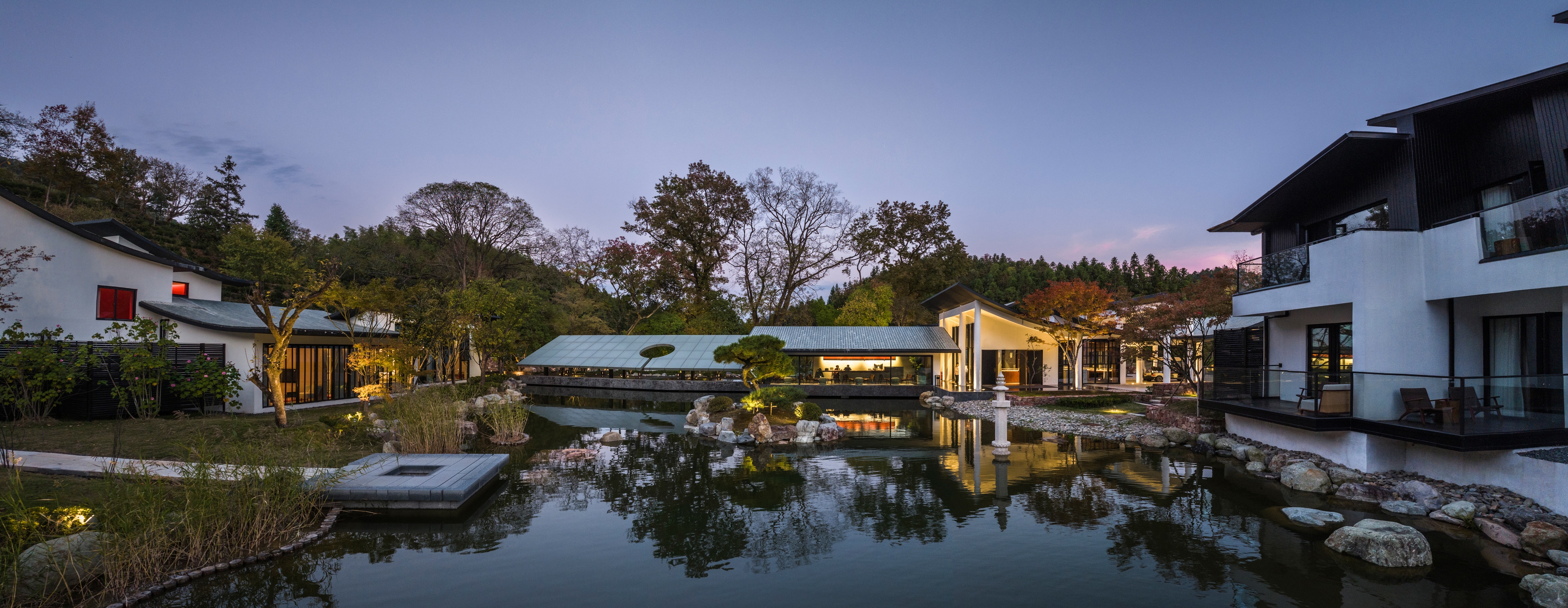 Weixi Garden is located in Yuting Town, Yi County, Huangshan City, nestled between mountain forests and streams at an altitude of 286 meters. It covers a total area of 18,500 square meters, with 37 waterside guest rooms, 17 valley suites, one wedding suite, and two courtyard suites. It offers various room types, such as tatami, king bed, and twin bed suites. The public area consists of 9 buildings, including a lobby, tea room, coffee shop, restaurant, bar, art gallery, SPA, fitness center, and multi- function hall.