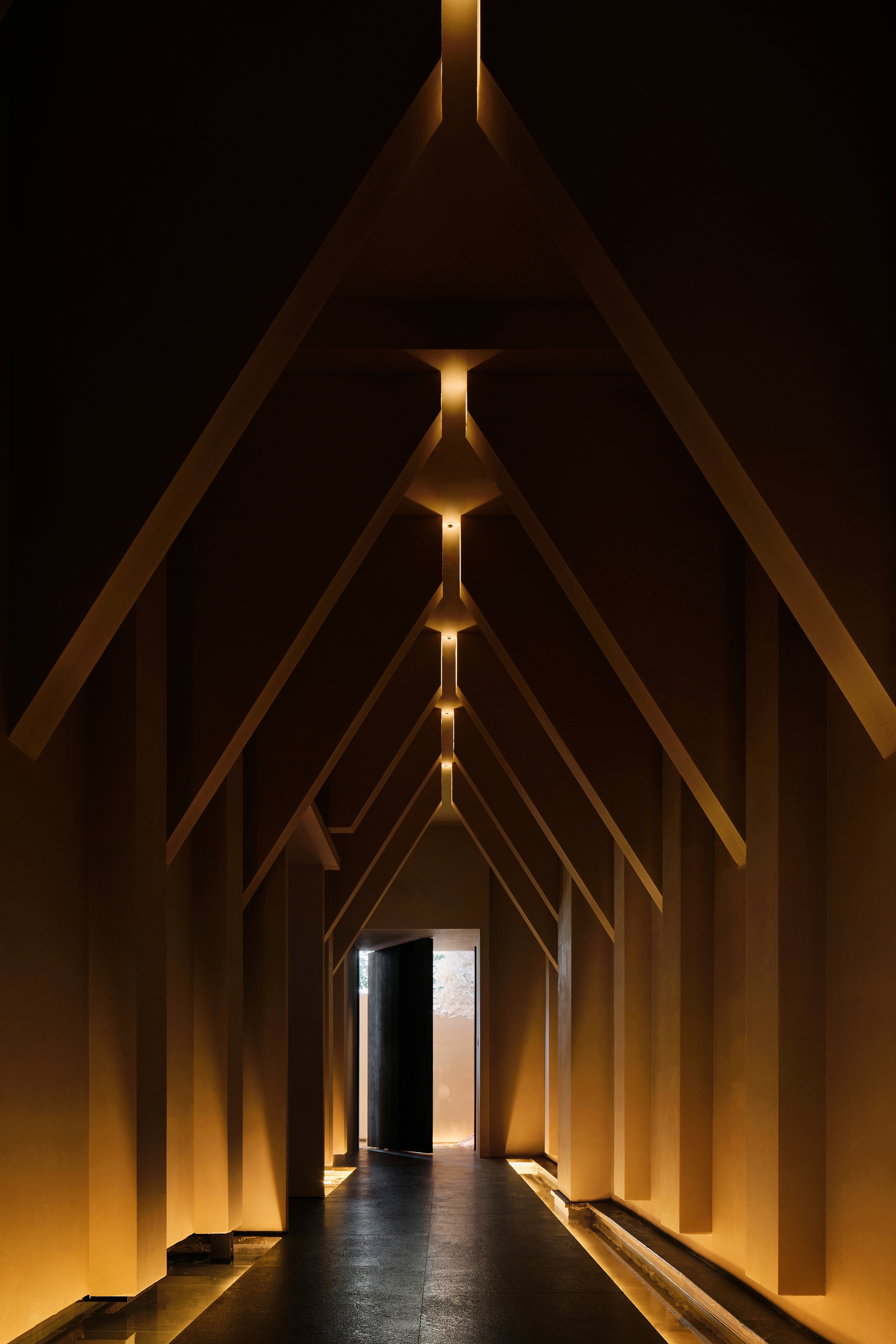 Inspired by the La Chapelle de Ronchamp by Le Corbusier, HBbeauty radiates its tension and rhythm via architectural deconstruction, light and shadow shaping, spatial materials, display and layout. The unique architectural form, with its irregular walls and hole cutting, breaks with the conventional flat and linear blocks. Scattered beams of light fall into the building, gradually reflecting the church-like interior. As people enter, the deliberately low ceiling wraps them in a sense of novelty, order and privacy.