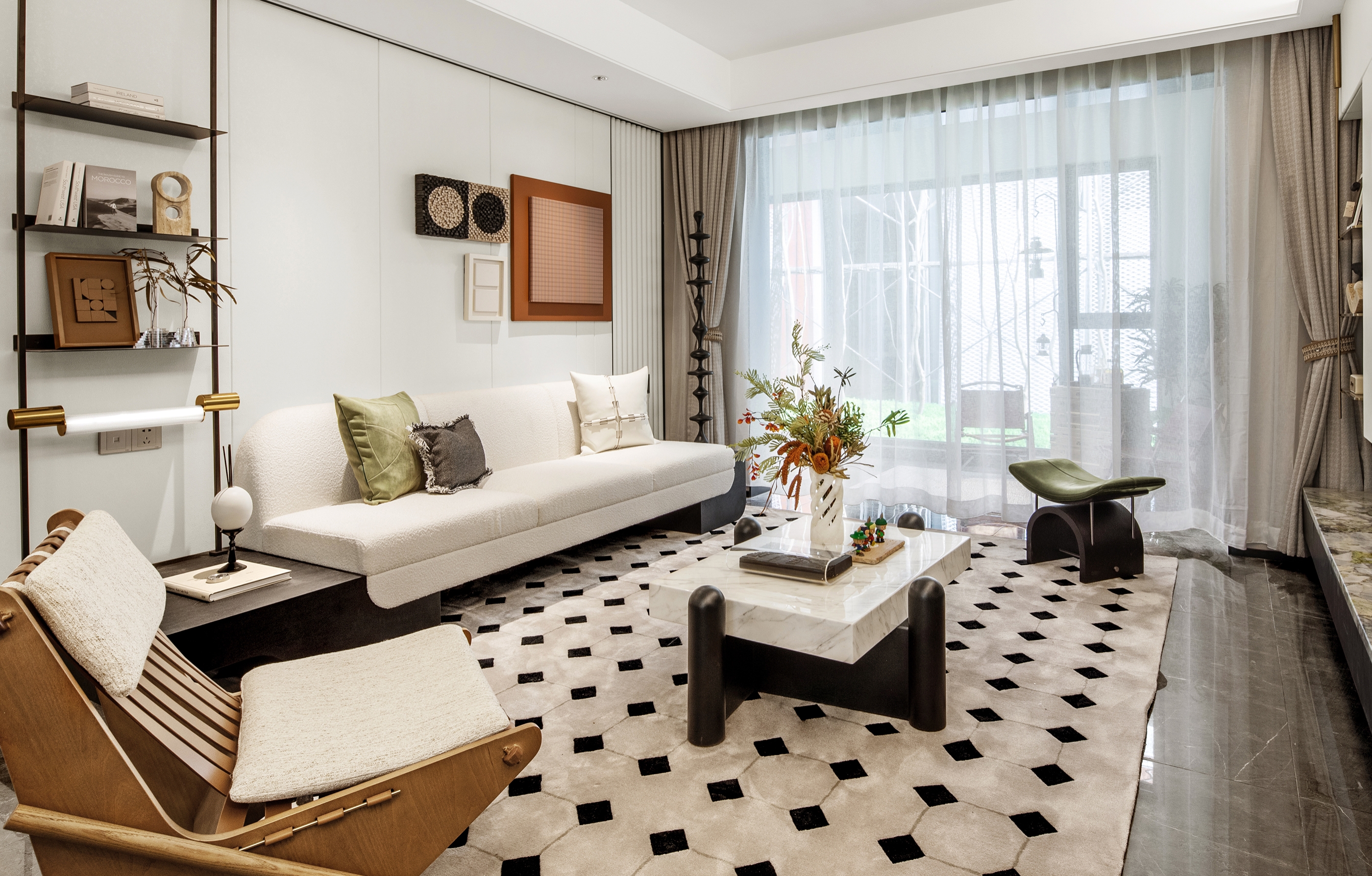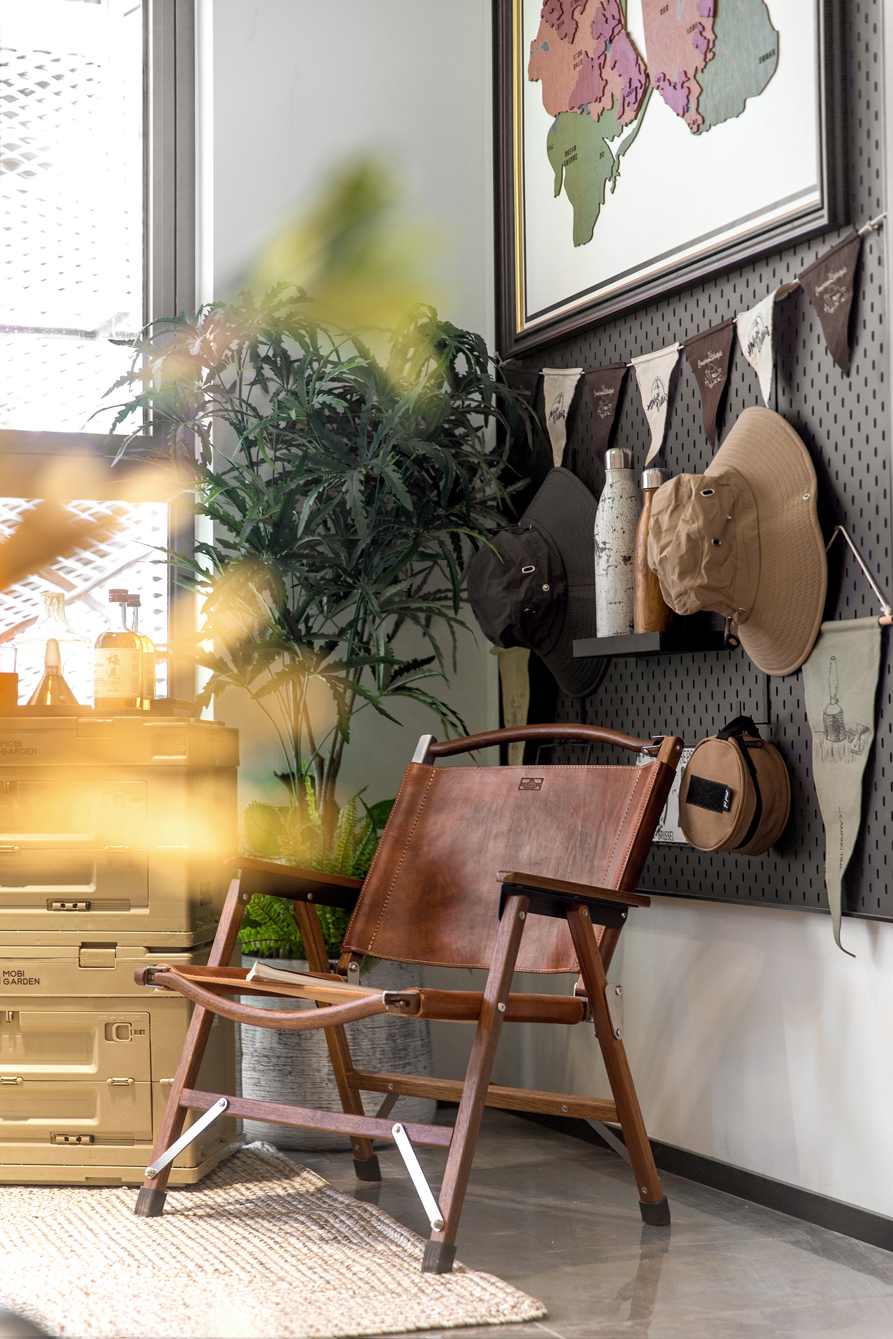 The interior conveys a light retro Southeast Asian style. The spatial layer is enriched by the contrast in item scale and the mix of natural materials, while the visual beauty is enhanced by geometric artistic expression. Combined, they give off a cosy vibe.