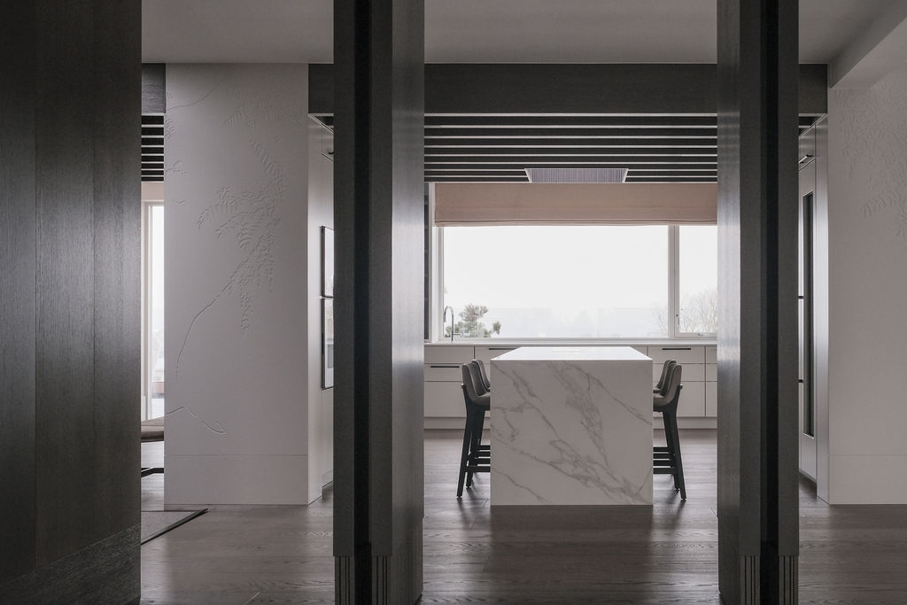 My solution was anchored in classical proportions but without becoming a classical interior. I aimed to promote mobility and openness. Walls were removed to open up to the beautiful view, but elements like room dividers and pivot doors were also added to create clearer zones.