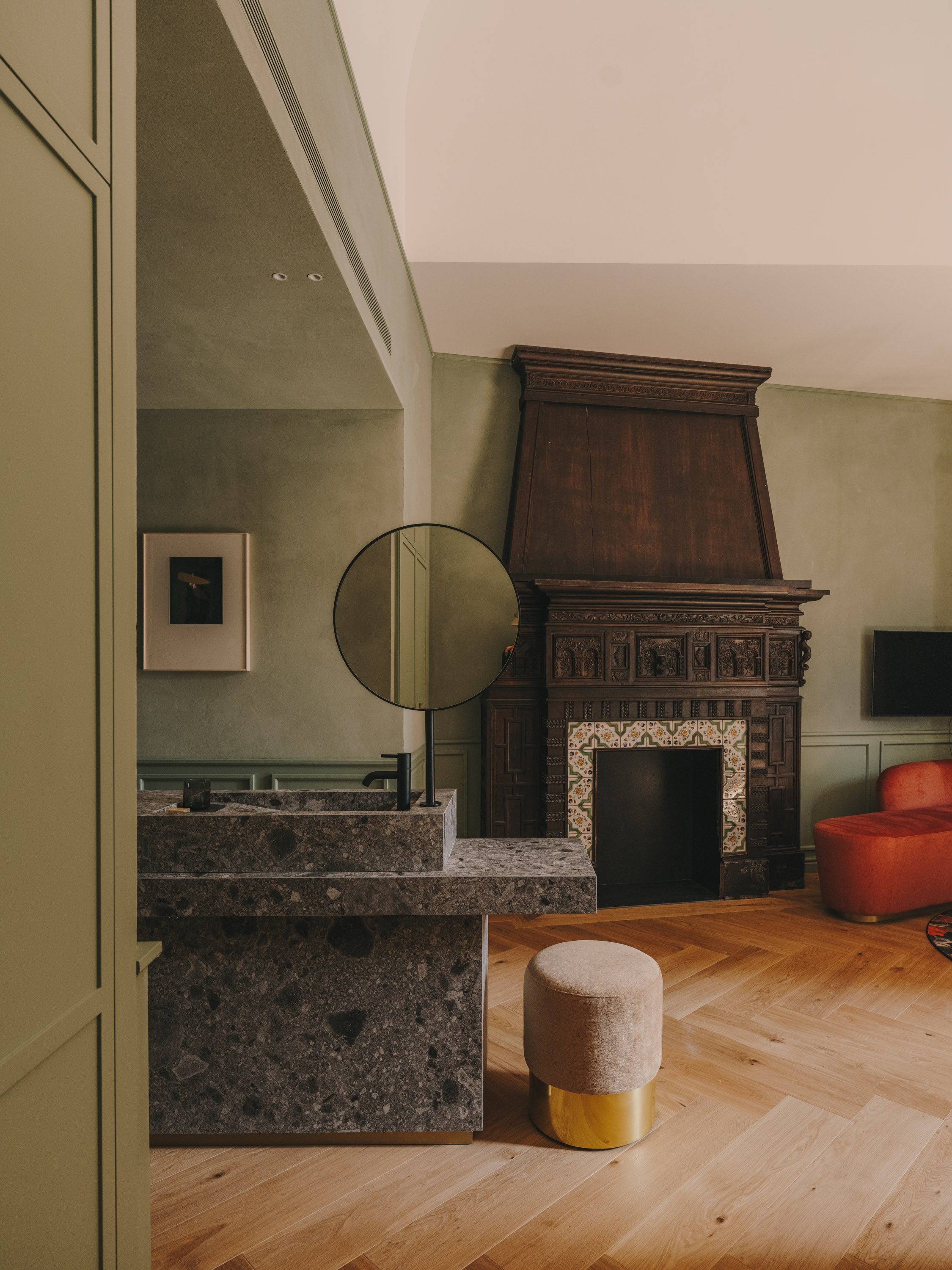 To enliven this historical backdrop, vibrant and carefree colors, eclectic furniture, and contemporary art have been introduced. This infusion creates a captivating contrast with the ancient architecture, offering visitors a dynamic and fresh visual experience.