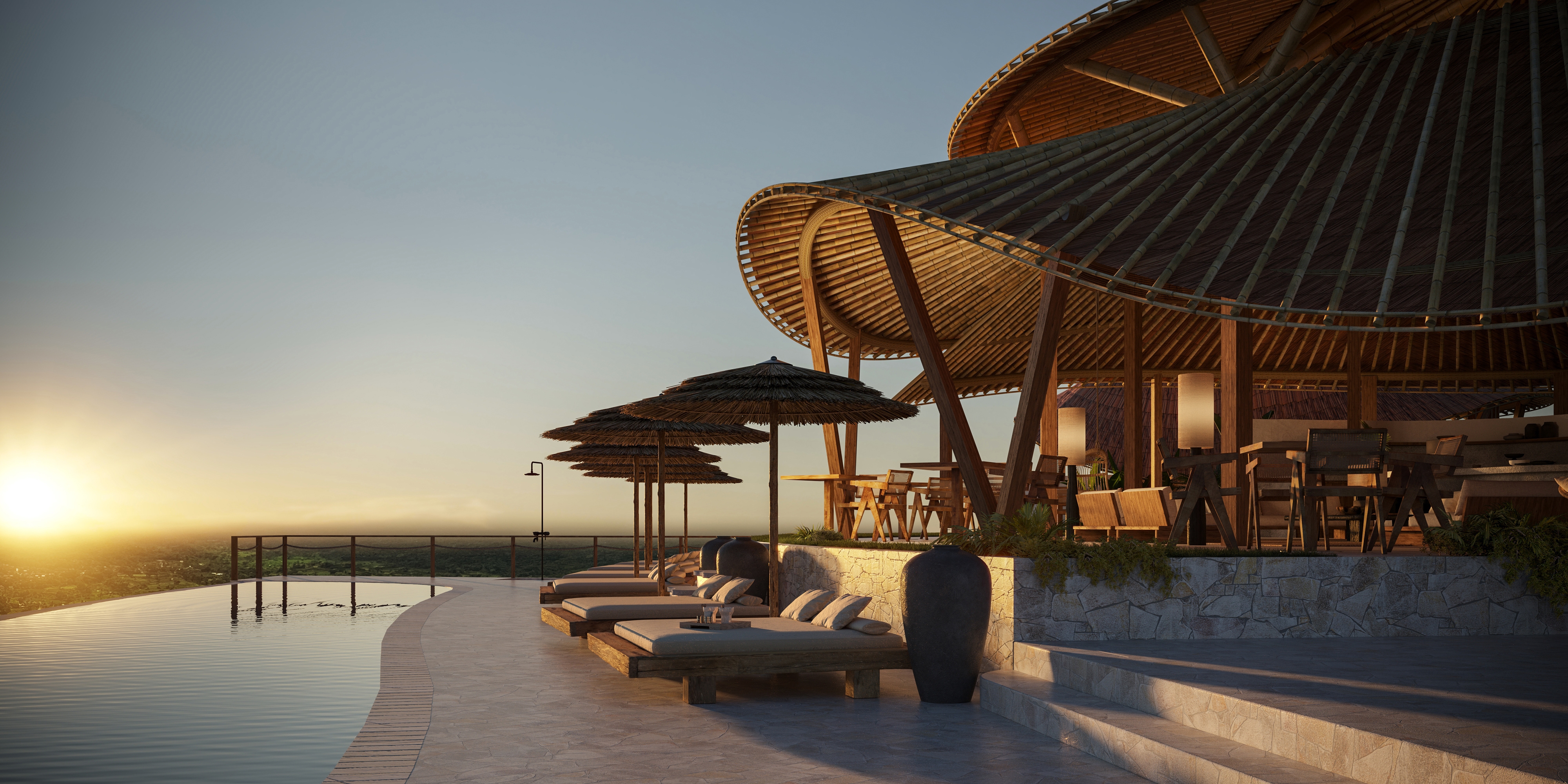 Adab Boutique Hotel is nestled in the captivating Sidemen area of Bali. The development comprises 11 villas (3 types, varying in size from 50 to 35 square meters), a lounge restaurant and bar, an infinity pool deck, and a treehouse spa. Perched atop a mountain, this unique establishment seamlessly blends traditional bamboo and masonry architecture, delivering an enchanting experience to its guests. The hotel's most captivating feature is its unobstructed view of the majestic Mount Agung.