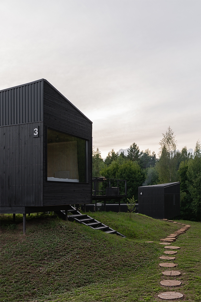 The project Nomad houses is a part of the ecosystem of modular houses BY HOME and is an eco-hotel located in the main tourist center of Belarus - Braslav Lakes. A complex of 10 tiny-sized houses with modern architecture and all the necessary infrastructure is designed for recreation from the bustle of the city surrounded by unspoiled nature of the national park. The concept of Nomad houses was formed out of the need to develop domestic tourism. Nowadays when travelling around the world is becoming increasingly difficult,we, as architects, see our function as opening up interesting locations and creating a tourist infrastructure within the country. It was important for us to collect and convey the beauty of lakes, protected forests, a simple but aesthetic way of life. That is why we have located our lodges in the historic site - in the national park "Braslav Lakes" near the century-old coniferous forest with wild animals, on the shore of a clear lake, which complements the aesthetics of our architecture a lot. We have tried to collect and convey to our guests the values of the Braslav region and the minimalistic way of life, which we love so much.