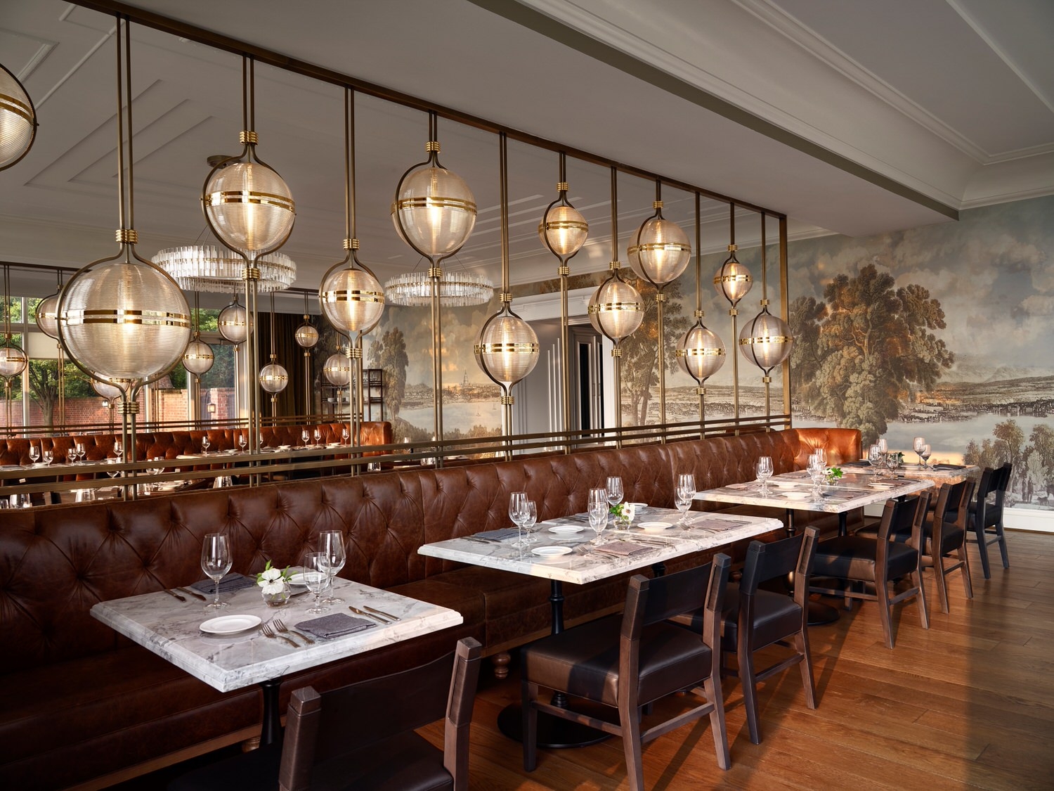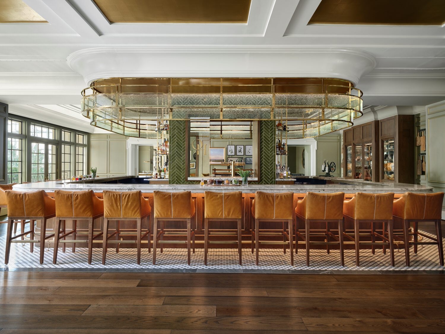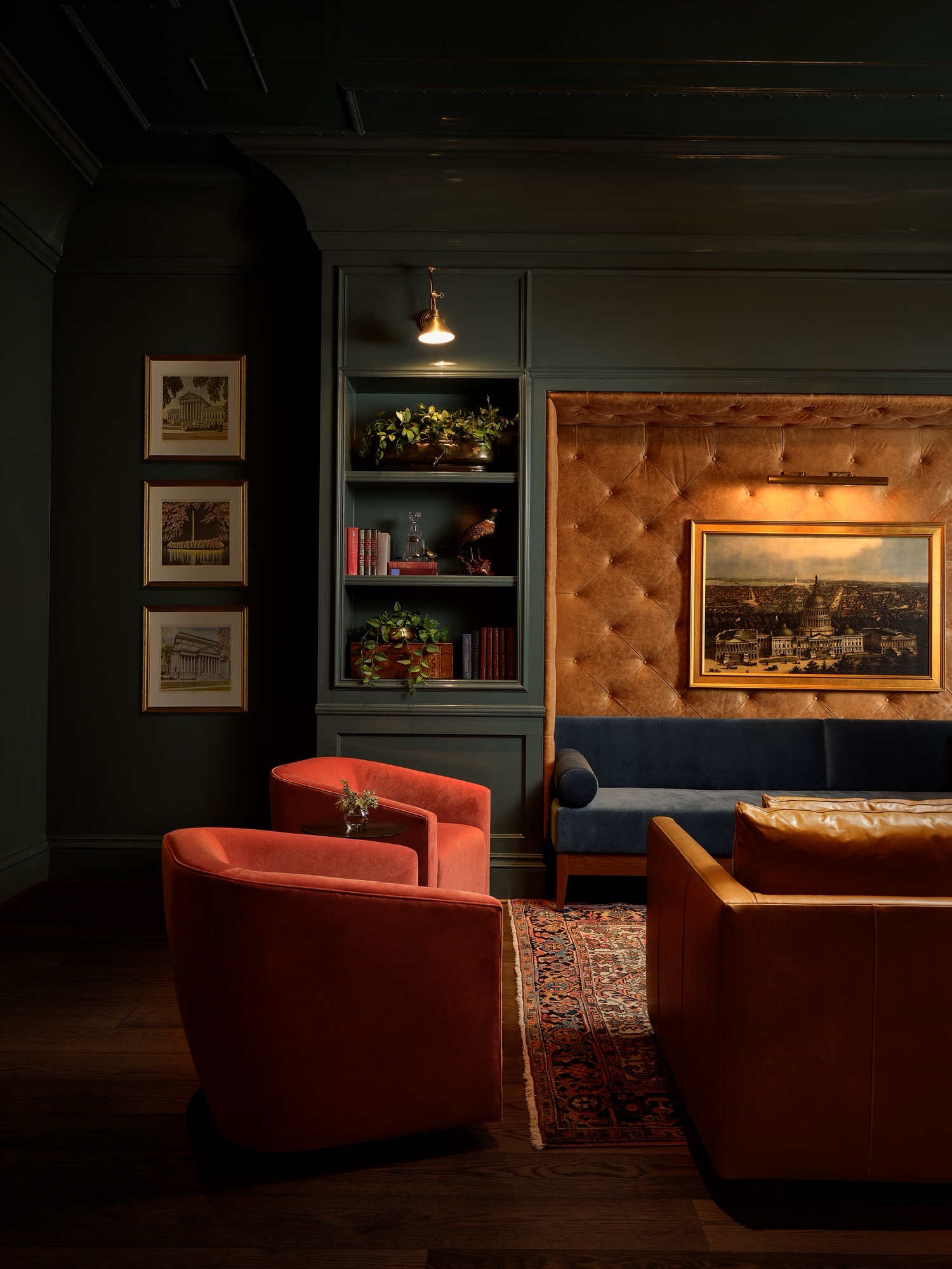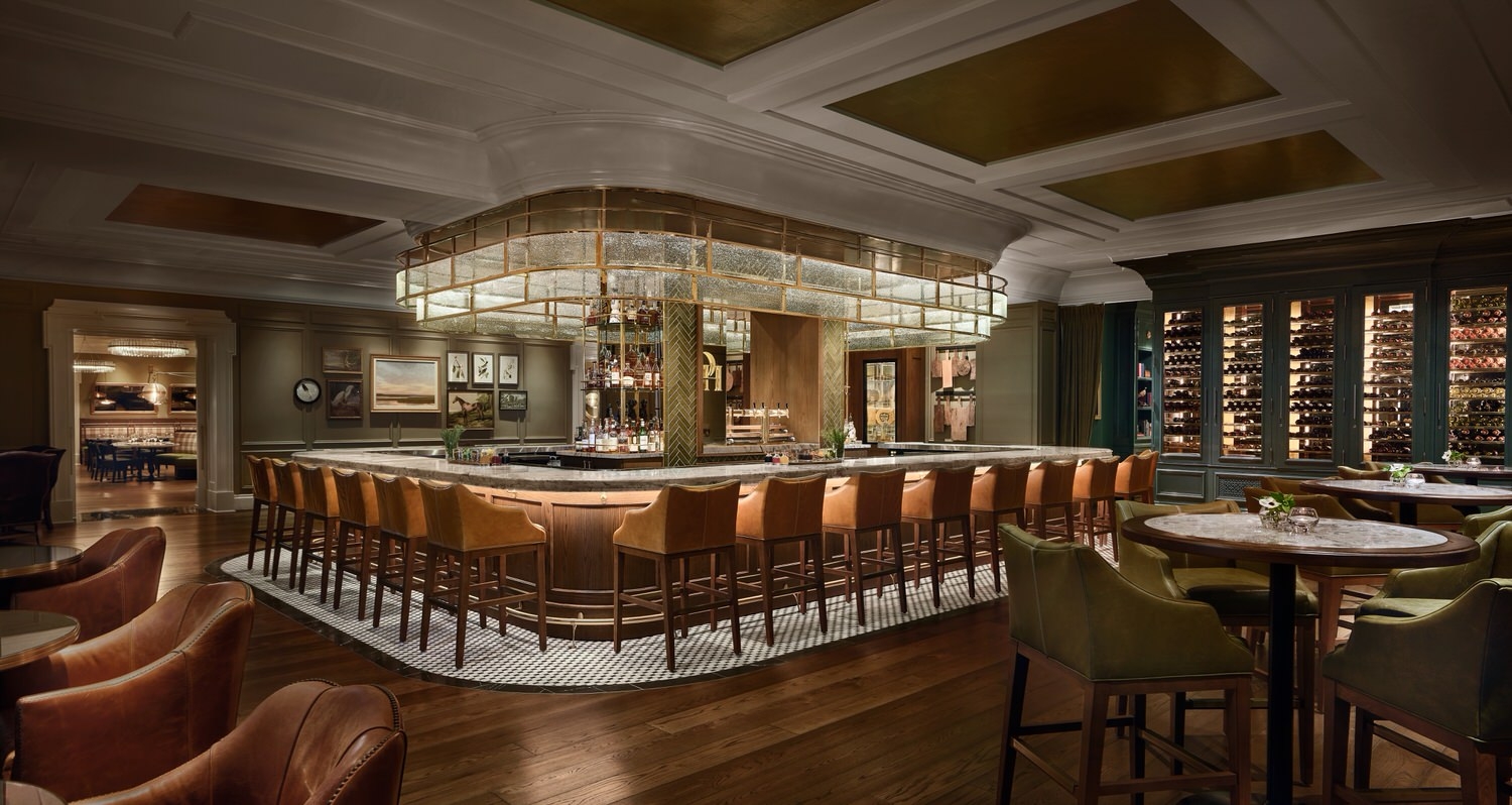 The overall design drew from the rich history of Maryland and other cities along the Potomac River in the greater DC area. We wanted to blur the lines between modern and traditional elements in a unique way throughout the space. Each area from the bar lounge to the dining area has its own character and story but carries the same concept throughout. We wanted the design to give guests a different experience each time they visited. We achieved this through cohesive but varied color palettes for each area, different types of seating groups and dining experiences. The enlarged bar creates a destination for guests to have a drink with friends or alone while the bar lounge creates a more causal and quiet dining experience by the entrance. The bar design itself lends itself for even more varied experiences by having the lively bar area with TVs to watch the game with other guests or the smaller adjacent room for groups to rent out for a more private setting. The philosophy behind our design was to create a space where guests would start their night and hopefully come back later to end it.