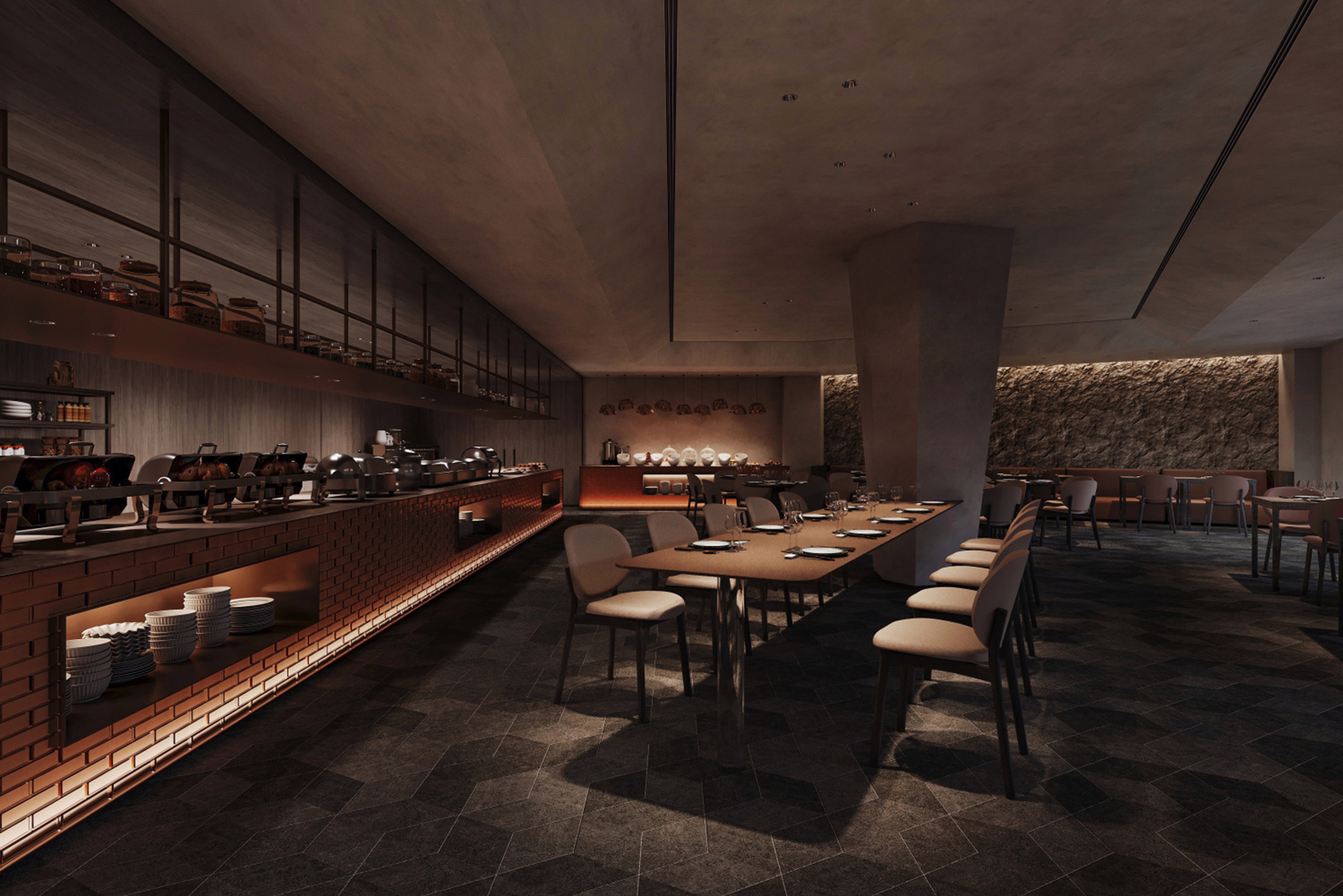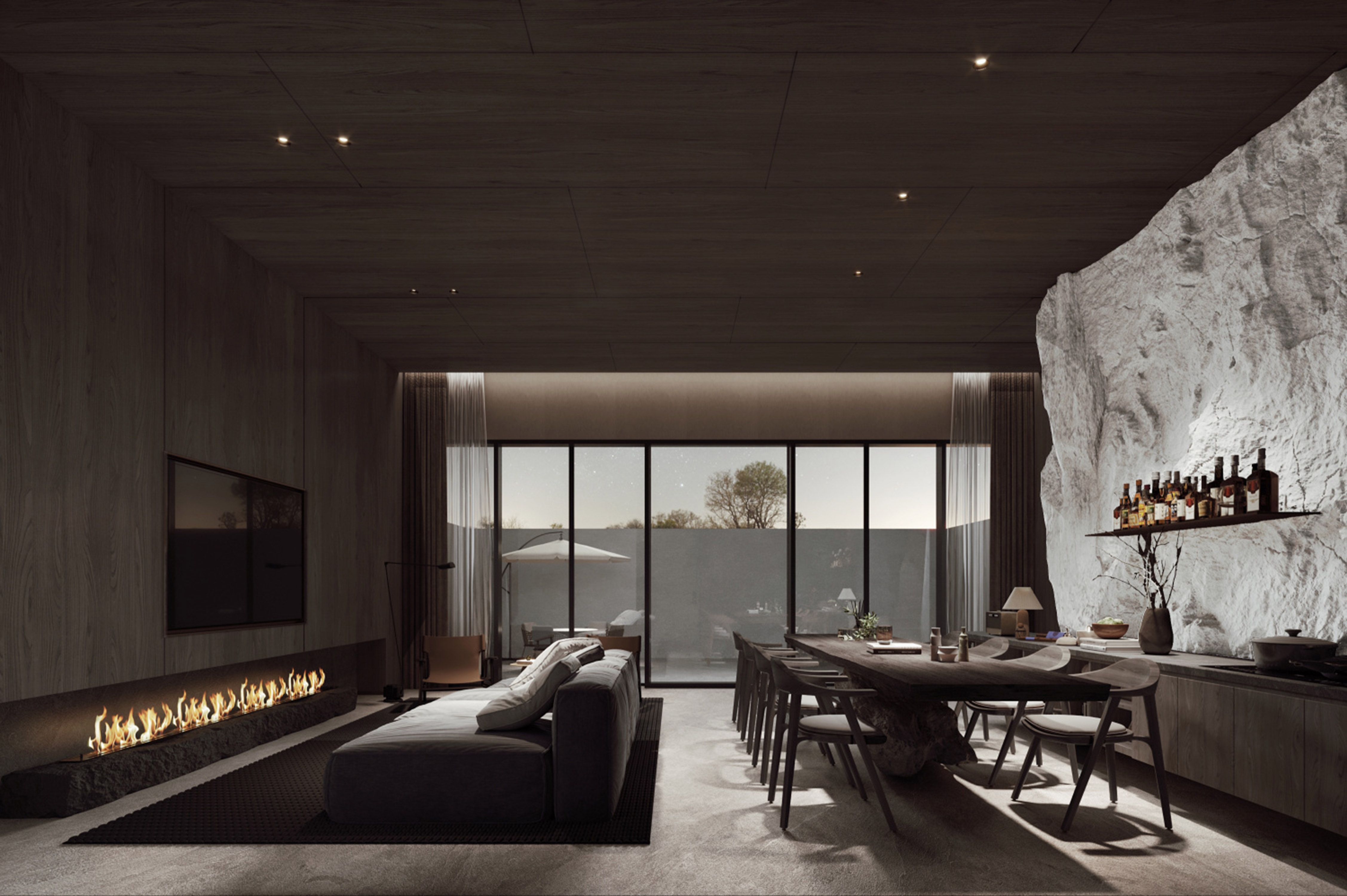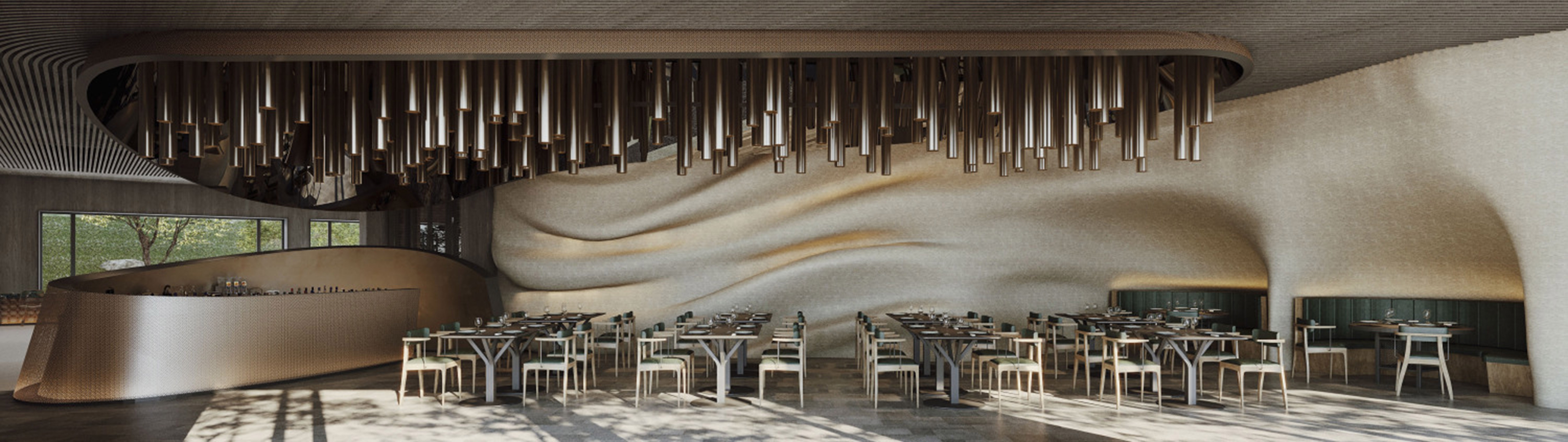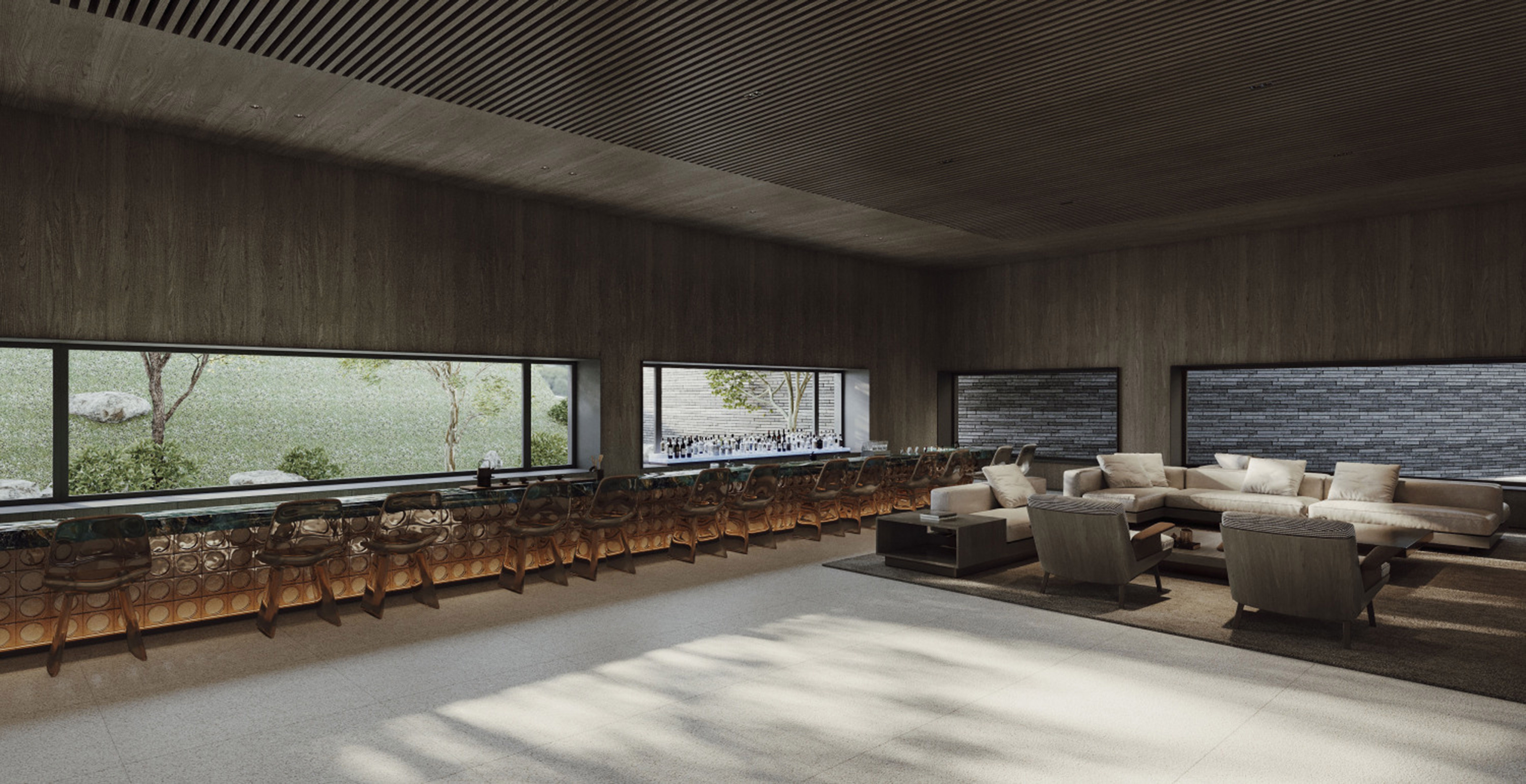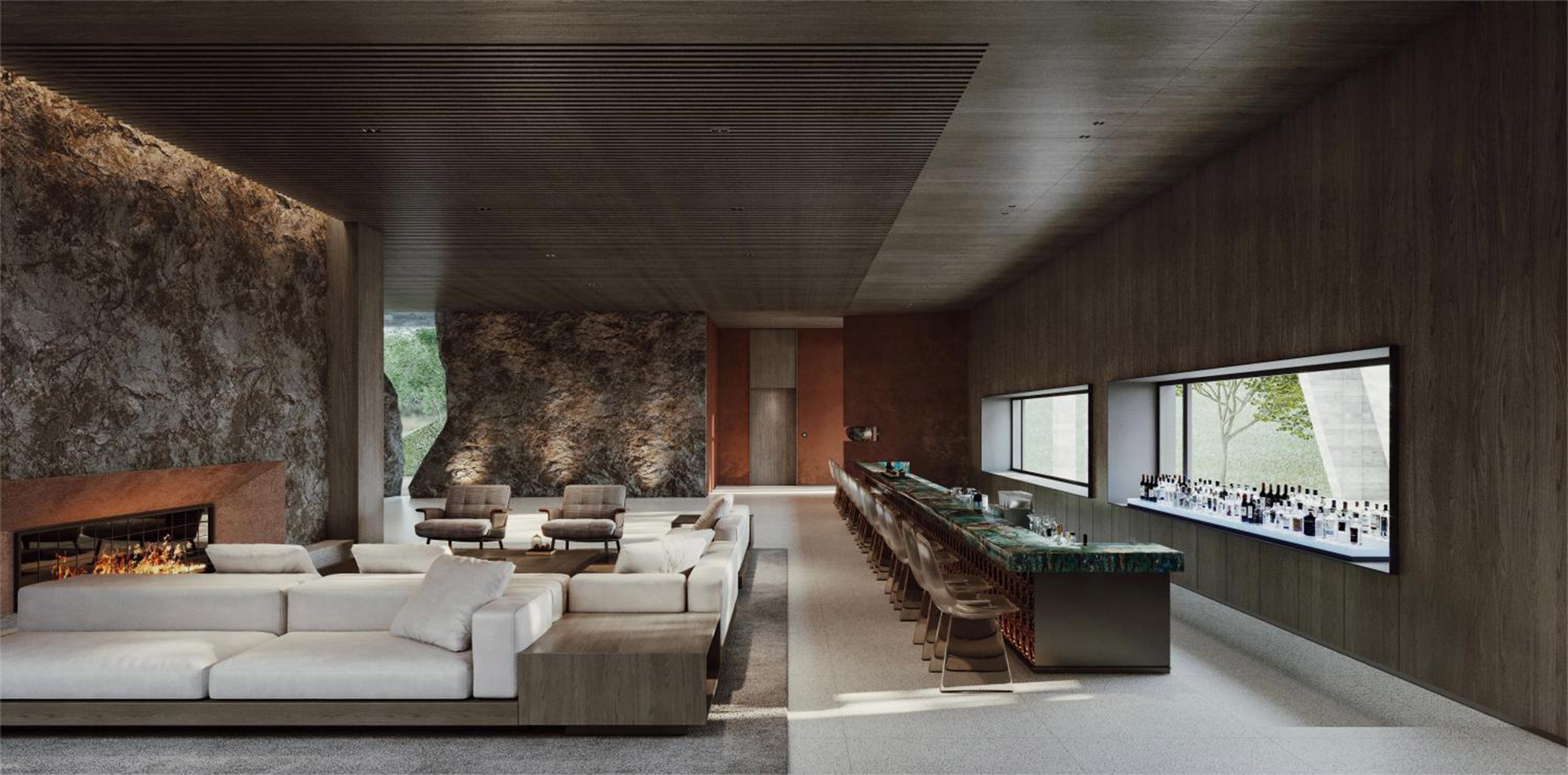 As a bridge connecting cultural activities and natural experience, the interior is divided into areas with "sightseeing and leisure, cultural recreation, business vacation, health preservation and healing" as the core functions, and then natural elements such as "wood, stone, cloud and light" are extracted to match the design strategy of each scene, giving vitality to the area in the smooth connection with nature. The forms and charms of forest, cave, sea of clouds and starry sky are extracted, transformed and reproduced in the spatial structure and texture, so that guests can always feel nature inside.