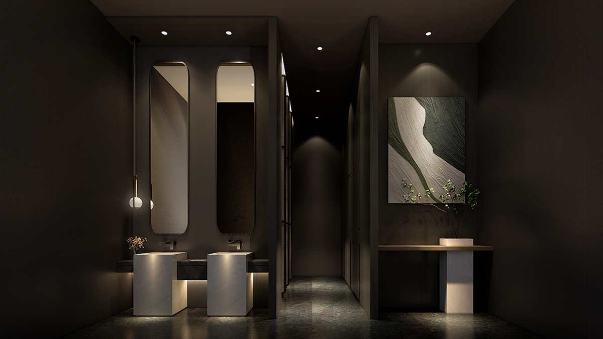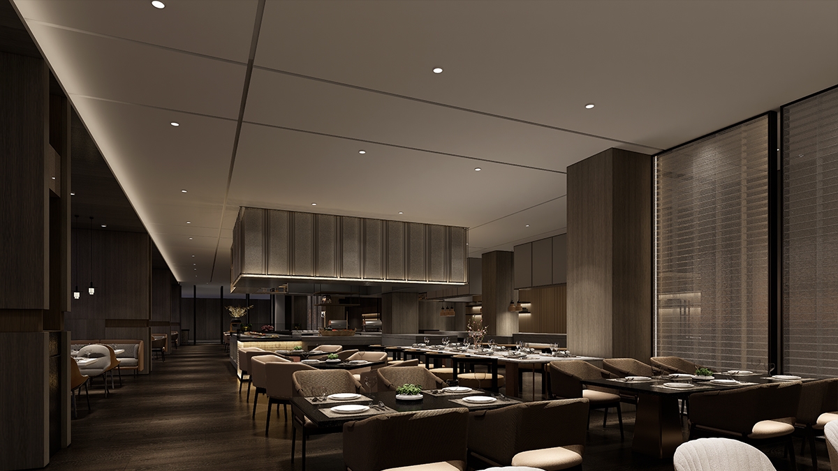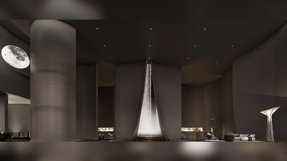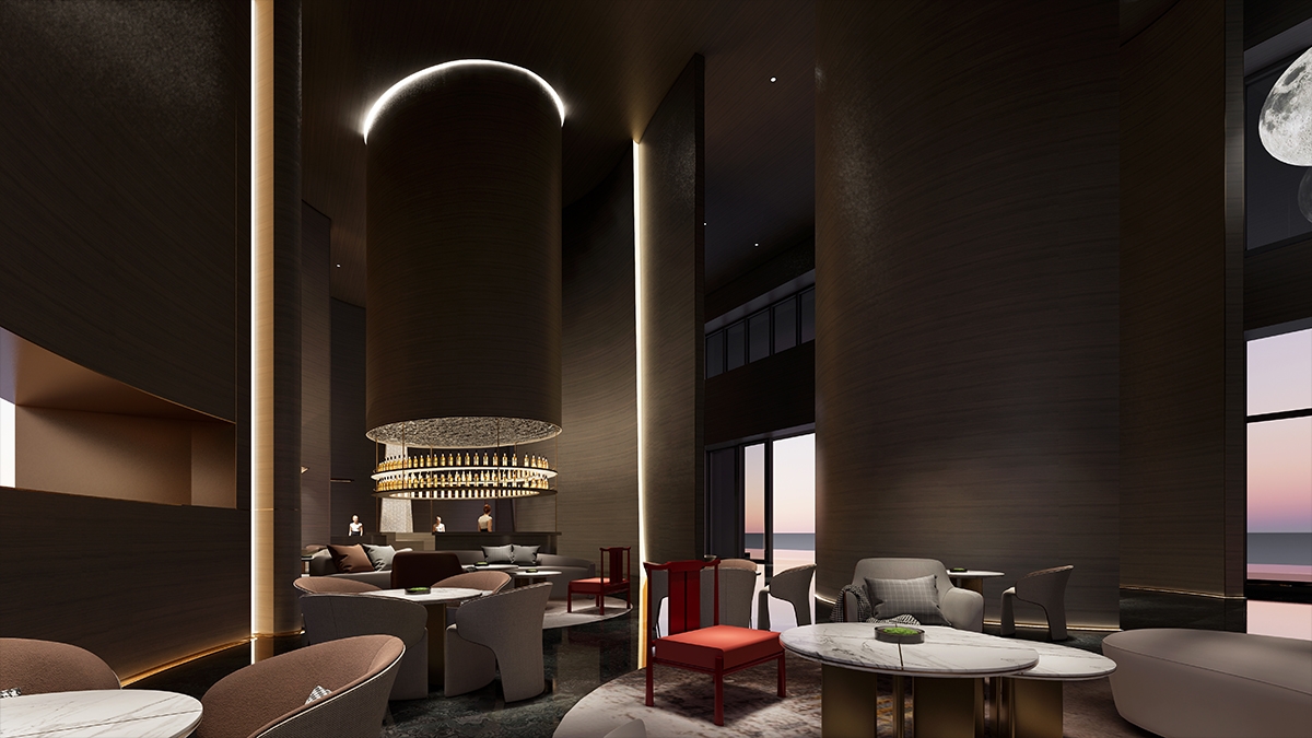 The design selects elements related to nature, tends to be quiet and harmonious.A bright moon seems to rise slowly over the sea, creating a gorgeous and poetic atmosphere in Chinese culture, which just fits the tonality of the coastal location where the project is located. Away from the bustling urban life, you can indulge in the the same moonlight moment here.The dancing arc shape drives the spirit dynamic of the whole space.