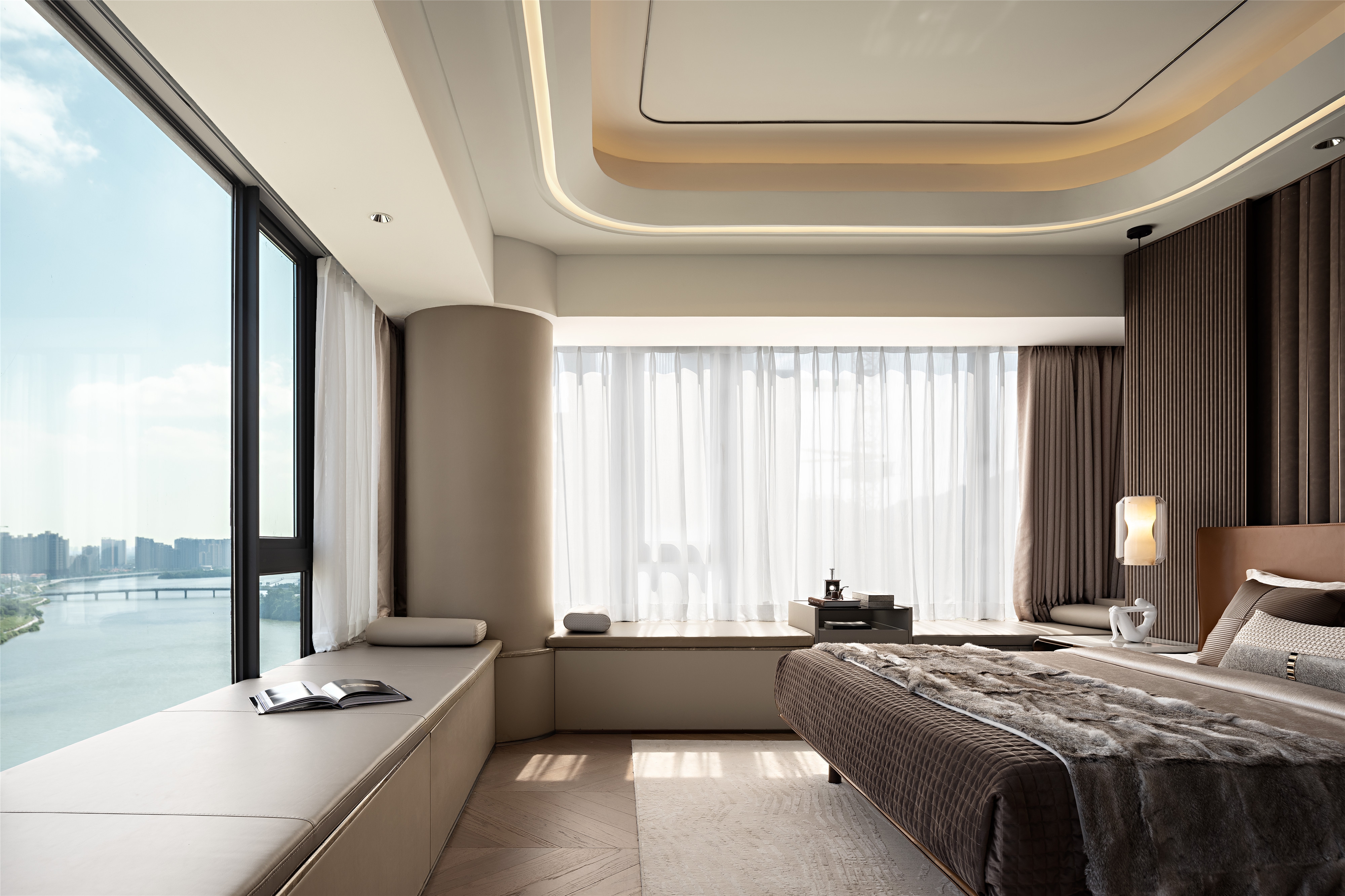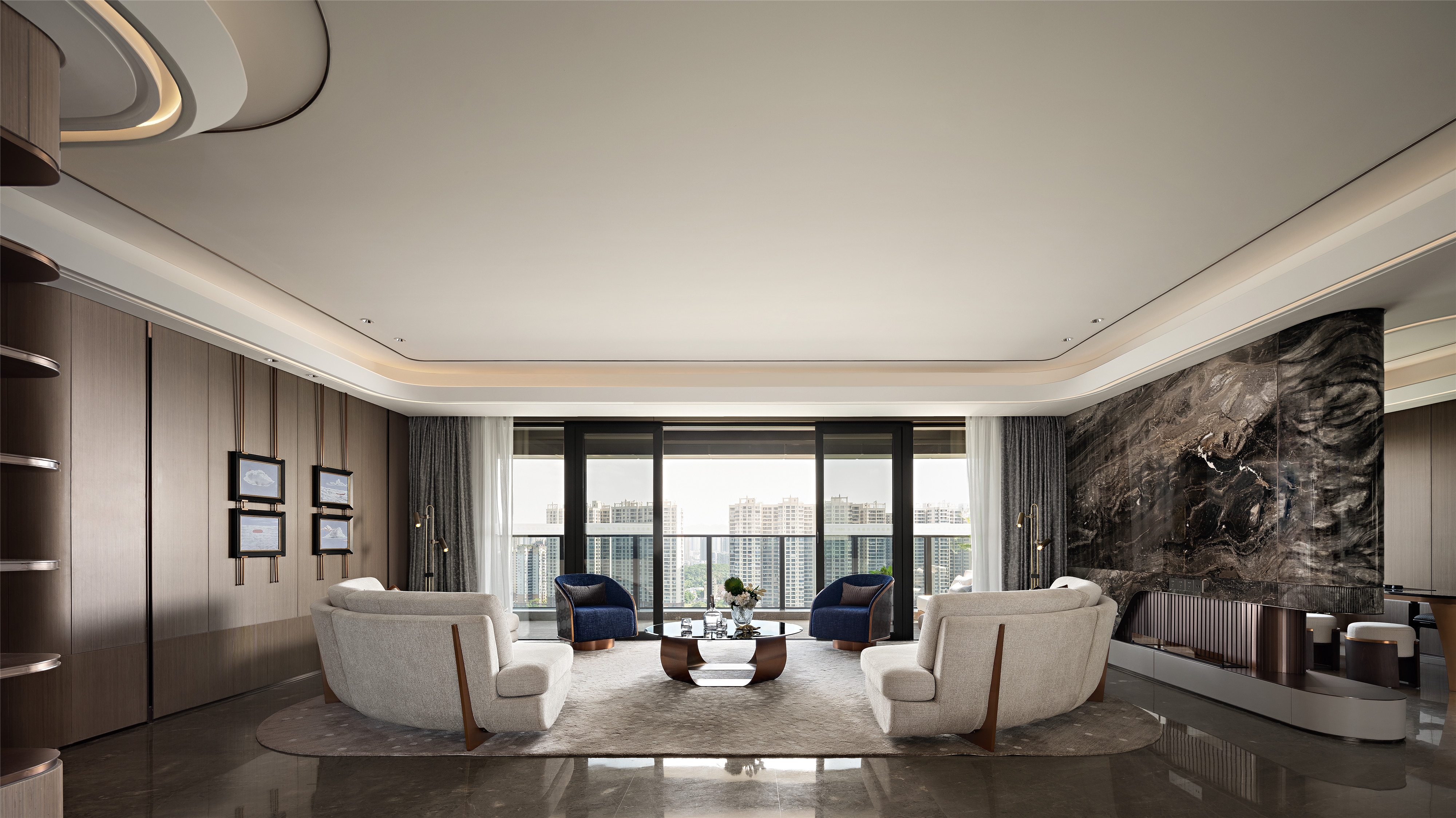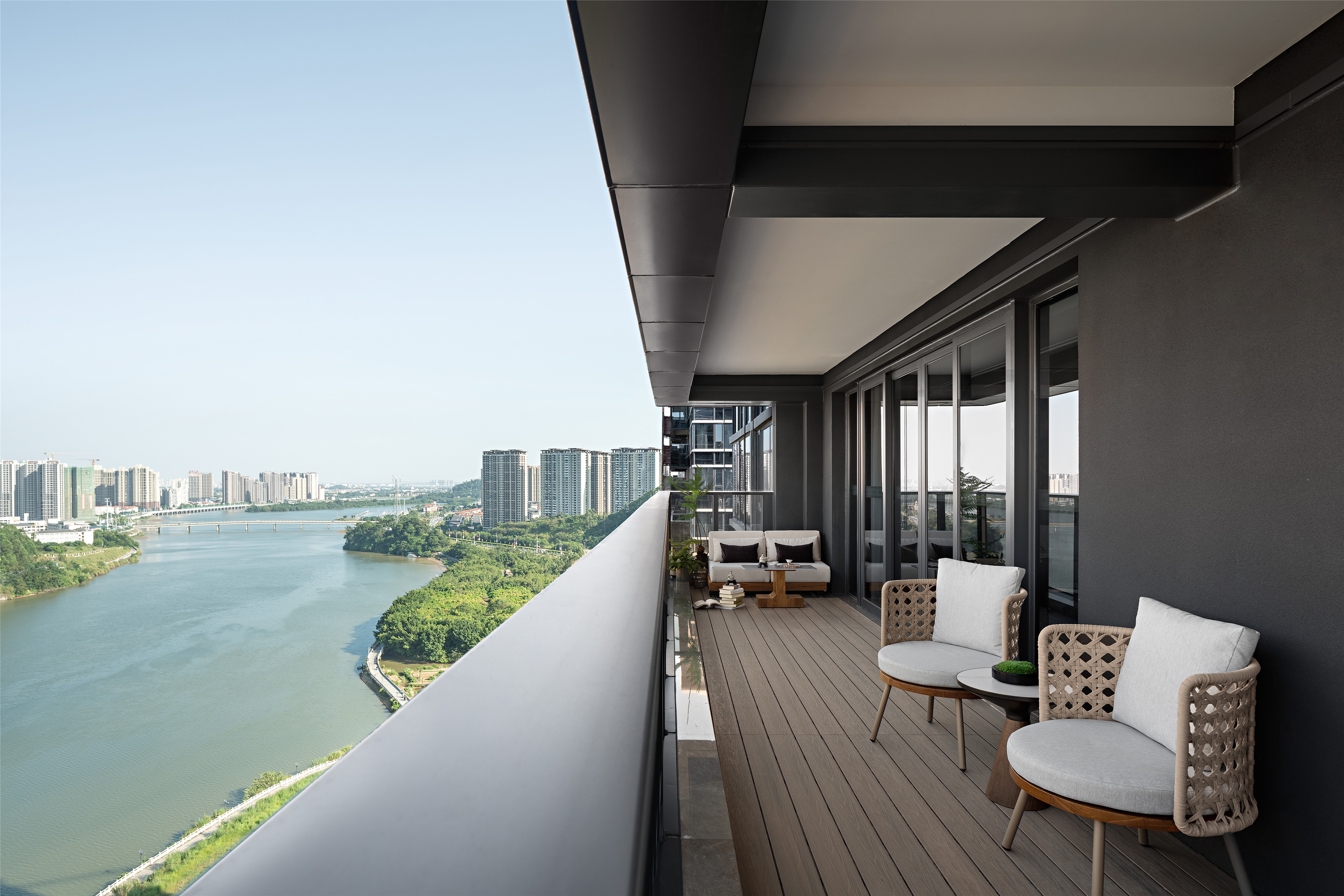 The project is located in Sihui City, China, on the banks of Suijiang River. It’s a 235m² luxury large flat residence, with a 180° panoramic view of the city and boundless river scenery.
