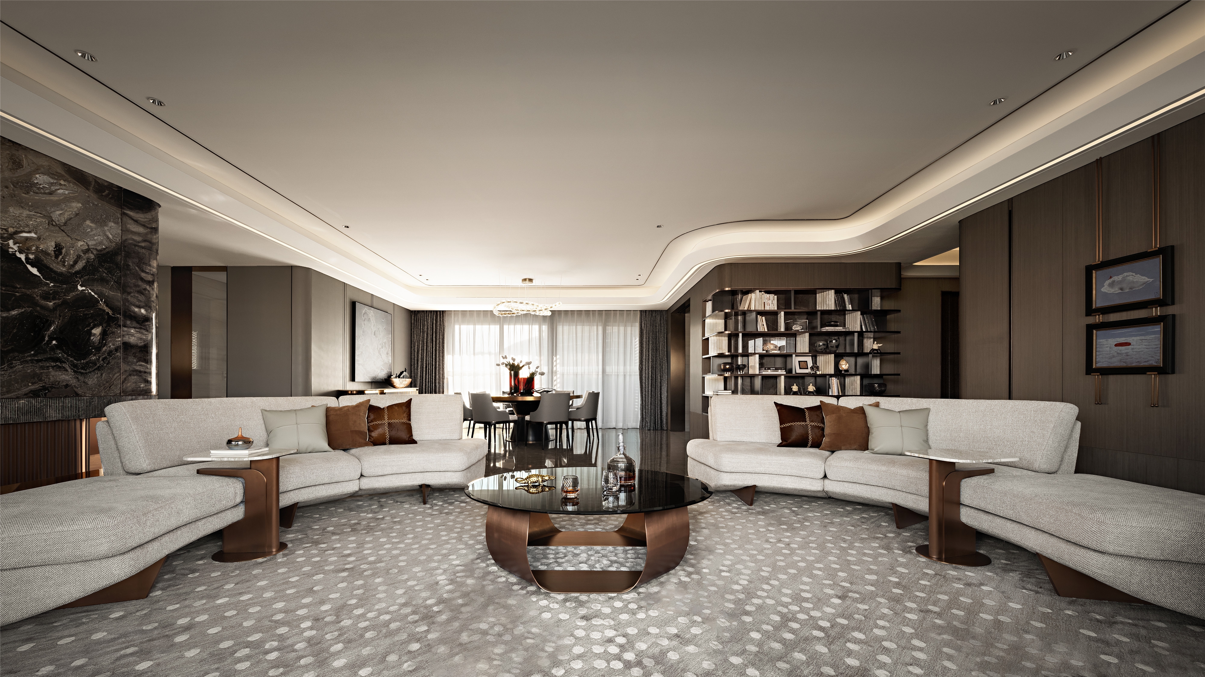 With a modern approach and landscape as the spiritual carrier, the designers integrate western elements and super-real factors, to pursue the power for mental peace, and explore the balance between life, socializing and artistic concept.