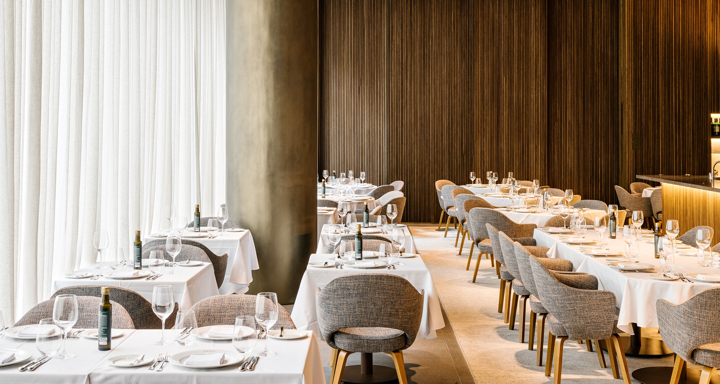 The lobby and bar’s sober ambiance undergoes a transformation as you step into the restaurant. Here, the atmosphere is cozy, bathed in natural light streaming in through generous windows. The use of tactil