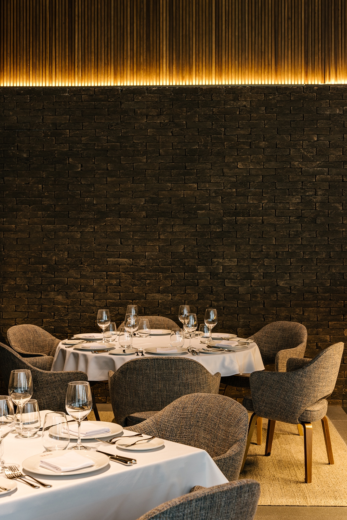 Fasano Itaim is an ode to classic elegance. The Italian family, devoted to hospitality for three generations, forged a brand over the principles of excellence and warm service. Its interiors are dark, walls covered in Brazilian freijó wood, with very punctual lighting. A diffuse natural brightness filtered by continuous linen curtains creates an ethereal atmosphere.