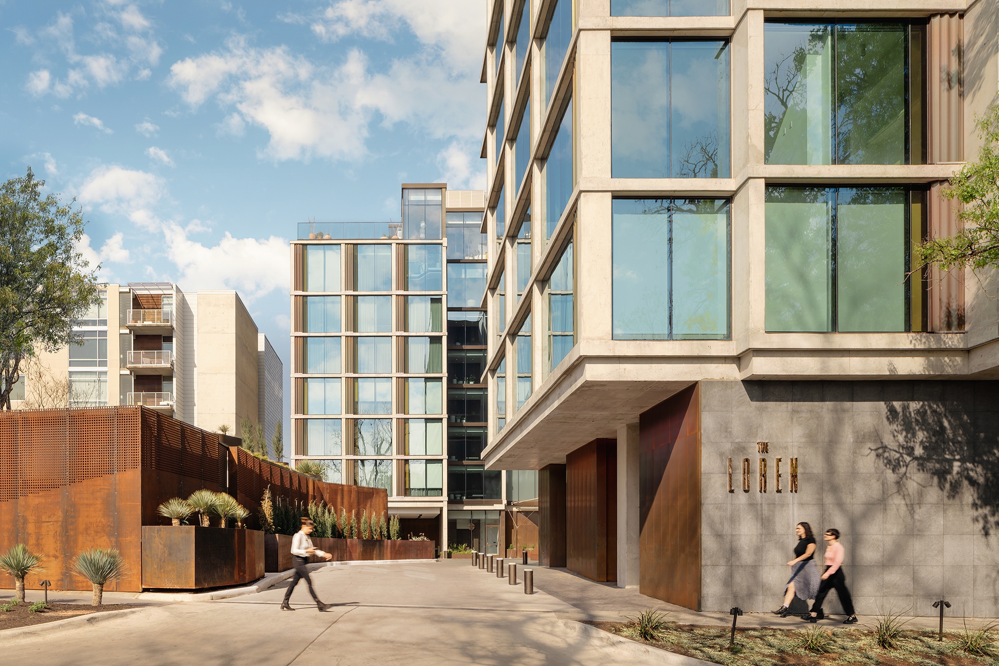 The Loren at Lady Bird Lake is a premier hotel and residential project at the urban thoroughfare of Riverside Drive and Lamar Boulevard in Austin, Texas. This mixed-use project features 108 luxury hotel rooms, 24 residences, an interior event space, a rooftop restaurant, and a pool. The 5-star luxe hotel is uniquely situated between nearby nature trails, parkland, and the ultimate convenience of proximity to downtown Austin. The hotel and residence programs are bridged together horizontally and split with a paseo and an open-air passage.