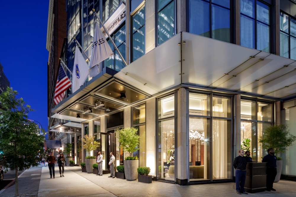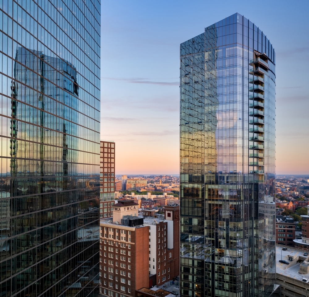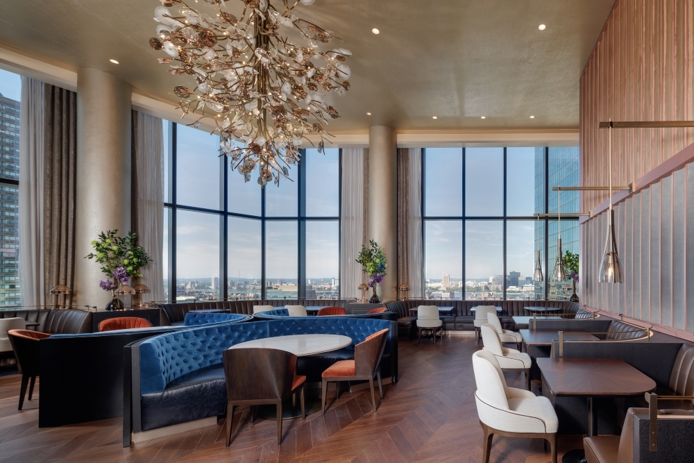 Instantly recognizable for its refined skyline profile, Raffles Boston is a striking new luxury hospitality, retail, and residential property offering a dramatic and sophisticated destination in the heart of the Back Bay. This 35-story, 400-foot tower opened as the first-ever mixed-use property in North America for the renowned Raffles brand. With an inventive cantilevered structure and a modest footprint of 65 feet from the neighboring Hancock Tower, it is a compelling feat of hospitality architecture featuring 147 guestrooms, 146 condominium units, 16 unique gathering spaces including three exceptional dining experiences and The Long Bar & Terrace, a Paolo Ferrari-designed lounge.