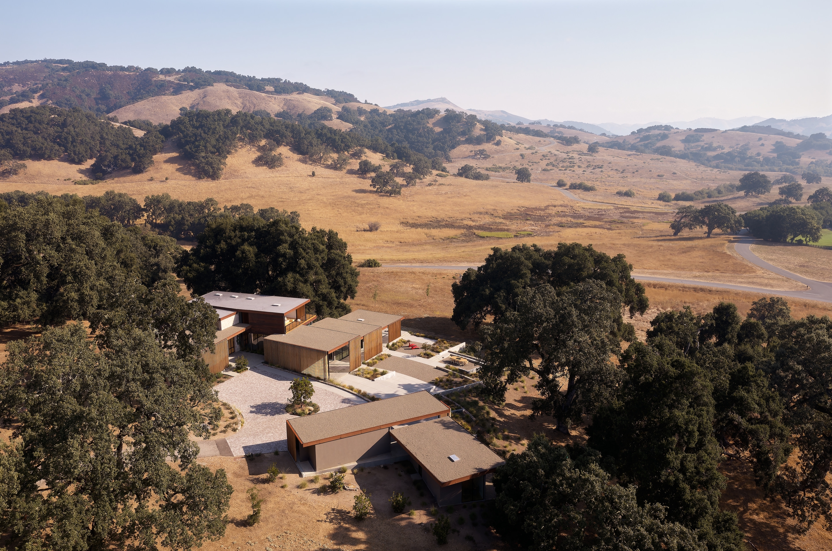 The challenge was to create a compound for a multigenerational family, integrated into the landscape. The design process was monitored through five hearings with the Design Review Board, with adherence to the land development and design guidelines