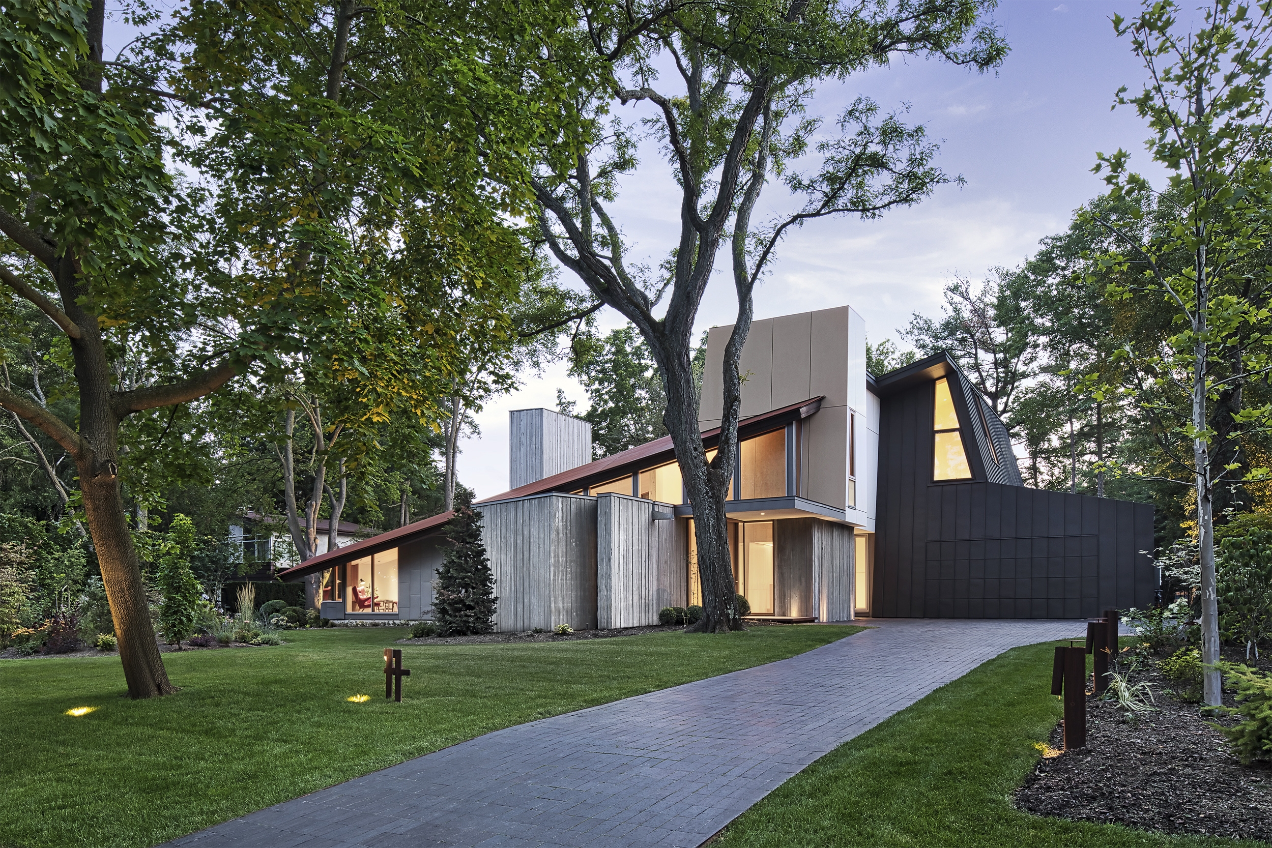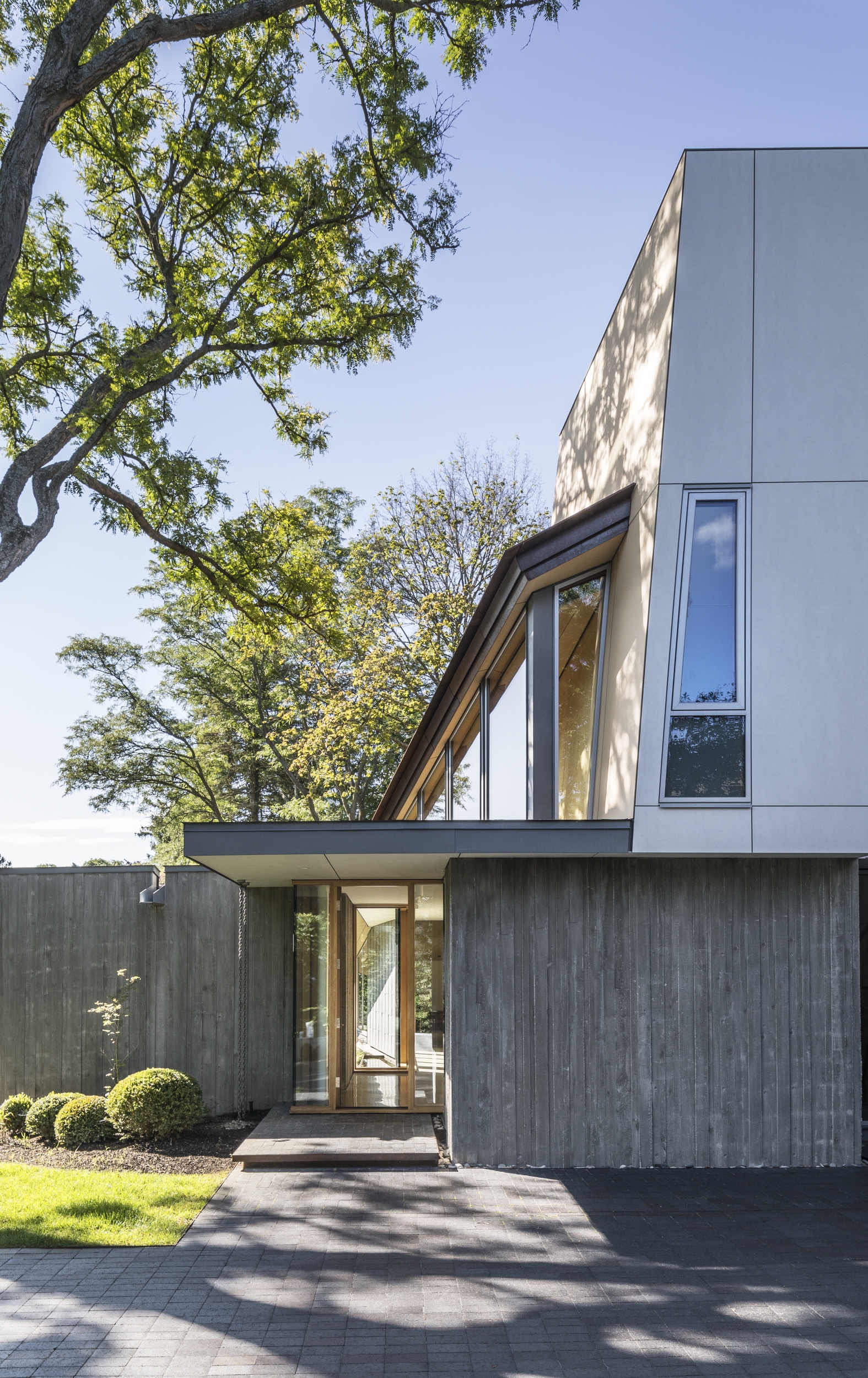 The client’s brief was to provide a year-round “cottage in the city”, a cottage in concept only: a place of family-centred warmth, reflection & inner peace. To achieve this on a flat post-war suburban lot, Dove was conceived as a series of interconnected tents or pavilions.